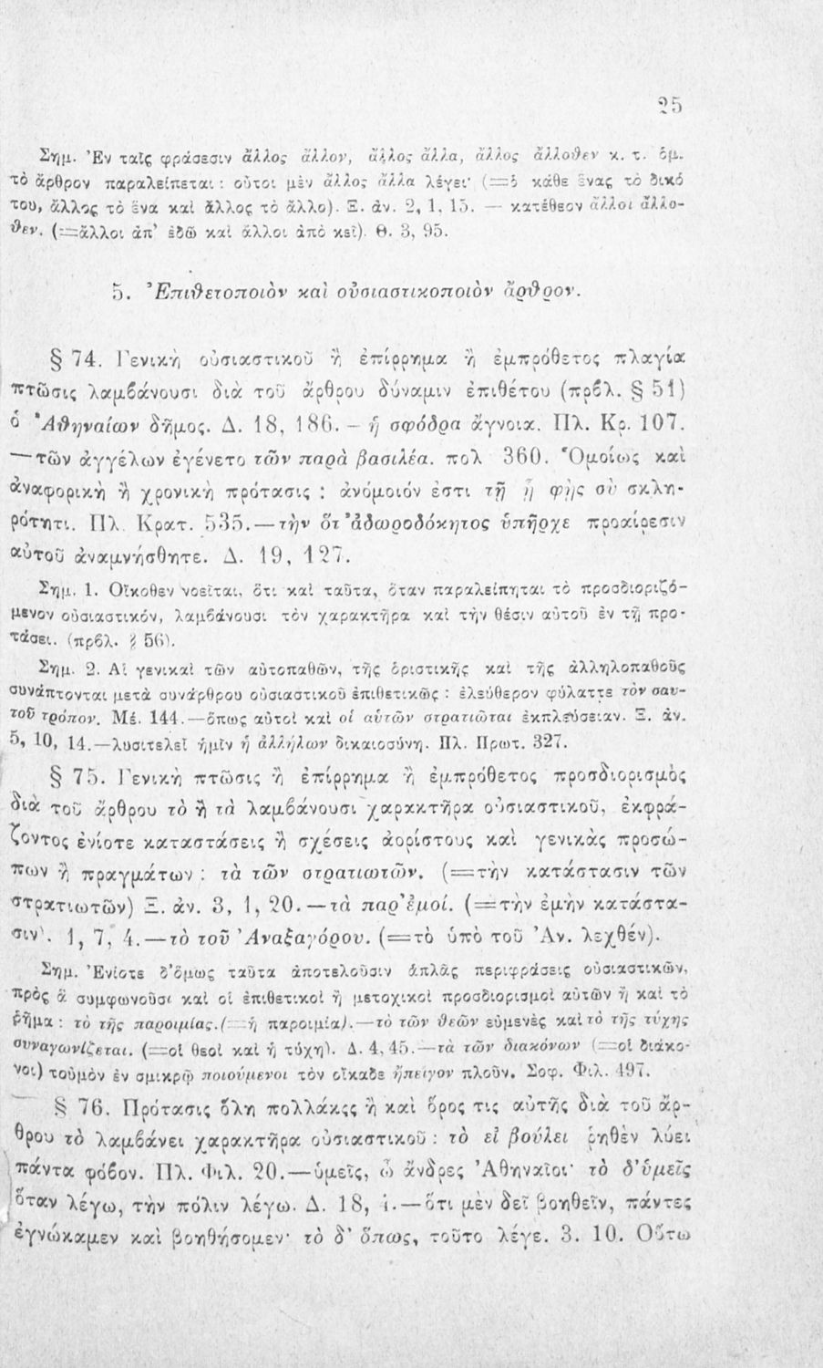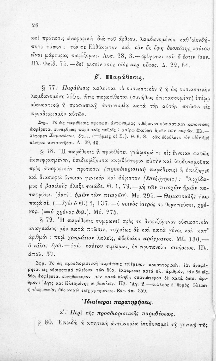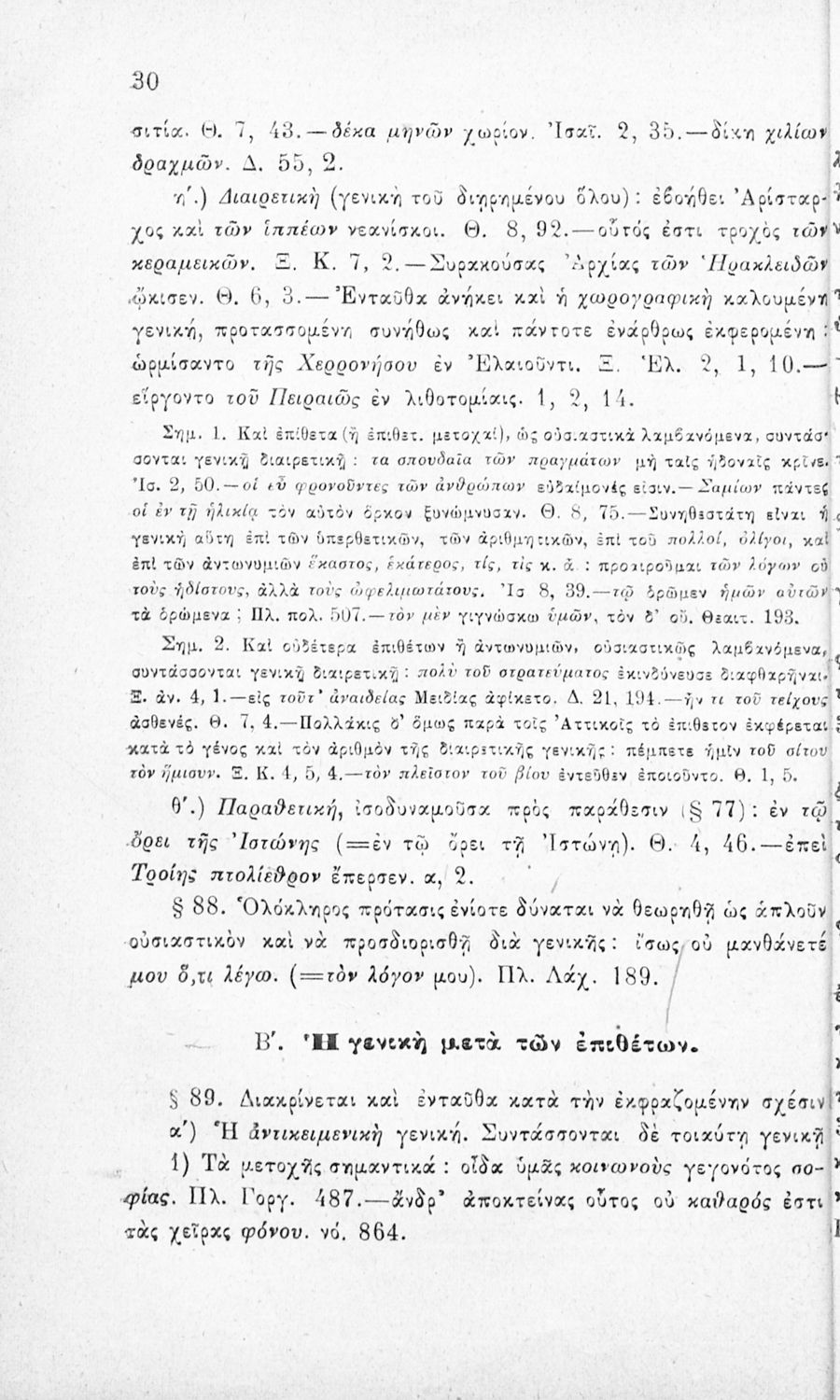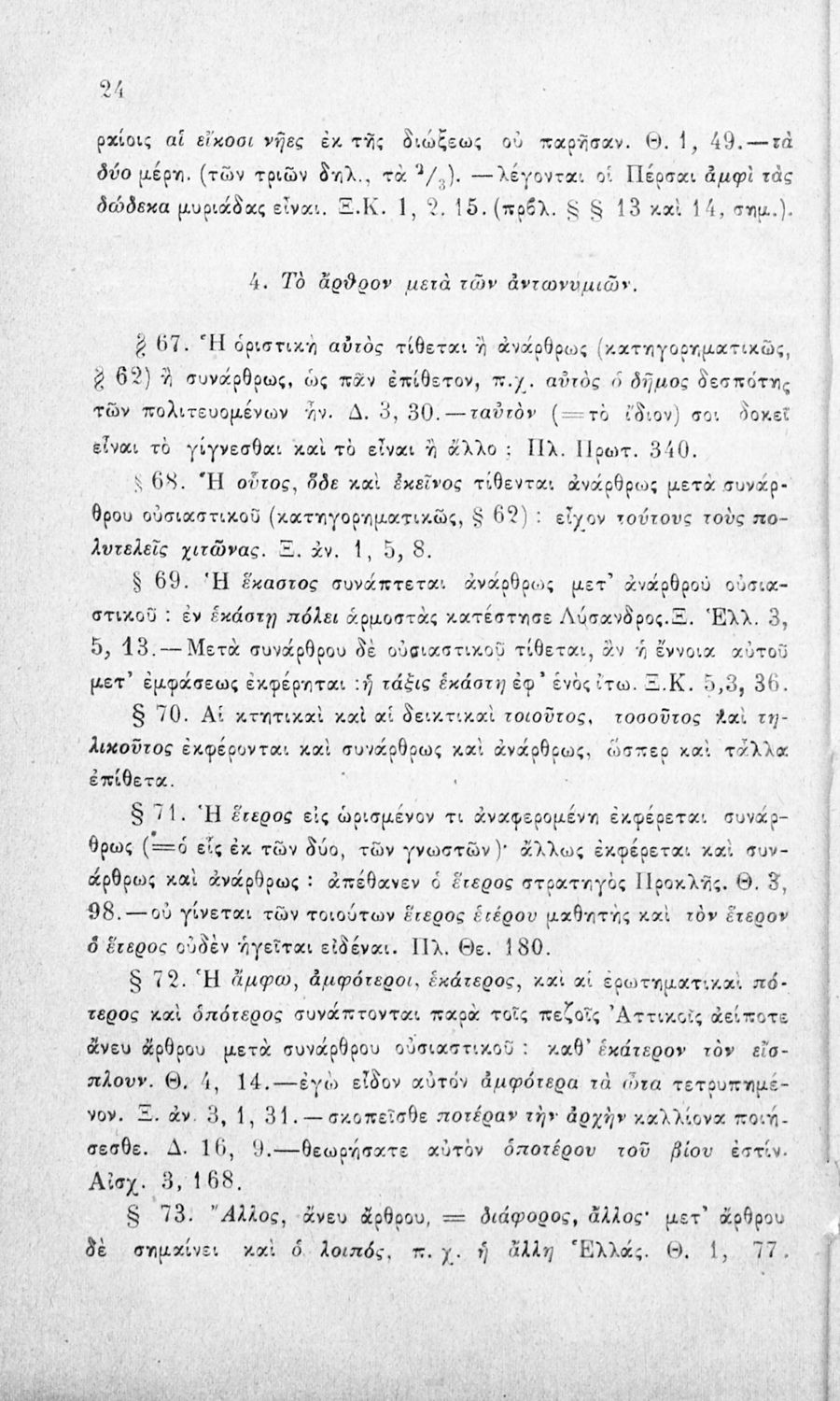 Σχολικό εγχειρίδιο Αρχαίων Ελληνικών για τα Ελληνικά Σχολεία και τα Ανώτερα Παρθεναγωγεία που εξετάζει τα μέρη του λόγου και την σύνταξή τους.