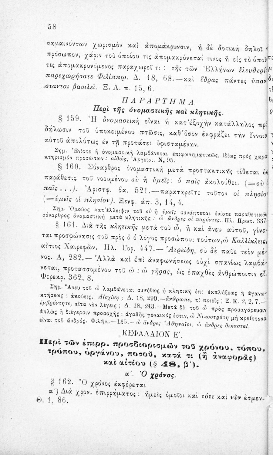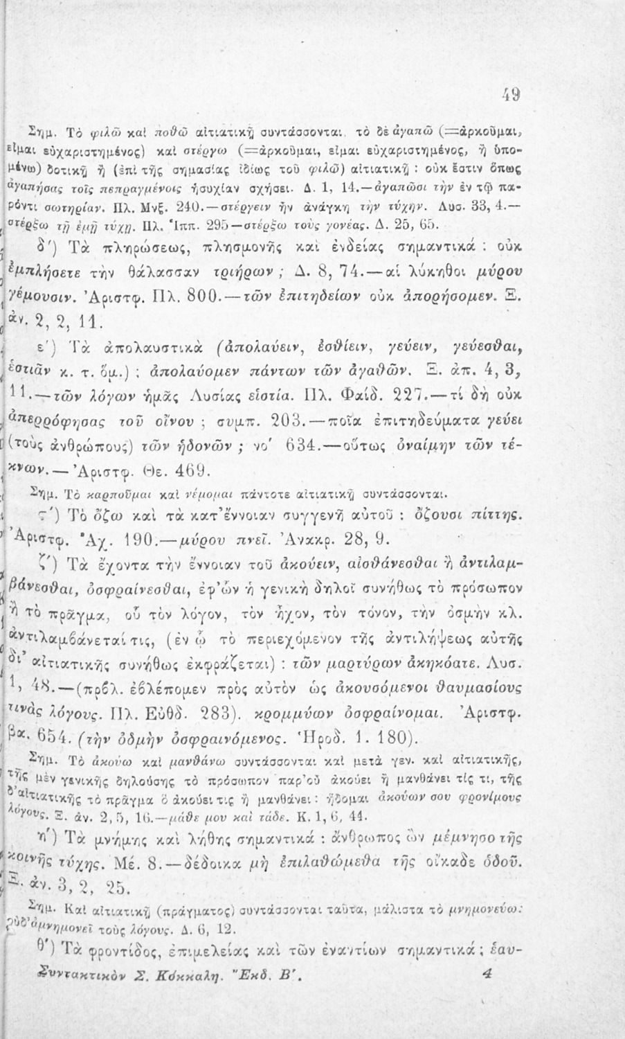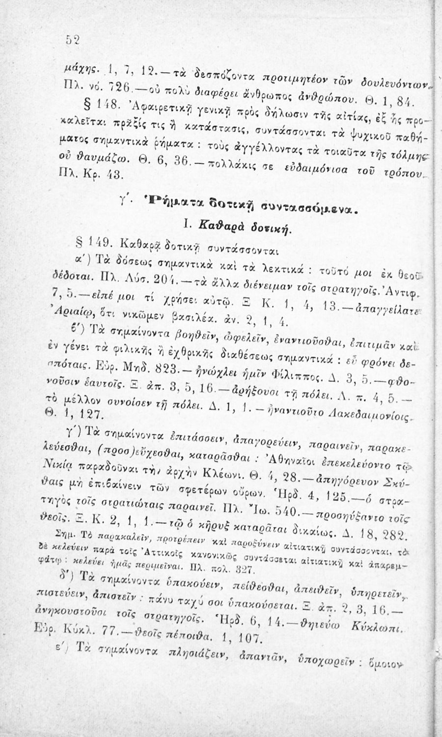 Σχολικό εγχειρίδιο Αρχαίων Ελληνικών για τα Ελληνικά Σχολεία και τα Ανώτερα Παρθεναγωγεία που εξετάζει τα μέρη του λόγου και την σύνταξή τους.
