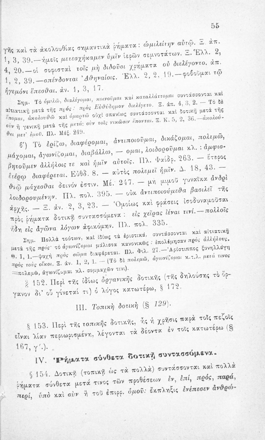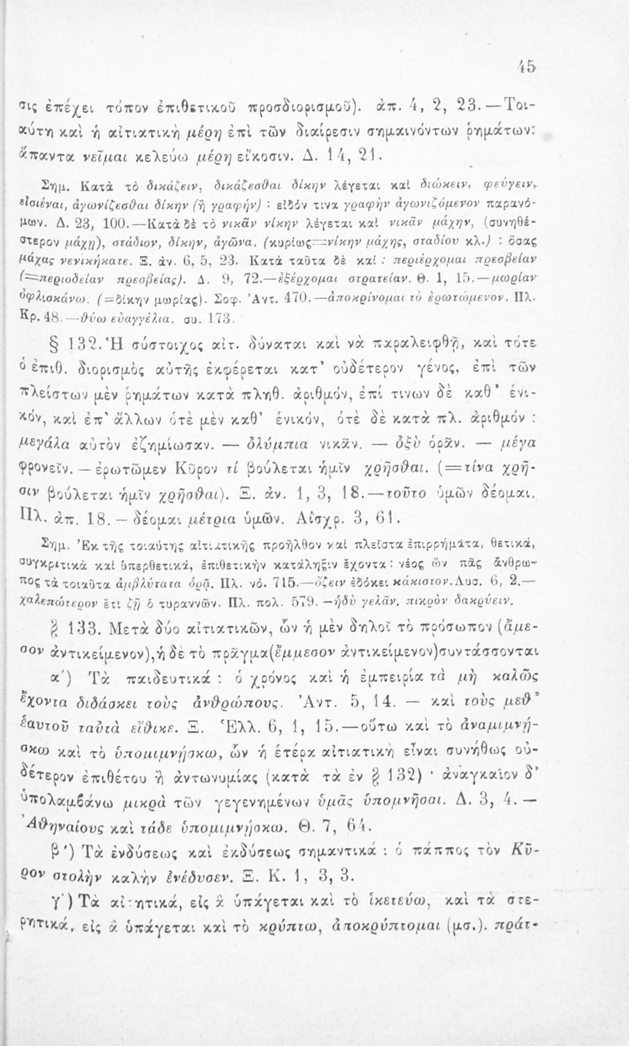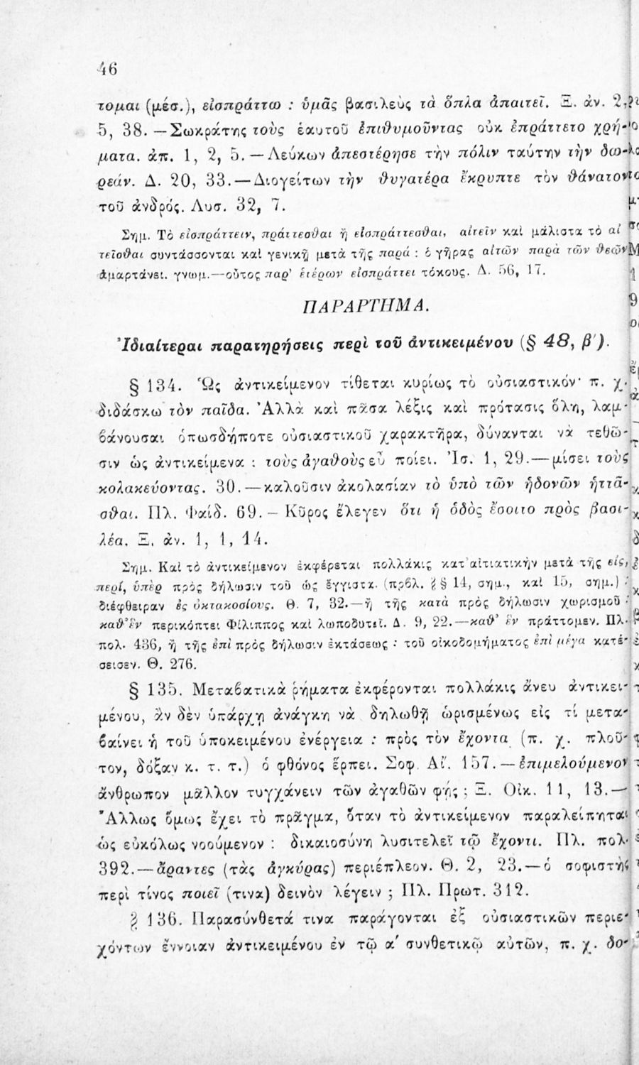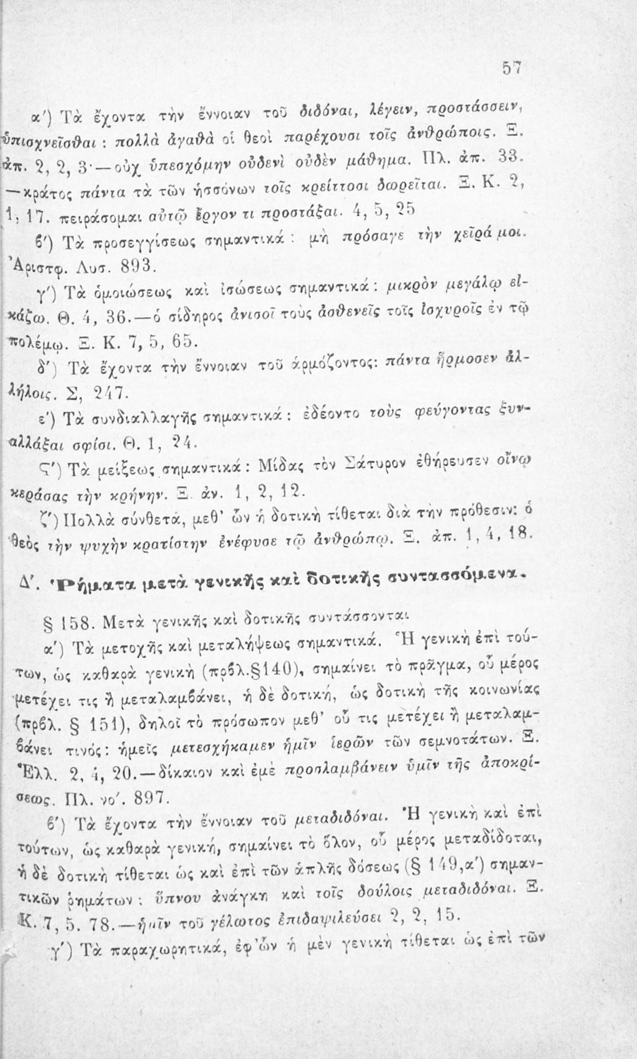 Σχολικό εγχειρίδιο Αρχαίων Ελληνικών για τα Ελληνικά Σχολεία και τα Ανώτερα Παρθεναγωγεία που εξετάζει τα μέρη του λόγου και την σύνταξή τους.