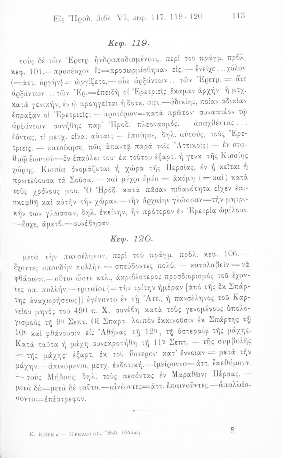 LDR 01422 2200217 4500 035 ## _a02-01969 040 ## _aΕλληνικό Λογοτεχνικό και Ιστορικό Αρχείο 041 ## _ael 100 ## _aΗρόδοτος _aΚυριάκος Κοσμάς (σχόλια) 110 ## _a1921 ΚΥΡ 245 0# _aΗρόδοτος κατ΄ εκλογήν εκδοθείς δια την Α΄ τάξιν των Γυμνασίων και την Α΄ των Διδασκαλείων 250 ## _a7η Έκδοση 260 ## _aΑθήνα _bΙωάννης Δ. Κολλάρος _c1921 300 ## _a230 _bΕικόνες (ασπρόμαυρες), Σκίτσα (ασπρόμαυρα), Χάρτες (έγχρωμοι) 520 ## _aΣχολικό εγχειρίδιο Αρχαίων Ελληνικών Α΄ Γυμνασίου που περιλαμβάνει αποσπάσματα από την Ιστορία του Ηροδότου, βιογραφικά στοιχεία, εισαγωγή στο έργο και τη διάλεκτο του καθώς και ερμηνευτικά και πραγματολογικά σχόλια. 521 ## _aΑ' Γυμνασίου 522 ## _aΕλλάδα 546 ## _aΚαθαρεύουσα 563 ## _aΣκληρό Εξώφυλλο 583 ## _a27967/30-9-1917 650 #4 _aΑρισταγόρας _aΗρόδοτος _aΜαρδόνιος _aΠέρσες _aΠλαταιές _aΣαλαμίνα