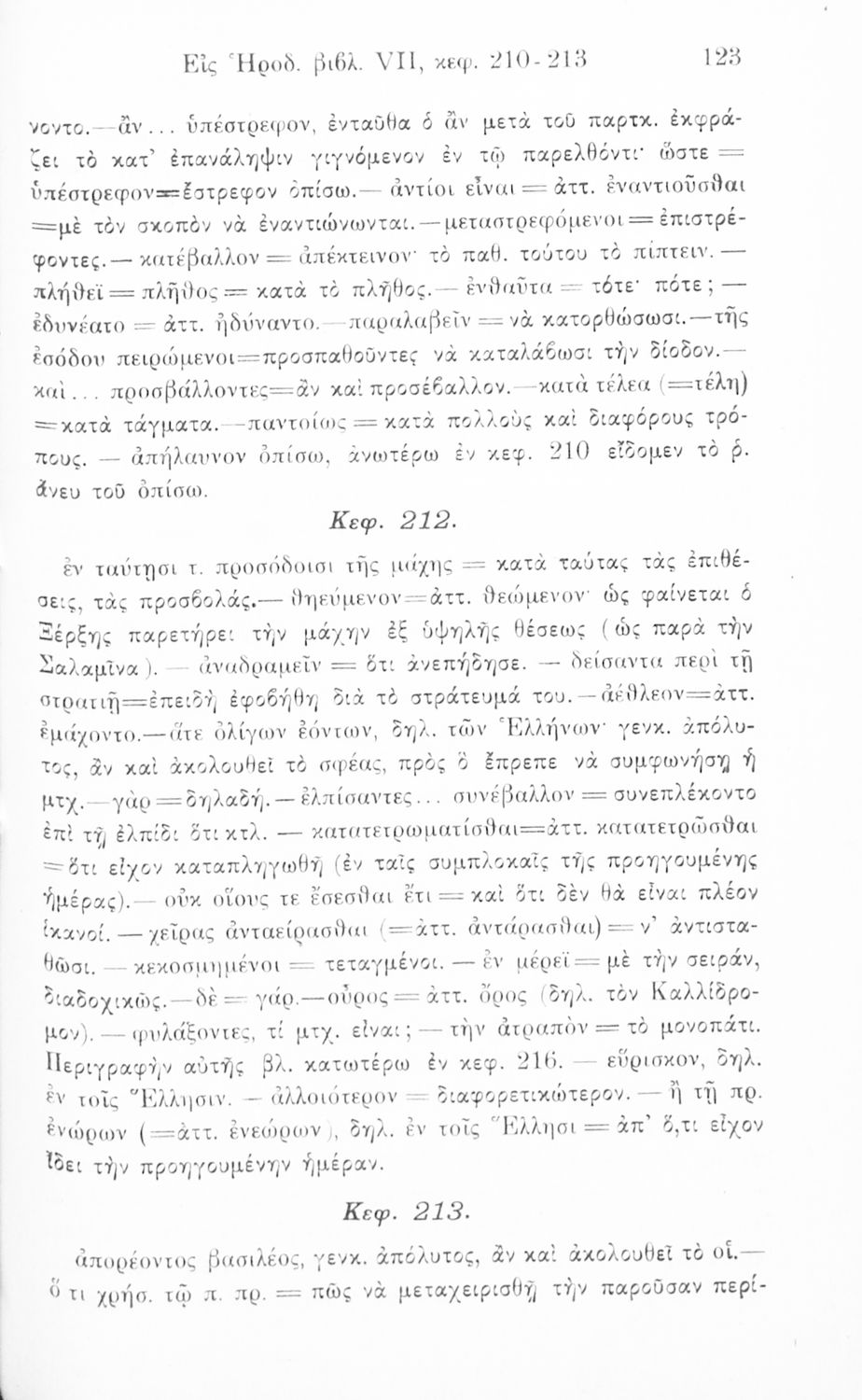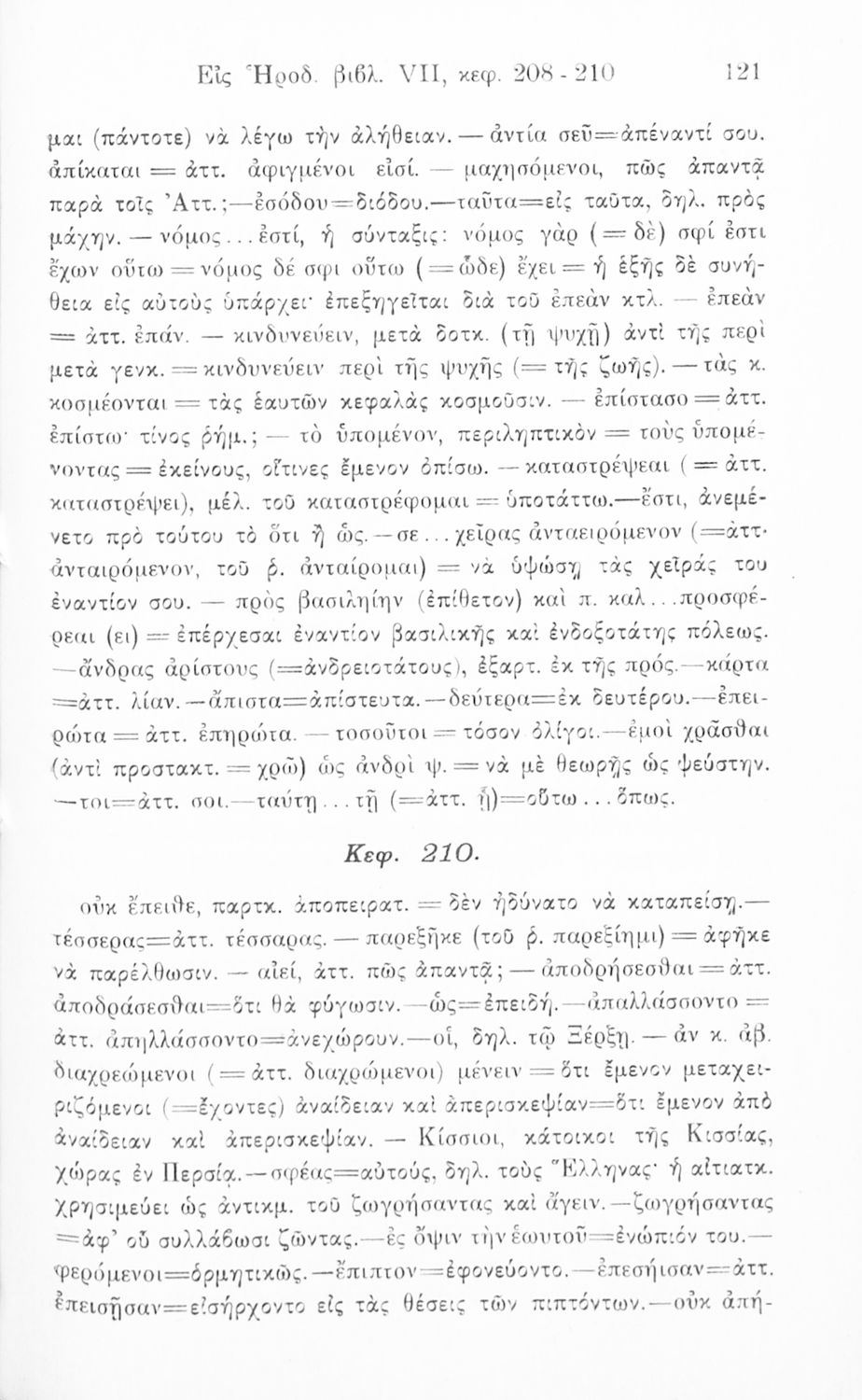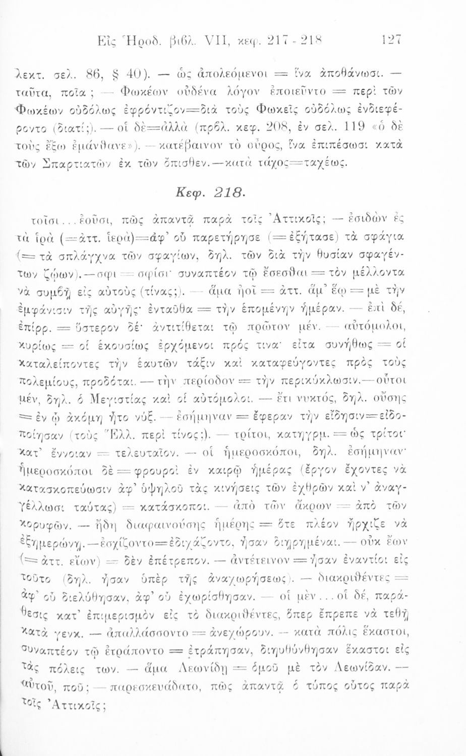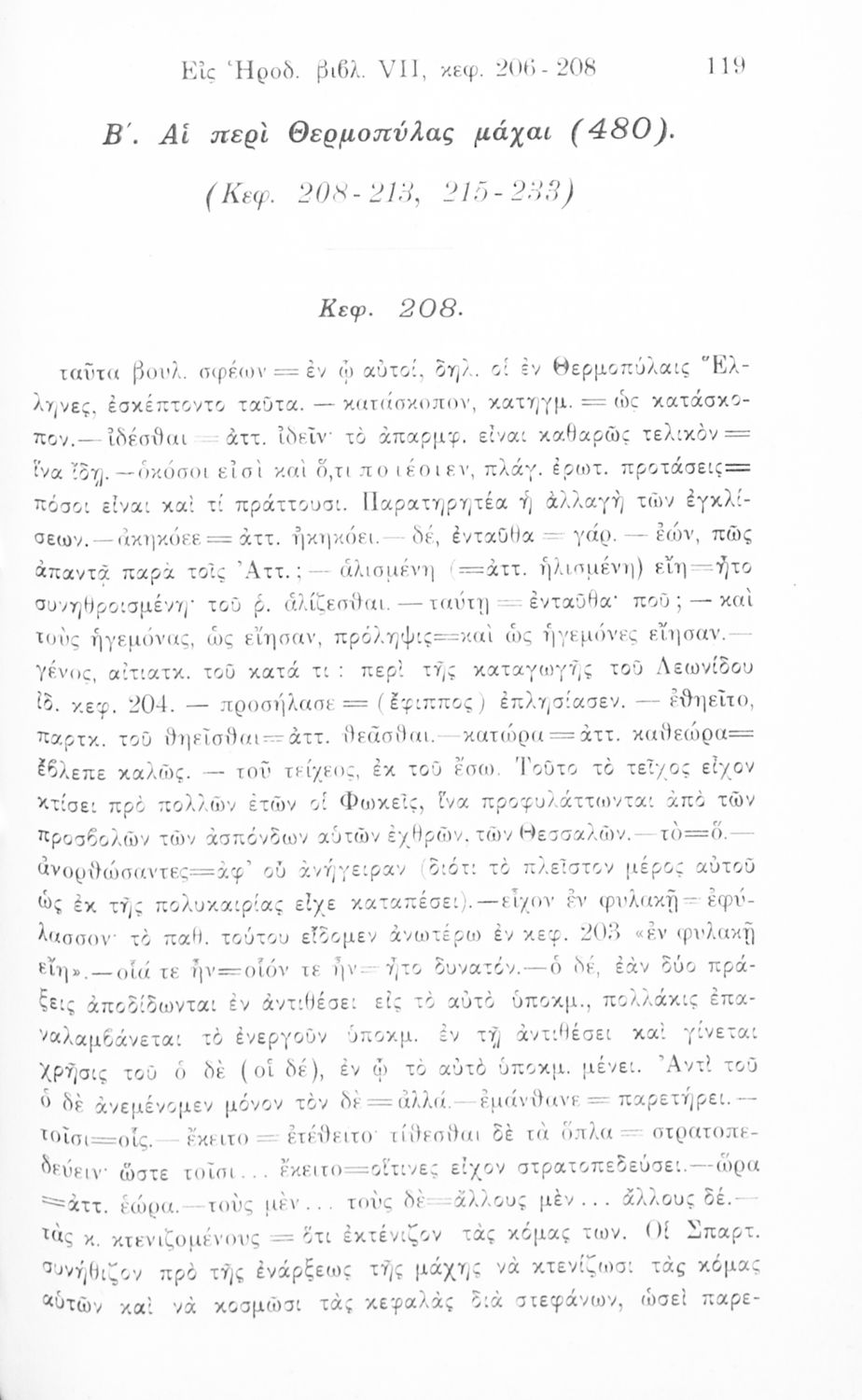 Σχολικό εγχειρίδιο Αρχαίων Ελληνικών Α΄ Γυμνασίου και Α' Διδασκαλείου που περιλαμβάνει αποσπάσματα από το έργο του Ηρόδοτου, ερμηνευτικές σημειώσεις, πραγματολογικά, λεξικολογικά και γραμματικά σχόλια.
