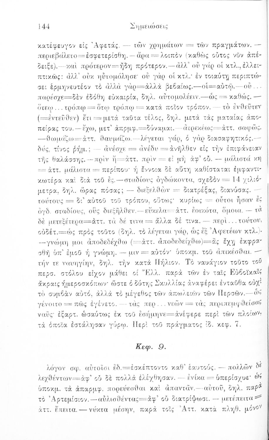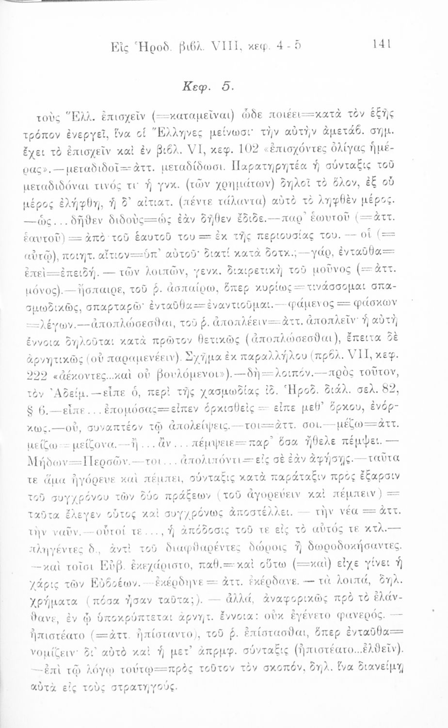 Σχολικό εγχειρίδιο Αρχαίων Ελληνικών Α΄ Γυμνασίου και Α' Διδασκαλείου που περιλαμβάνει αποσπάσματα από το έργο του Ηρόδοτου, ερμηνευτικές σημειώσεις, πραγματολογικά, λεξικολογικά και γραμματικά σχόλια.