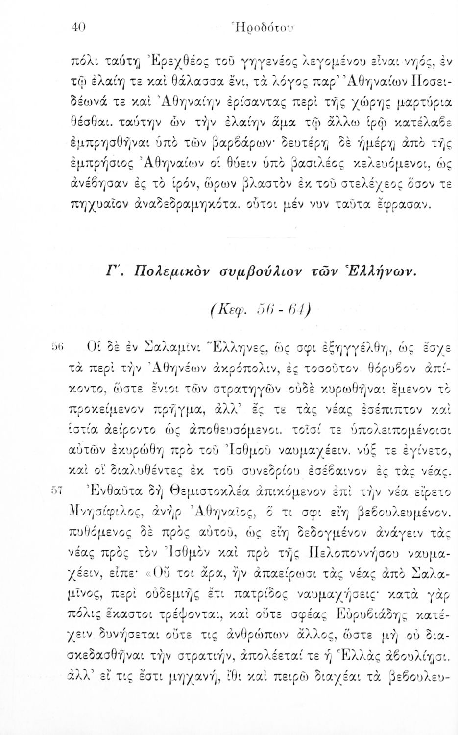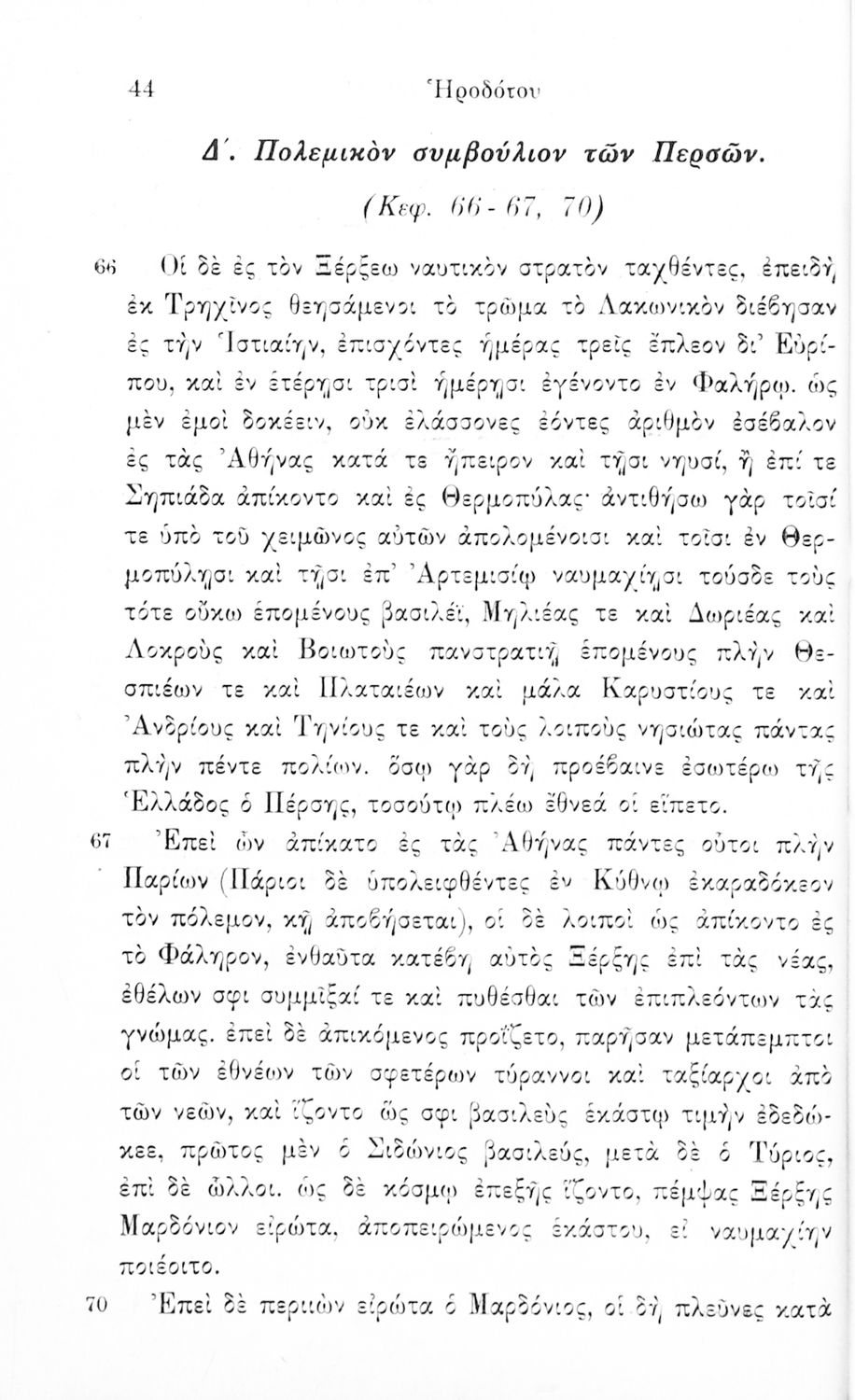 Σχολικό εγχειρίδιο Αρχαίων Ελληνικών Α΄ Γυμνασίου που περιλαμβάνει αποσπάσματα από την Ιστορία του Ηροδότου, βιογραφικά στοιχεία, εισαγωγή στο έργο και τη διάλεκτο του καθώς και ερμηνευτικά και πραγματολογικά σχόλια.
