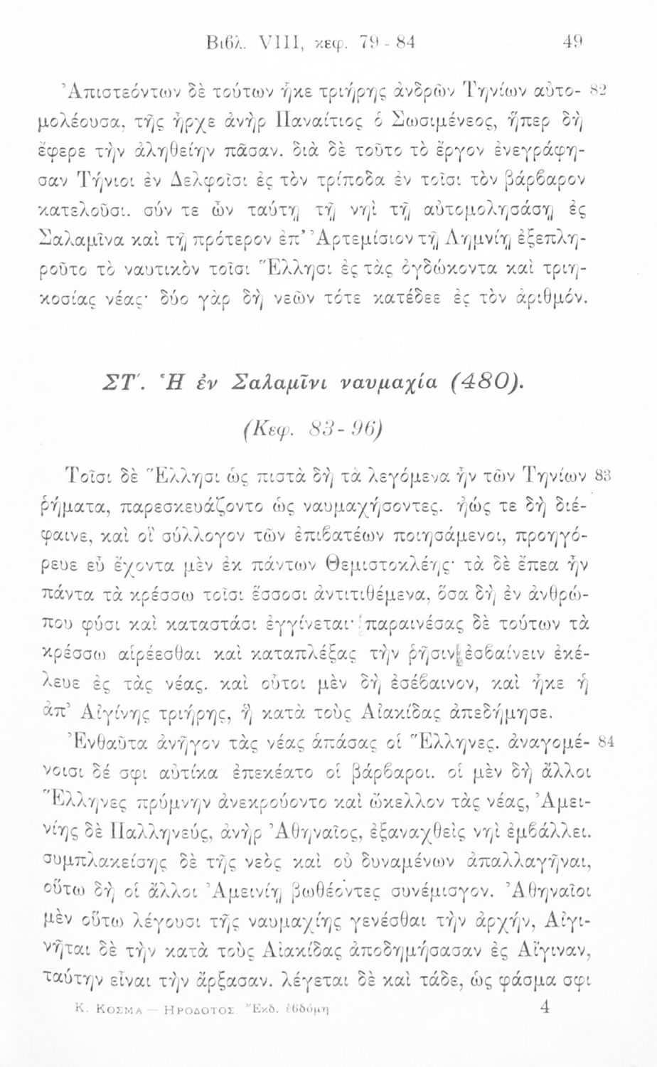 LDR 01422 2200217 4500 035 ## _a02-01969 040 ## _aΕλληνικό Λογοτεχνικό και Ιστορικό Αρχείο 041 ## _ael 100 ## _aΗρόδοτος _aΚυριάκος Κοσμάς (σχόλια) 110 ## _a1921 ΚΥΡ 245 0# _aΗρόδοτος κατ΄ εκλογήν εκδοθείς δια την Α΄ τάξιν των Γυμνασίων και την Α΄ των Διδασκαλείων 250 ## _a7η Έκδοση 260 ## _aΑθήνα _bΙωάννης Δ. Κολλάρος _c1921 300 ## _a230 _bΕικόνες (ασπρόμαυρες), Σκίτσα (ασπρόμαυρα), Χάρτες (έγχρωμοι) 520 ## _aΣχολικό εγχειρίδιο Αρχαίων Ελληνικών Α΄ Γυμνασίου που περιλαμβάνει αποσπάσματα από την Ιστορία του Ηροδότου, βιογραφικά στοιχεία, εισαγωγή στο έργο και τη διάλεκτο του καθώς και ερμηνευτικά και πραγματολογικά σχόλια. 521 ## _aΑ' Γυμνασίου 522 ## _aΕλλάδα 546 ## _aΚαθαρεύουσα 563 ## _aΣκληρό Εξώφυλλο 583 ## _a27967/30-9-1917 650 #4 _aΑρισταγόρας _aΗρόδοτος _aΜαρδόνιος _aΠέρσες _aΠλαταιές _aΣαλαμίνα