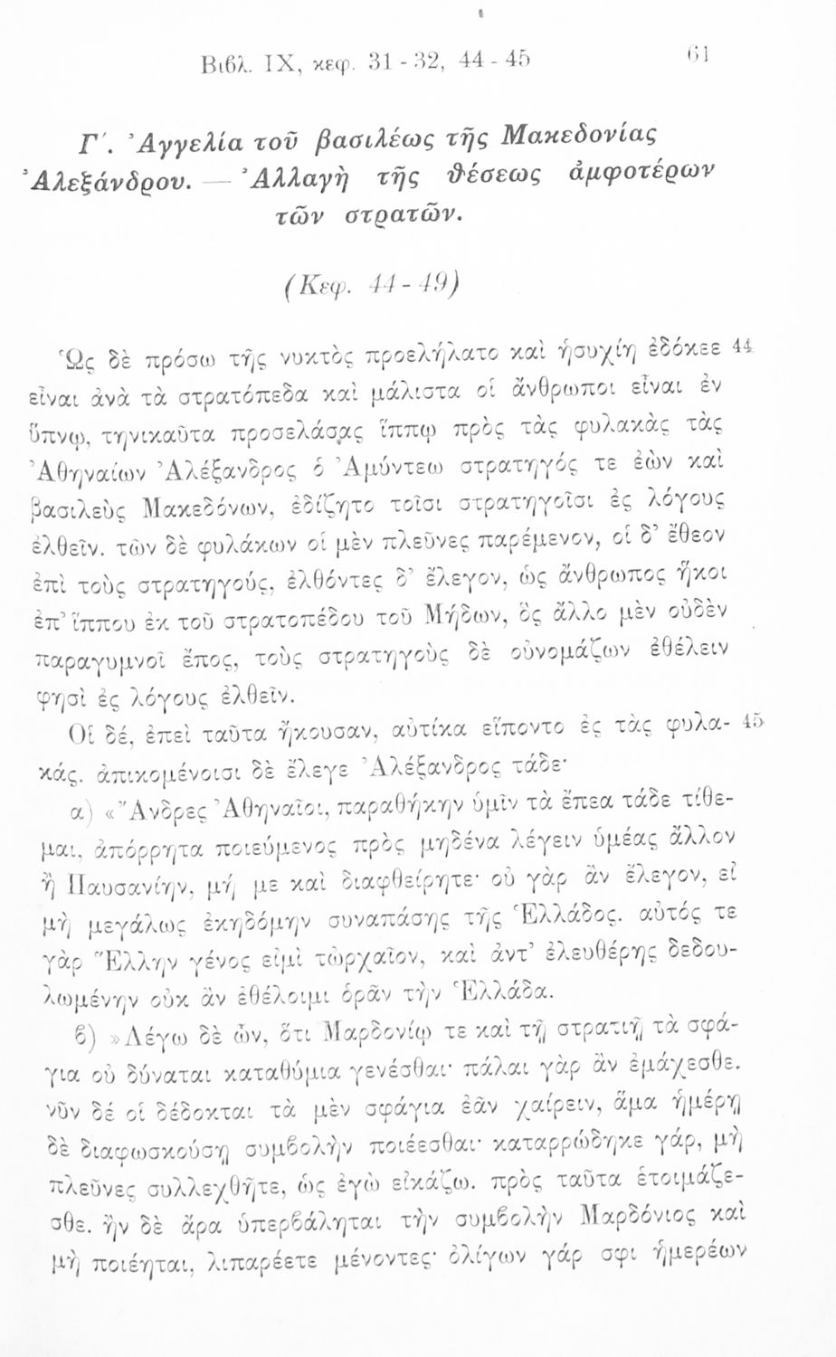 Σχολικό εγχειρίδιο Αρχαίων Ελληνικών Α΄ Γυμνασίου που περιλαμβάνει αποσπάσματα από την Ανάβαση του Αλέξανδρου του Αρριανού, εισαγωγή στη ζωή και το έργο του και ερμηνευτικές παρατηρήσεις.