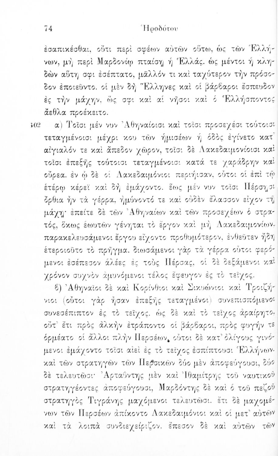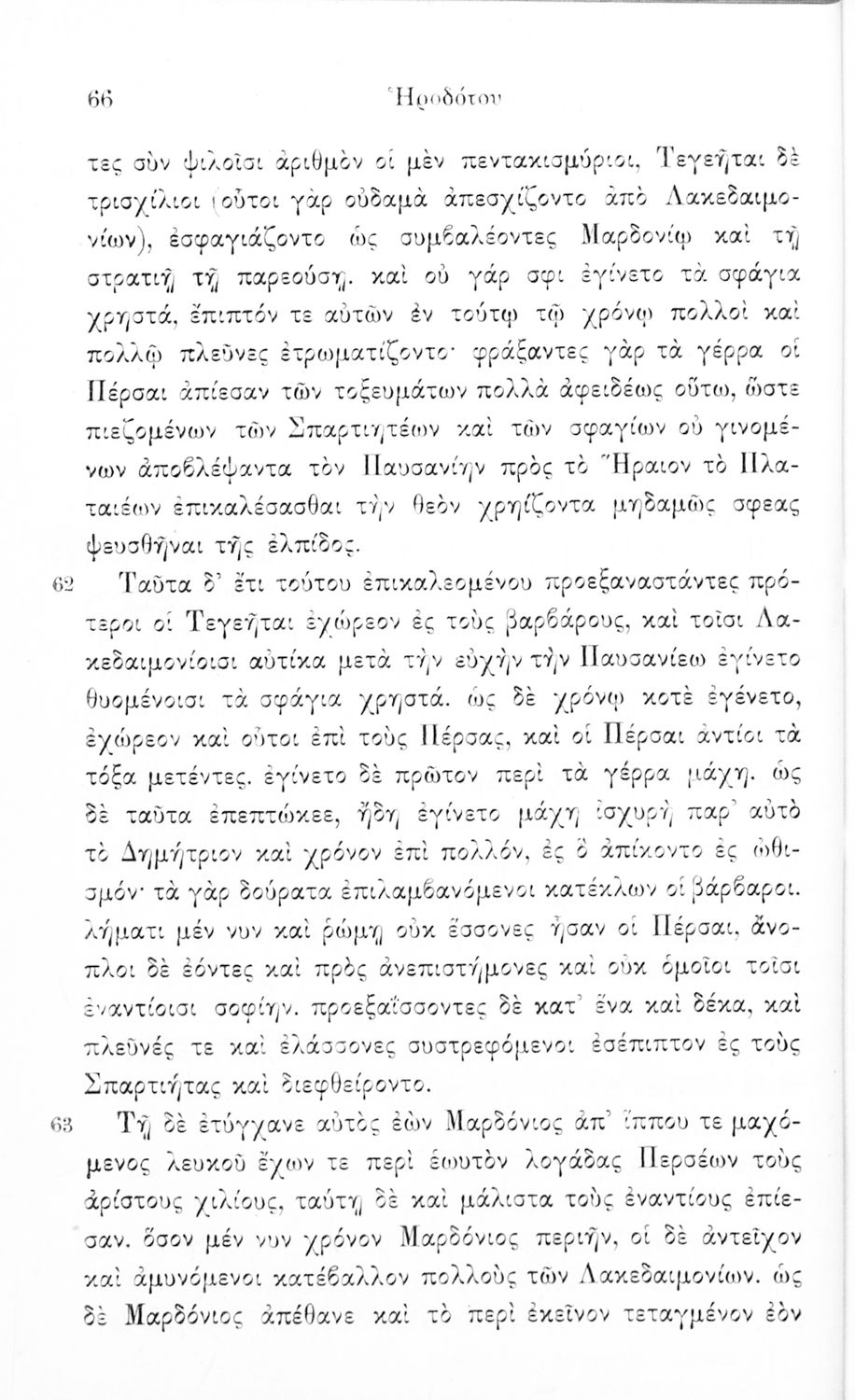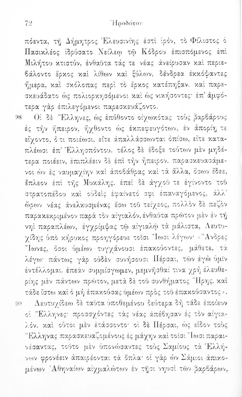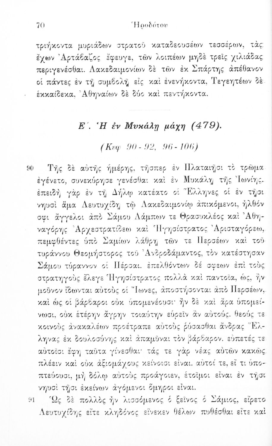 Σχολικό εγχειρίδιο Αρχαίων Ελληνικών Α΄ Γυμνασίου και Α' Διδασκαλείου που περιλαμβάνει αποσπάσματα από το έργο του Ηρόδοτου, ερμηνευτικές σημειώσεις, πραγματολογικά, λεξικολογικά και γραμματικά σχόλια.