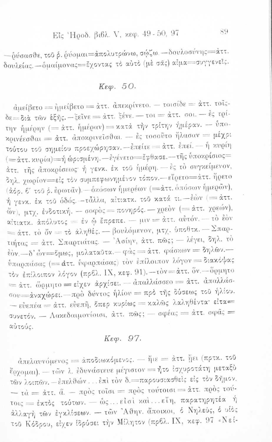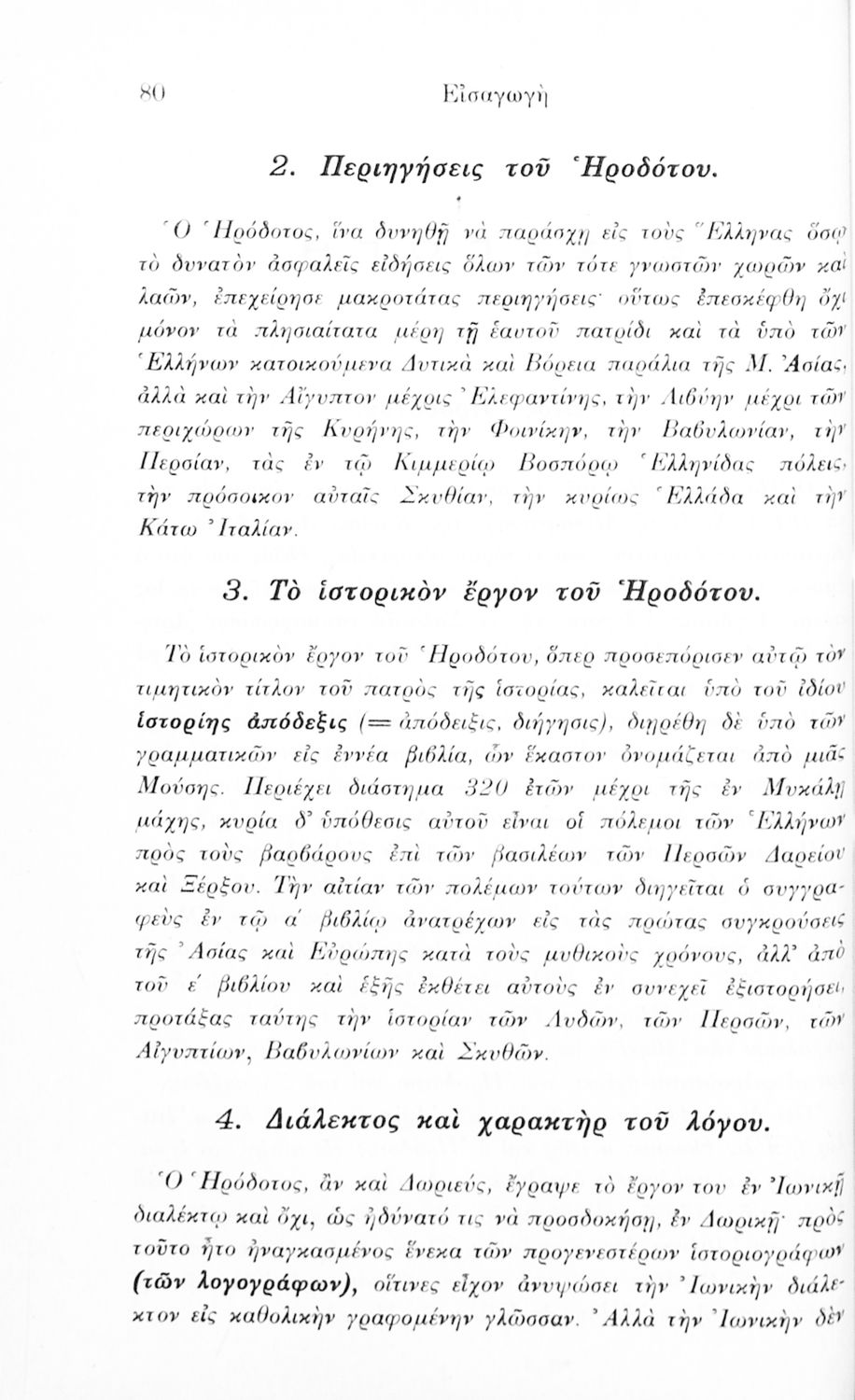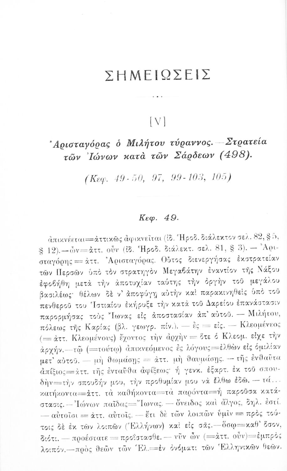 Σχολικό εγχειρίδιο Αρχαίων Ελληνικών Α΄ Γυμνασίου και Α' Διδασκαλείου που περιλαμβάνει αποσπάσματα από το έργο του Ηρόδοτου, ερμηνευτικές σημειώσεις, πραγματολογικά, λεξικολογικά και γραμματικά σχόλια.