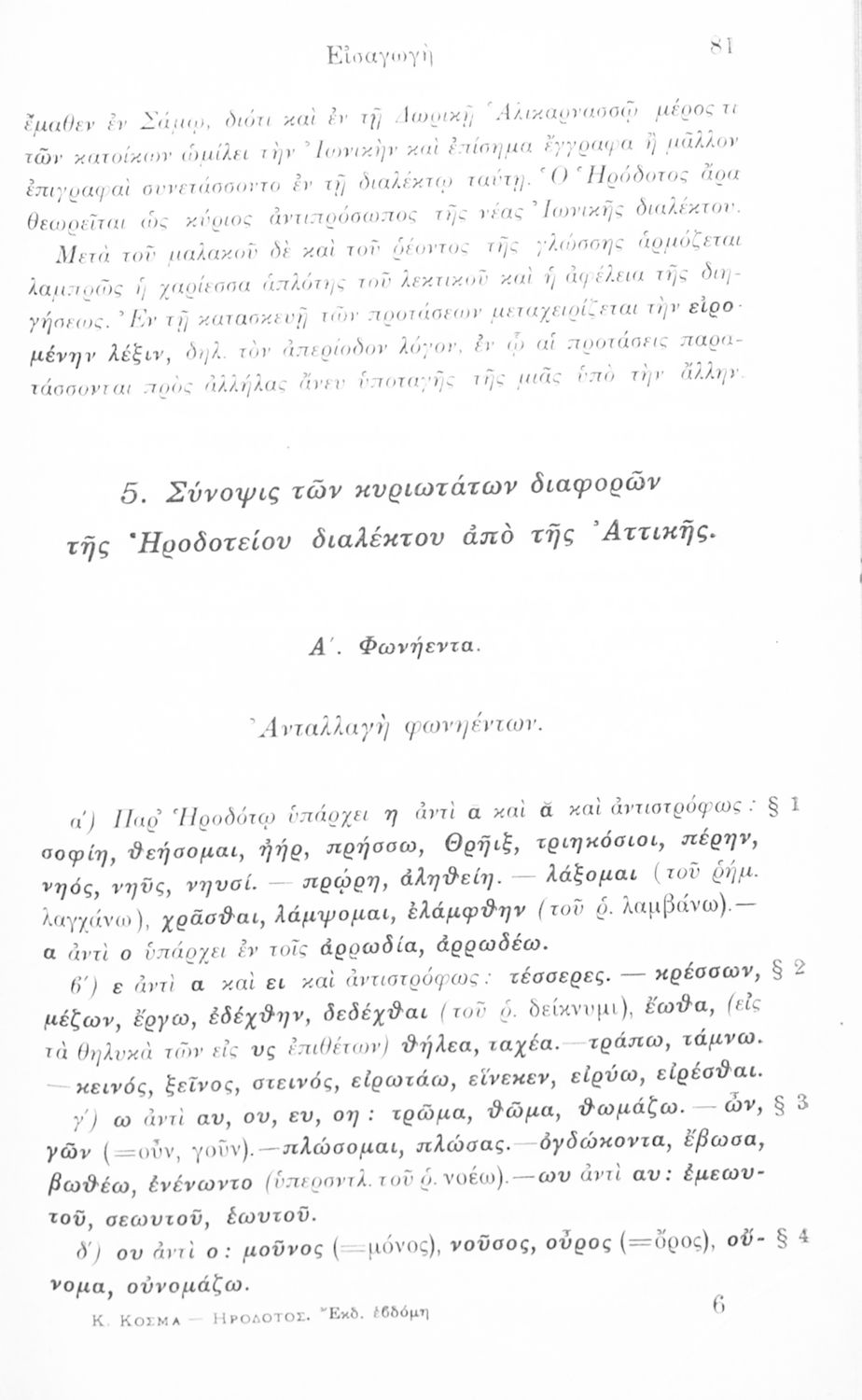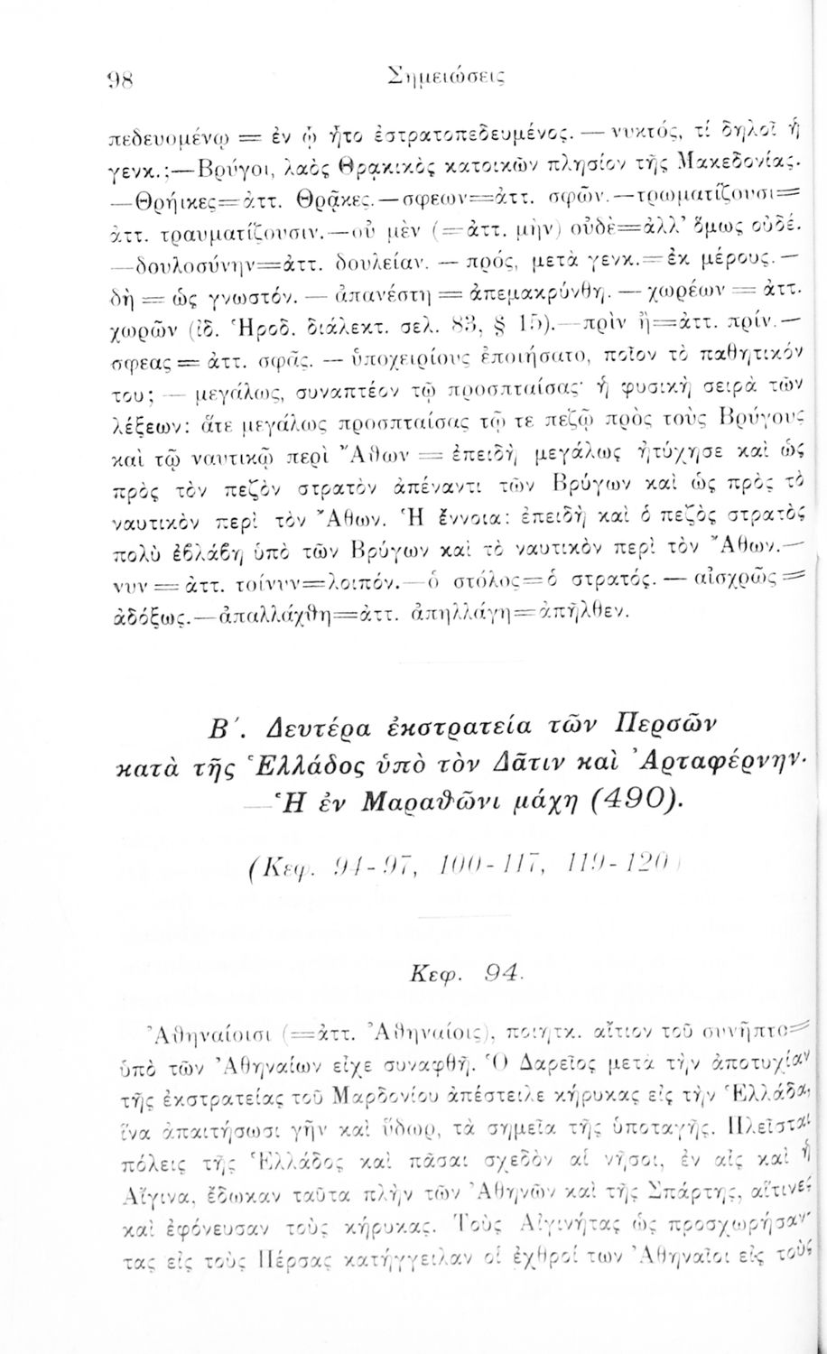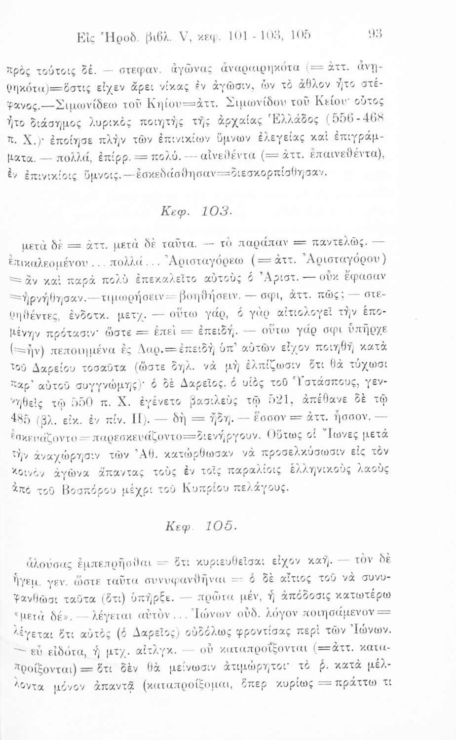 Σχολικό εγχειρίδιο Αρχαίων Ελληνικών Α΄ Γυμνασίου και Α' Διδασκαλείου που περιλαμβάνει αποσπάσματα από το έργο του Ηρόδοτου, ερμηνευτικές σημειώσεις, πραγματολογικά, λεξικολογικά και γραμματικά σχόλια.