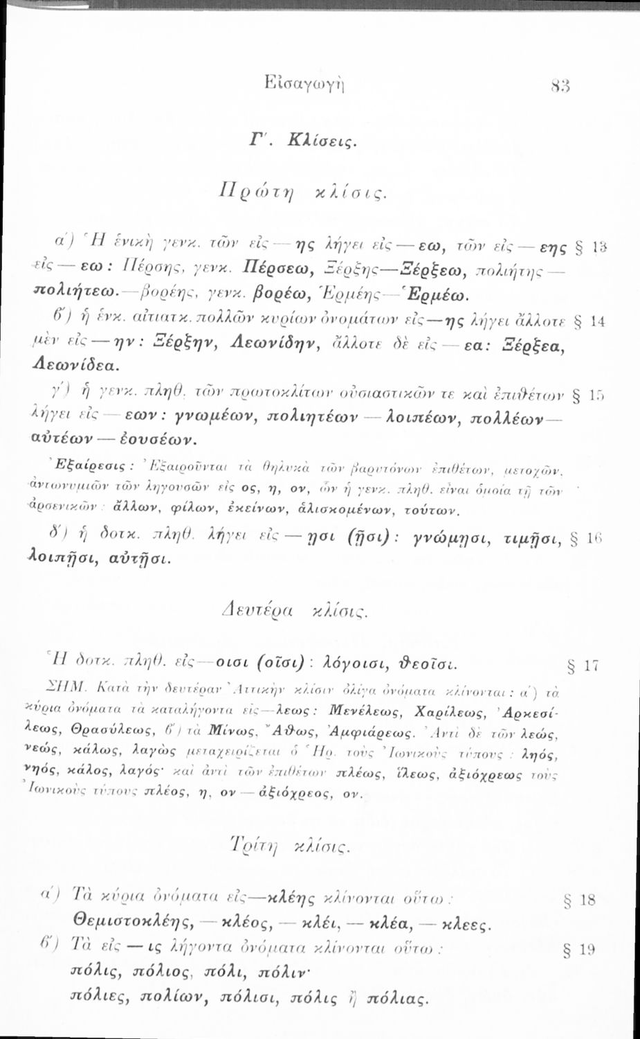 Τάξη:  Γ' Ελληνικών Σχολείων / Α' Αστικών Σχολείων των Θηλέων