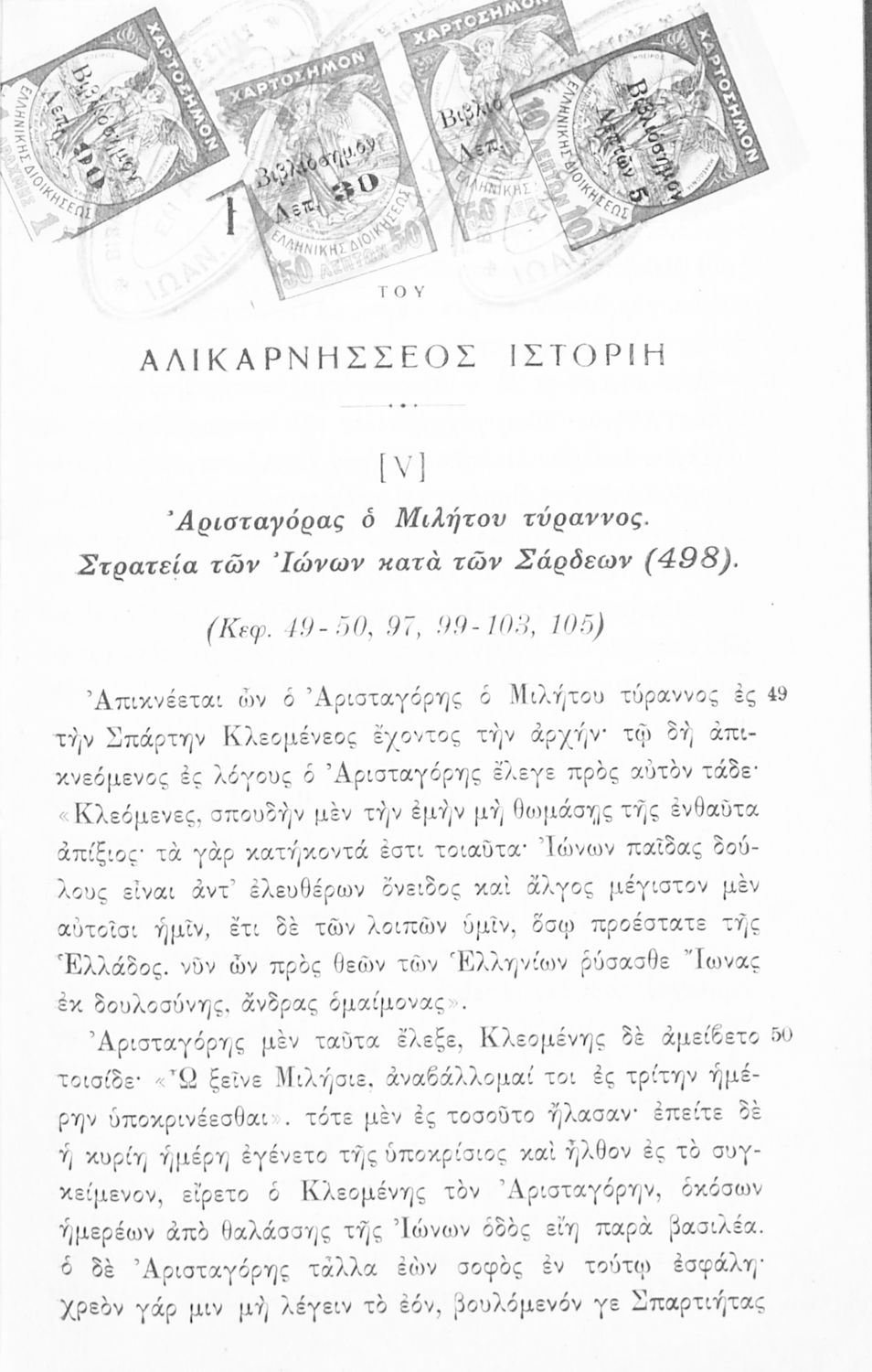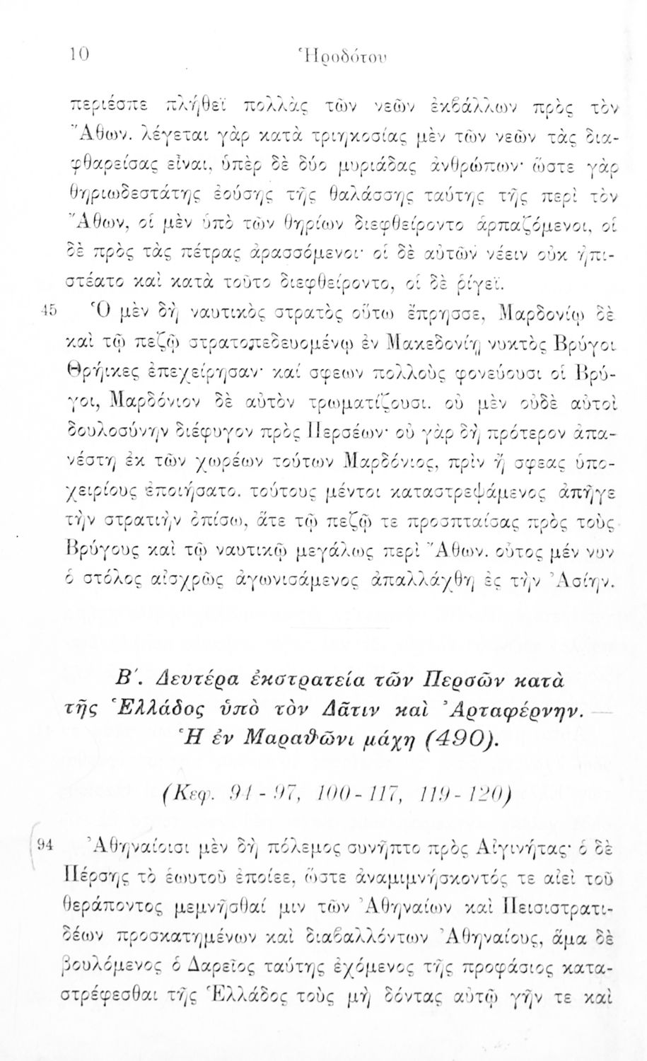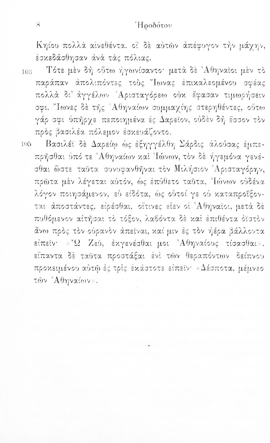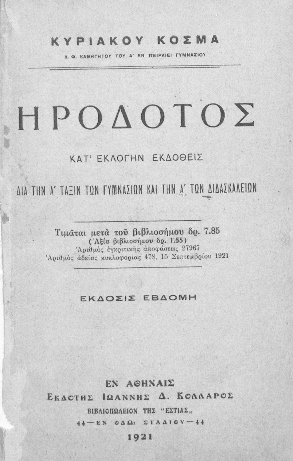 Σχολικό εγχειρίδιο Αρχαίων Ελληνικών Α΄ Γυμνασίου που περιλαμβάνει αποσπάσματα από την Ιστορία του Ηροδότου, βιογραφικά στοιχεία, εισαγωγή στο έργο και τη διάλεκτο του καθώς και ερμηνευτικά και πραγματολογικά σχόλια.
