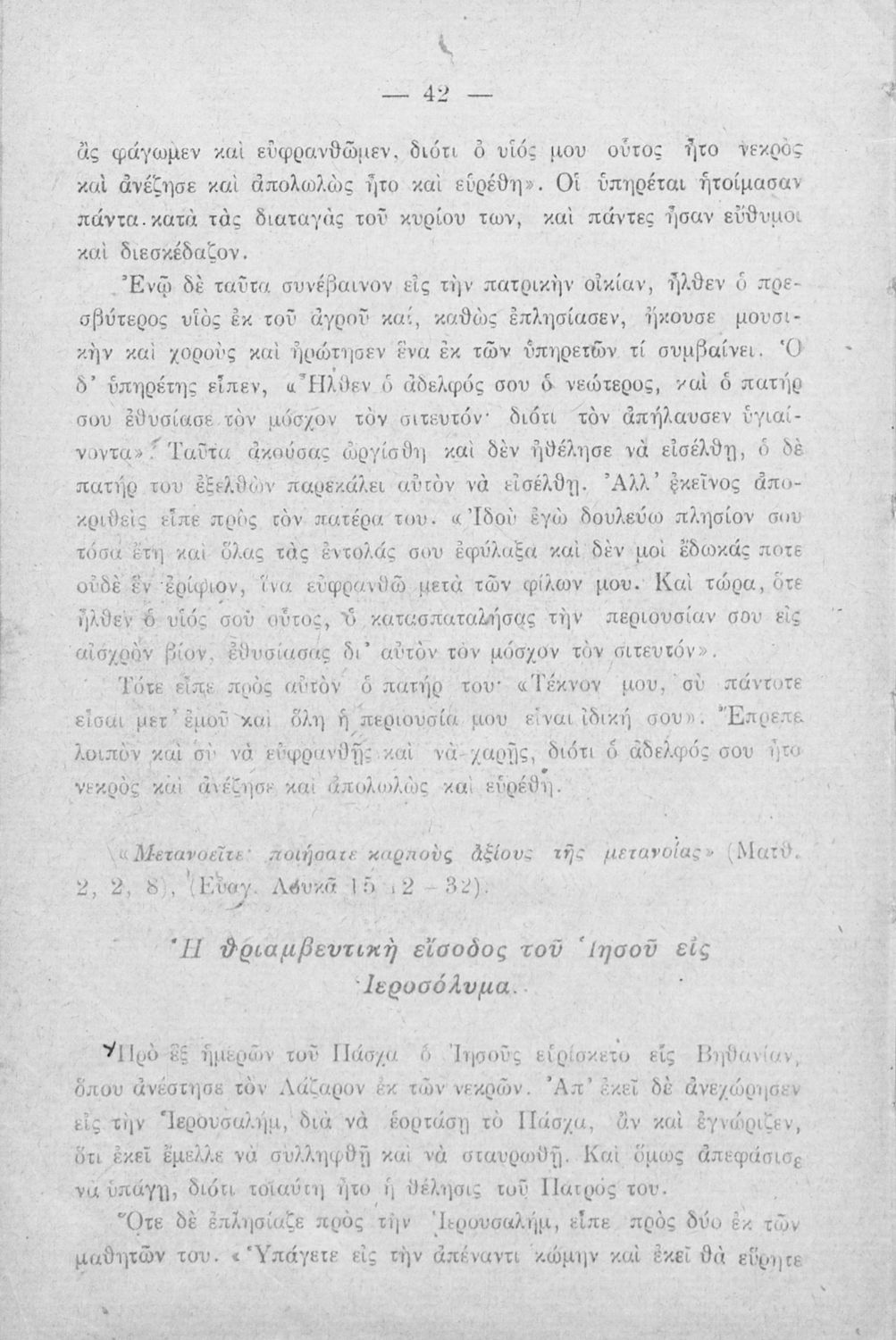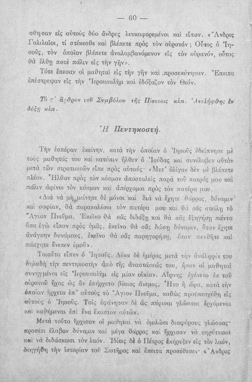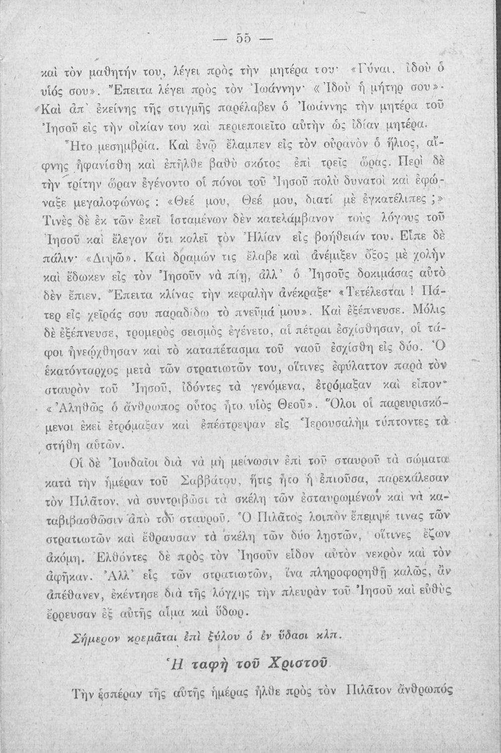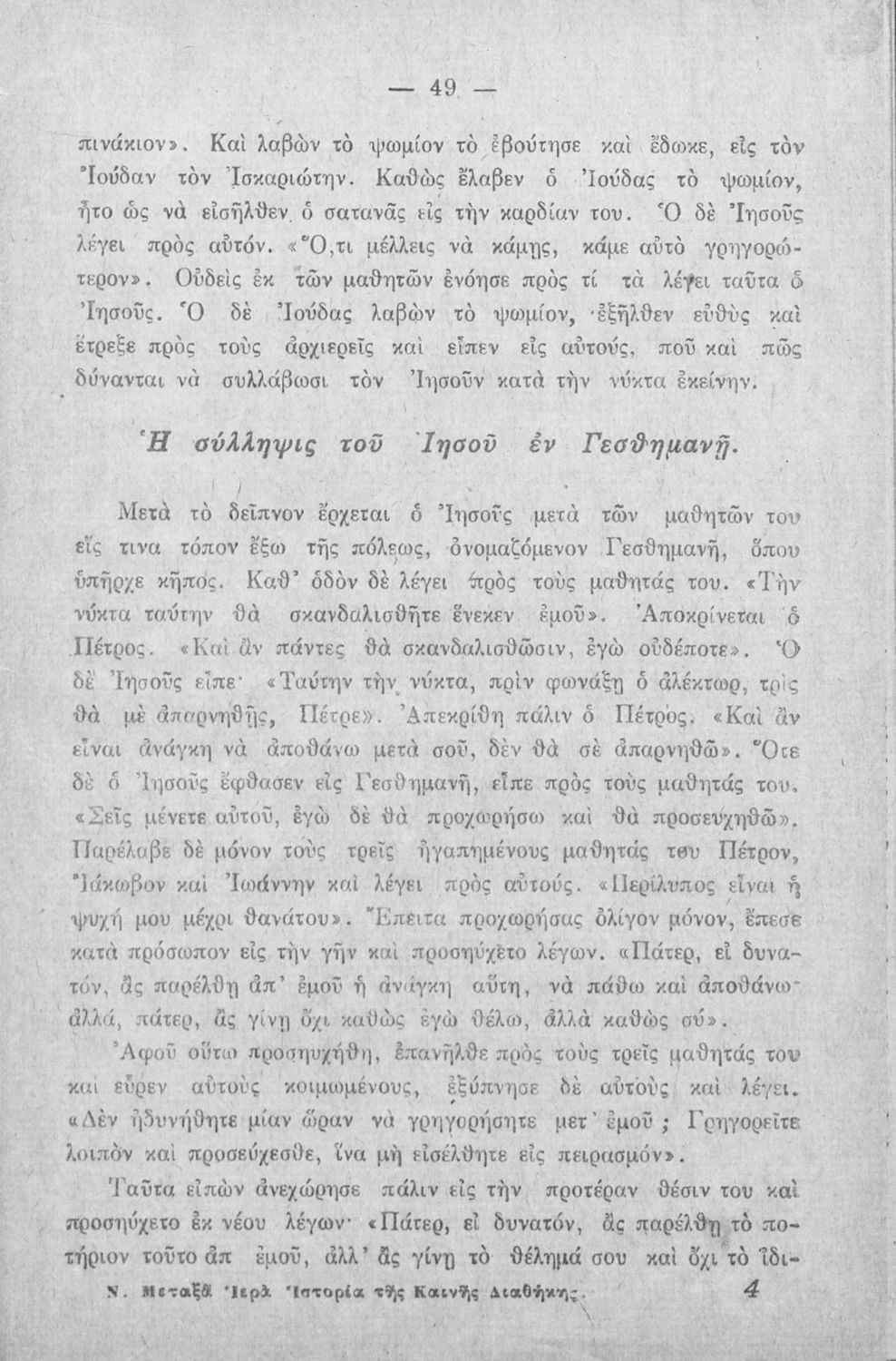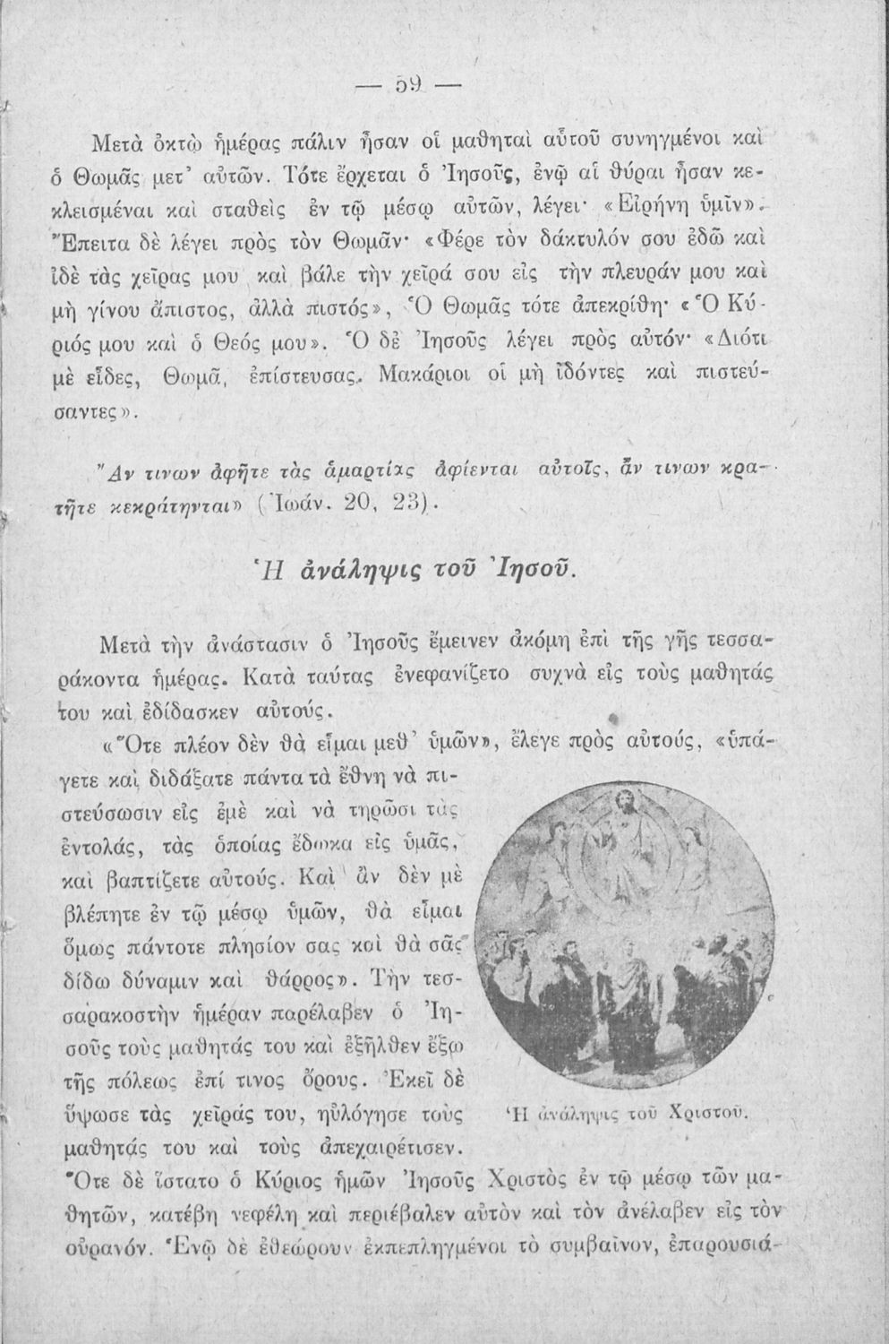 Σχολικό εγχειρίδιο Θρησκευτικών για τα Ελληνικά σχολεία και Παρθεναγωγεία που συνιστά μία εξιστόρηση της Καινής Διαθήκης από τη γέννηση της Θεοτόκου ως την ανάληψη του Χριστού και τη δράση των Αποστόλων.