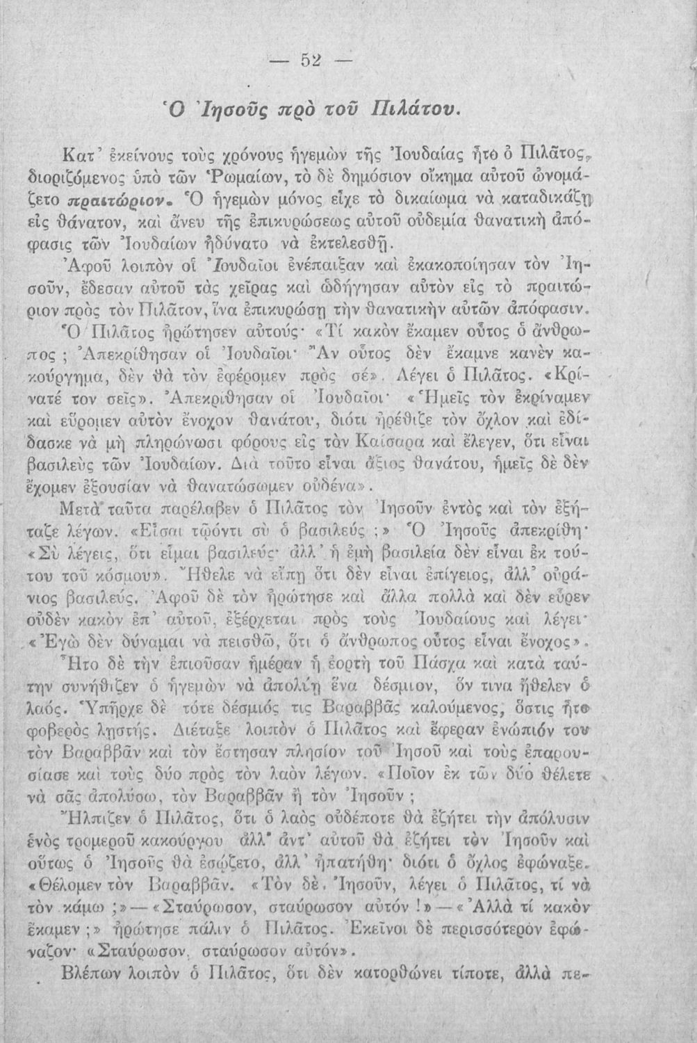 Σχολικό εγχειρίδιο Θρησκευτικών Δημοτικού, Παρθεναγωγείου και Ελληνικού σχολείου που περιλαμβάνει τη ζωή του Ιησού Χριστού από τη γέννησή του ως την ανάληψή του και την ημέρα της Πεντηκοστής.