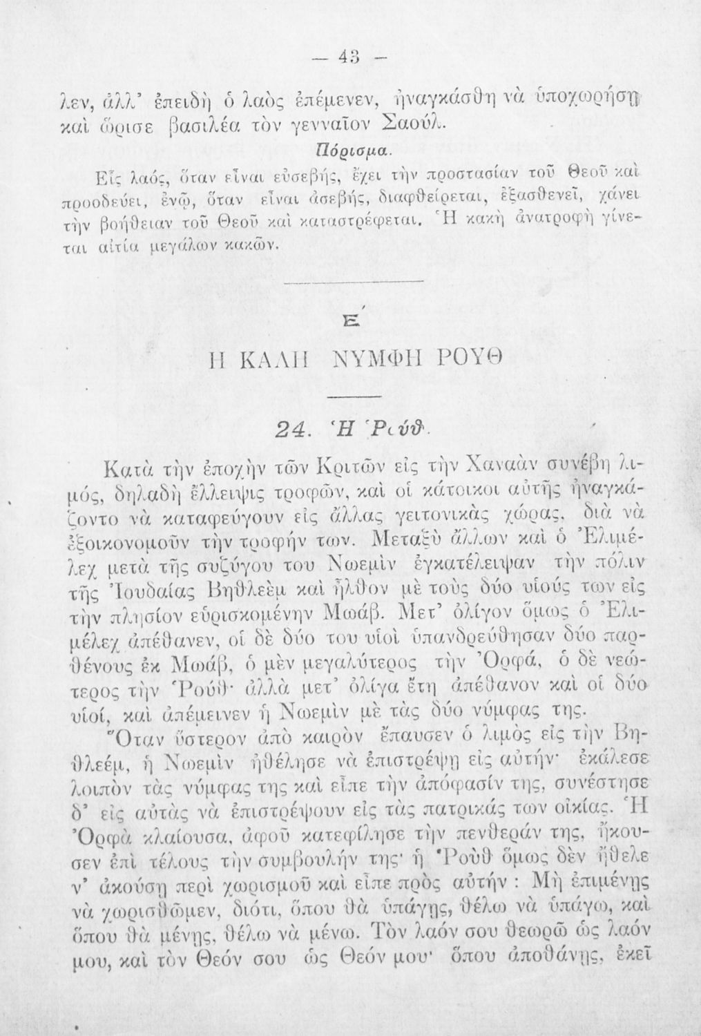 Σχολικό εγχειρίδιο Θρησκευτικών για τα Ελληνικά σχολεία και Παρθεναγωγεία που συνιστά μία εξιστόρηση της Καινής Διαθήκης από τη γέννηση της Θεοτόκου ως την ανάληψη του Χριστού και τη δράση των Αποστόλων.