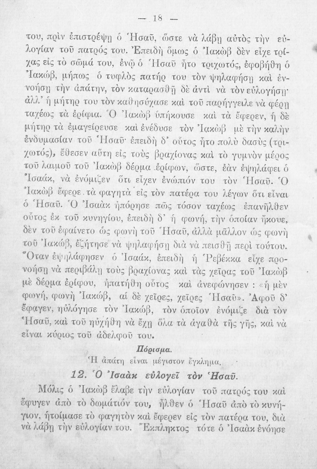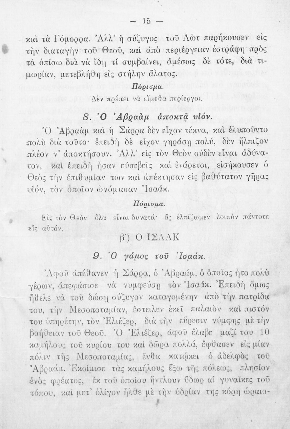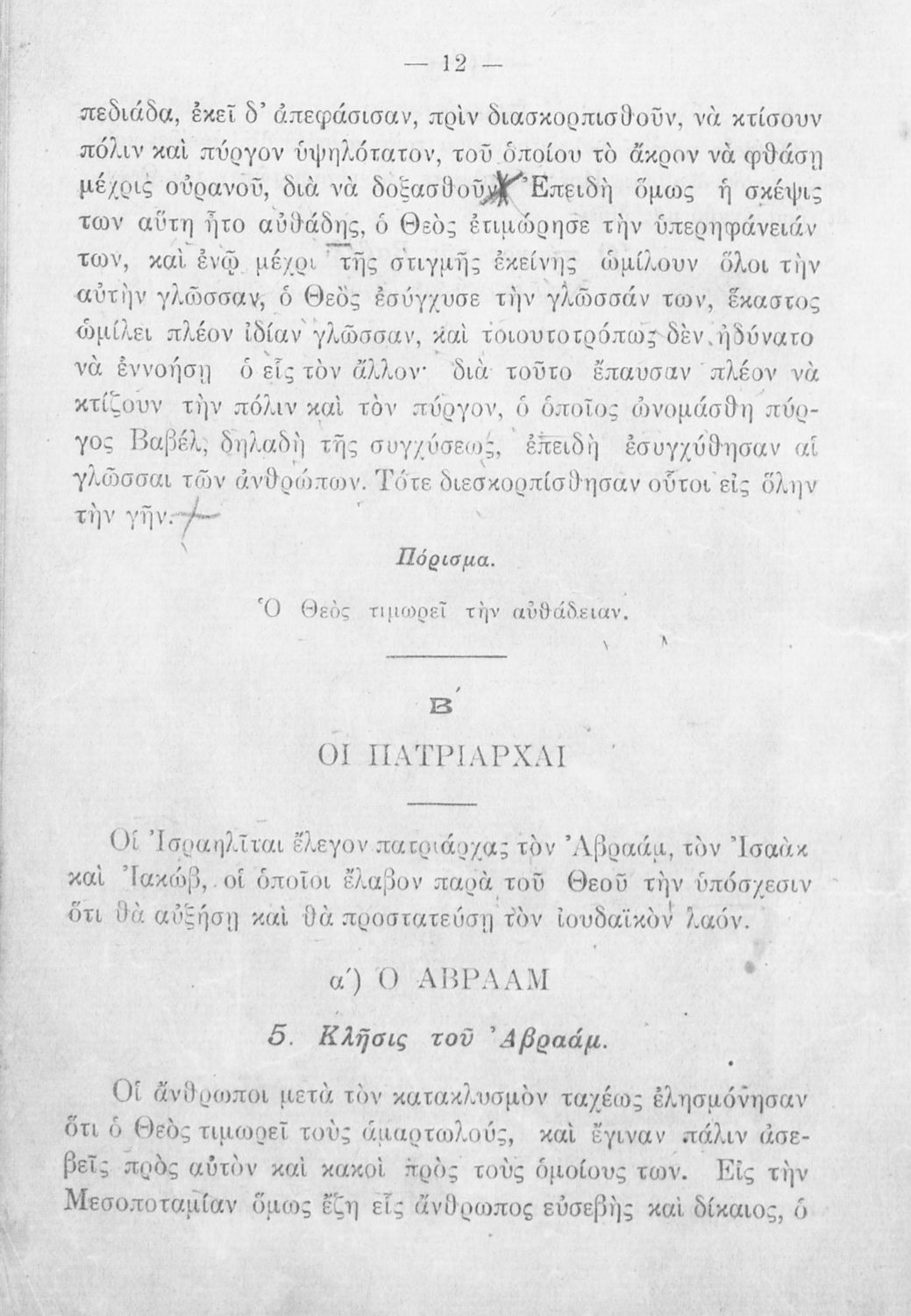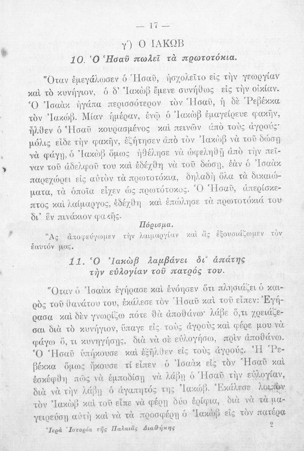Σχολικό εγχειρίδιο Θρησκευτικών που συνιστά μία εξιστόρηση της Παλαιάς Διαθήκης από τη δημιουργία του κόσμου ως την υποταγή των Εβραίων στους Ρωμαίους. Περιέχει και στοιχεία γεωγραφίας της Παλαιστίνης.