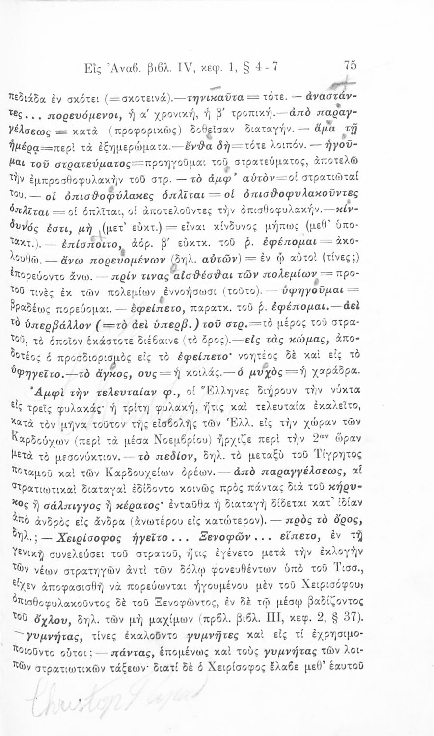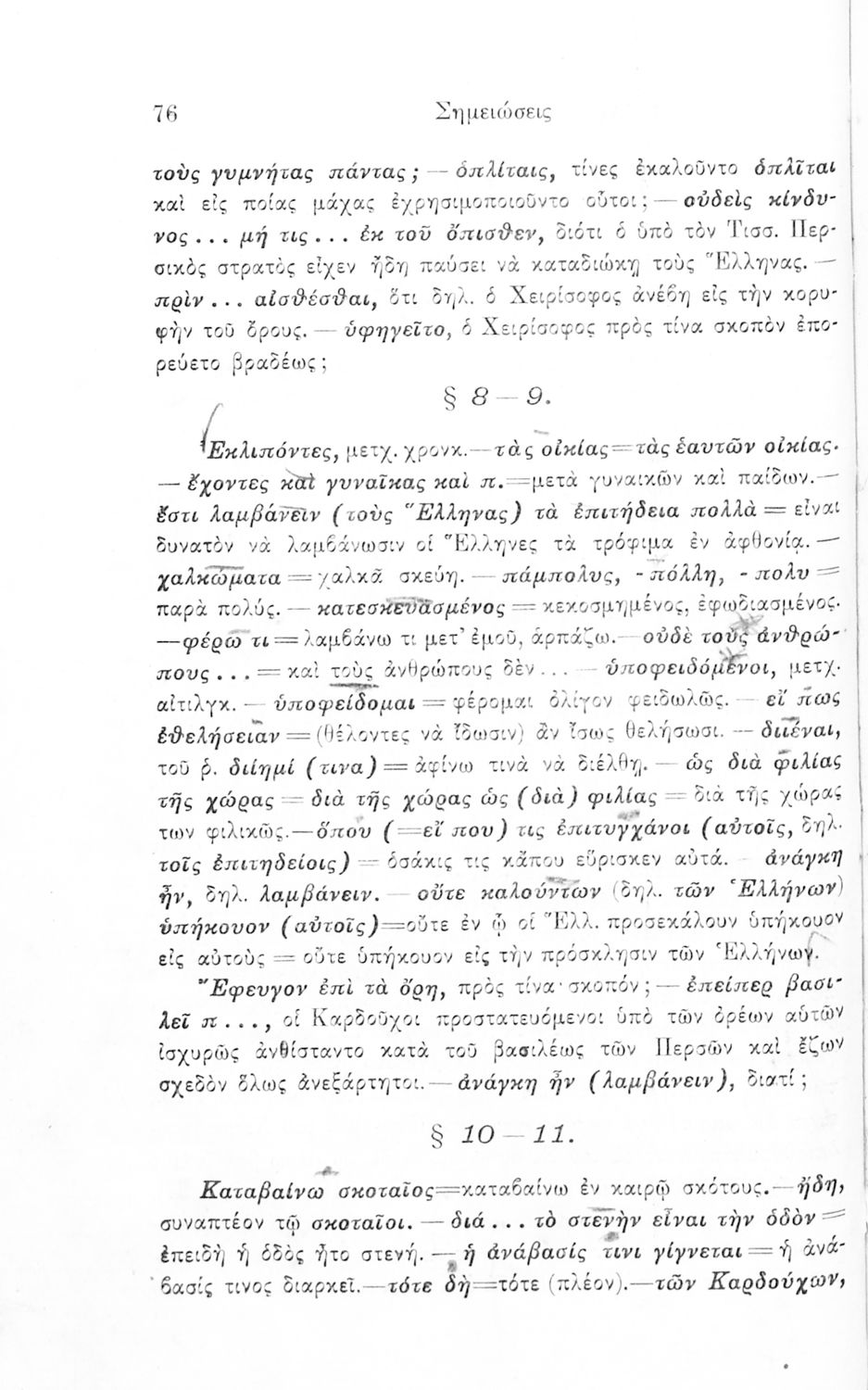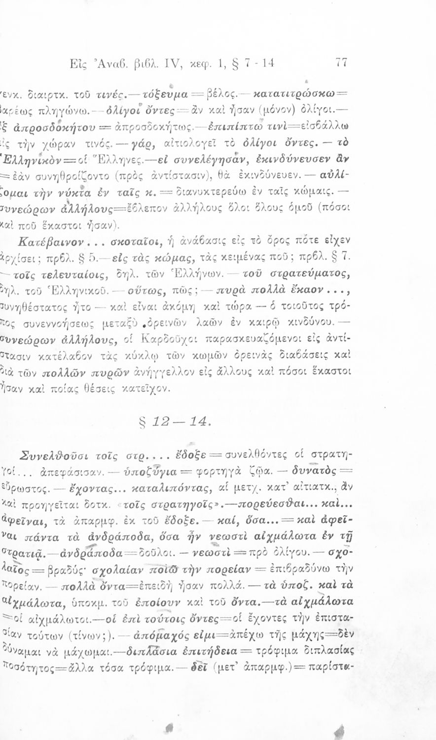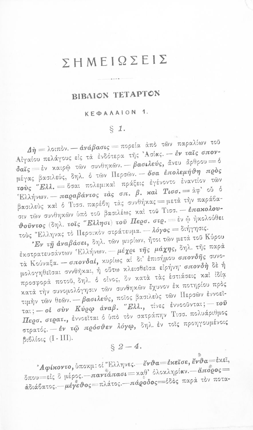 Σχολικό εγχειρίδιο Αρχαίων Ελληνικών Γ' Ελληνικού και Αστικού Σχολείου που περιλαμβάνει το έργο του Ξενοφώντα Κύρου Ανάβασις, εισαγωγικά σχόλια για τη ζωή και το έργο του, ερμηνευτικές και γραμματικές παρατηρήσεις, και πίνακα κυριοτέρων ονομάτων.