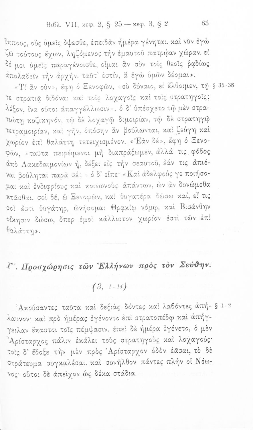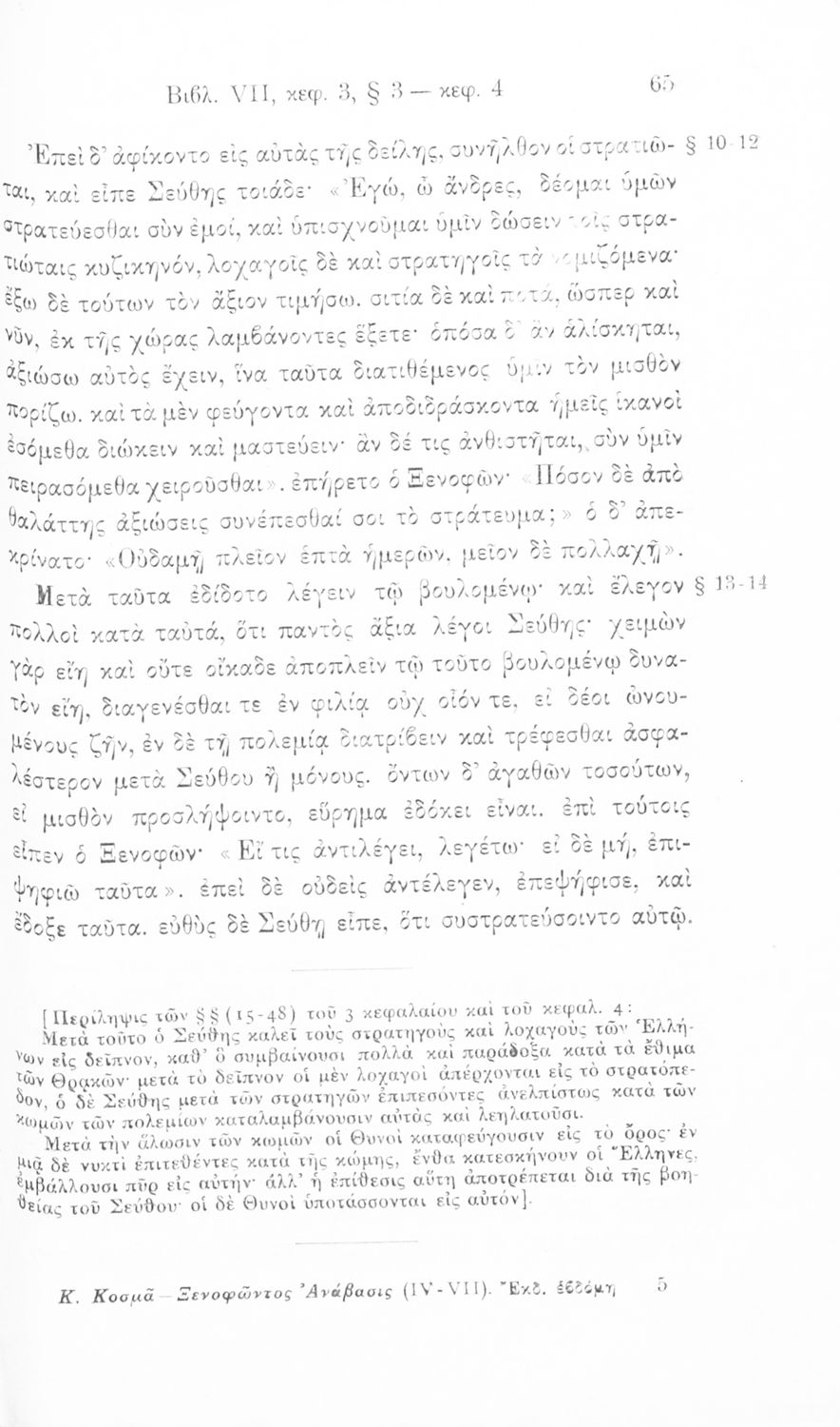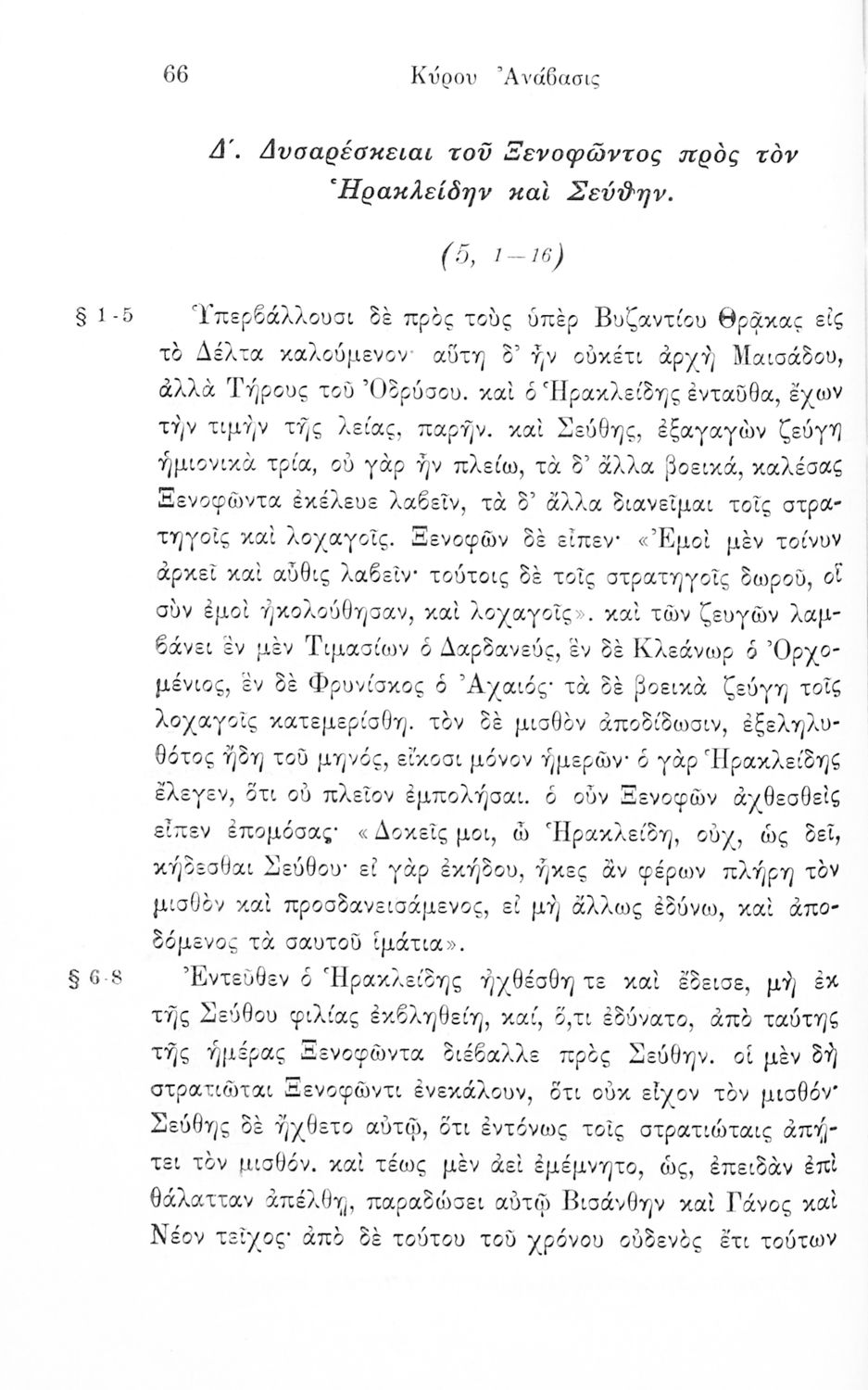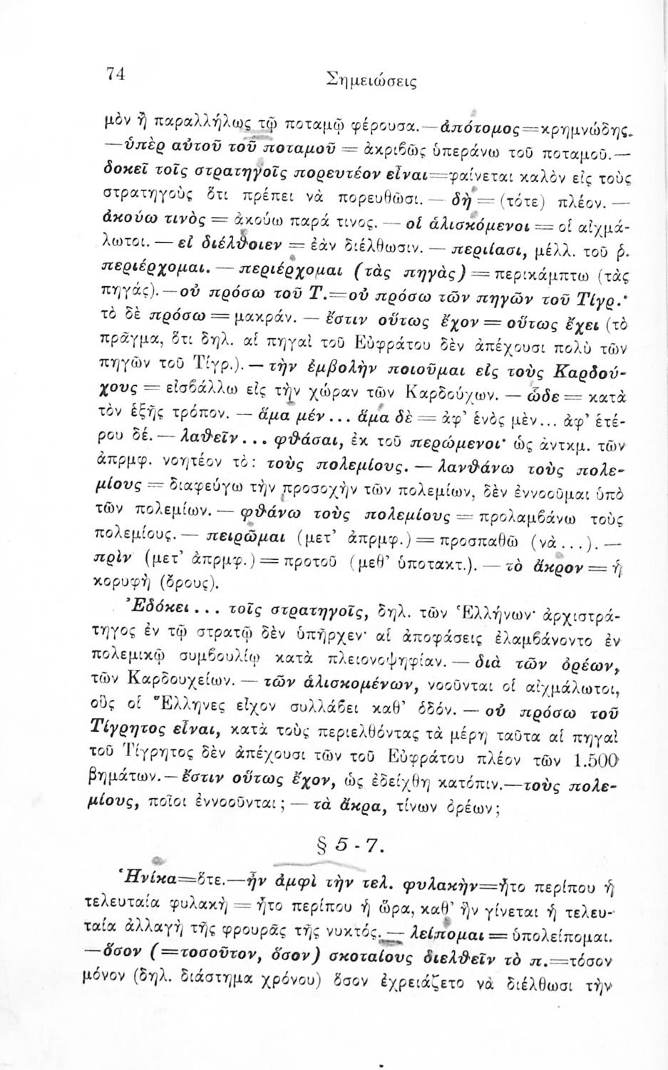 Σχολικό εγχειρίδιο Αρχαίων Ελληνικών Γ' Ελληνικού και Αστικού Σχολείου που περιλαμβάνει το έργο του Ξενοφώντα Κύρου Ανάβασις, εισαγωγικά σχόλια για τη ζωή και το έργο του, ερμηνευτικές και γραμματικές παρατηρήσεις, και πίνακα κυριοτέρων ονομάτων.