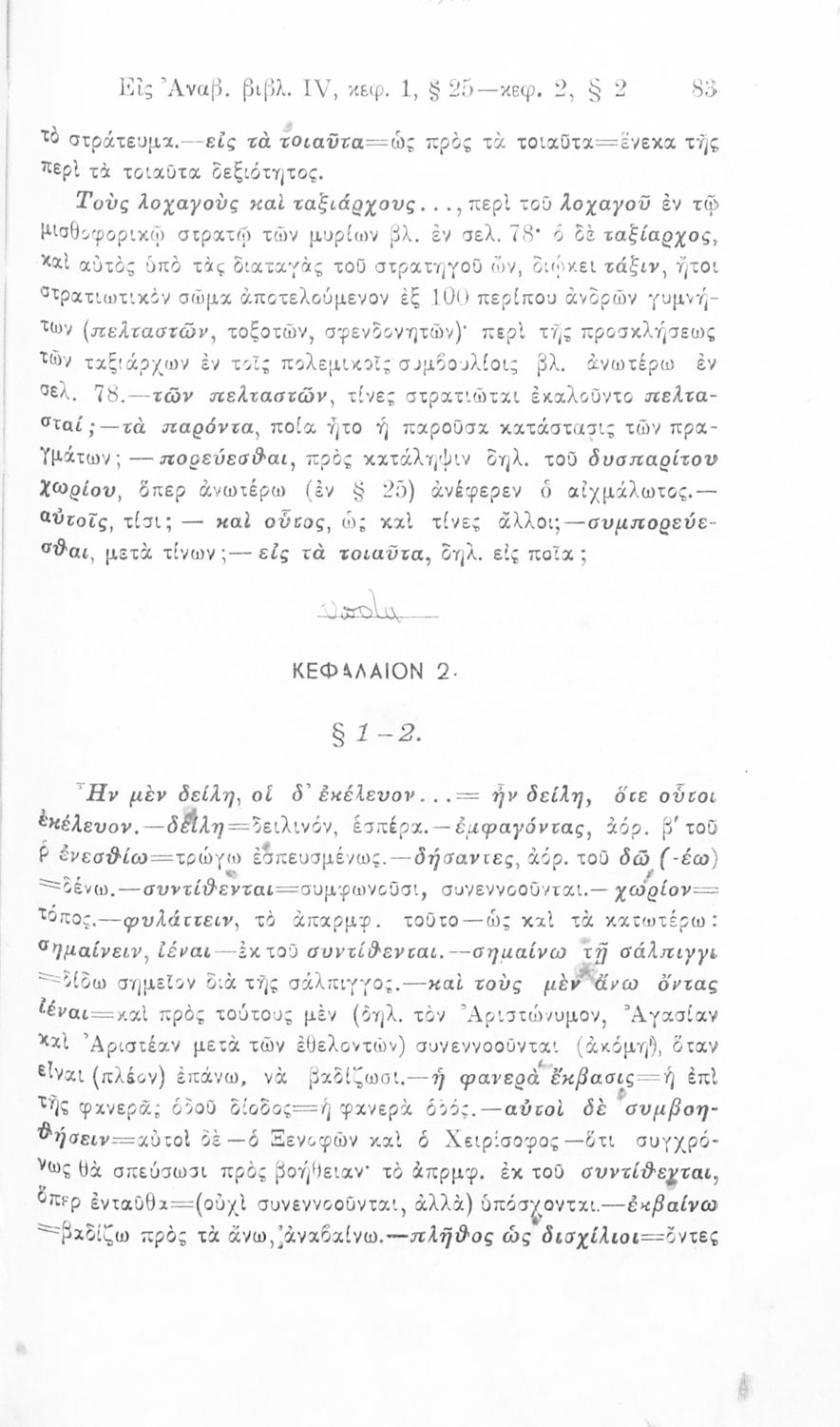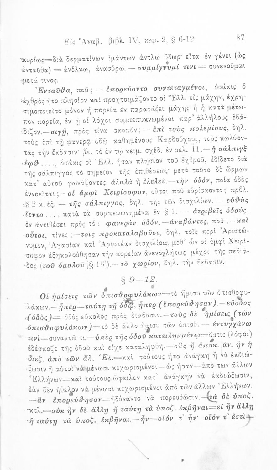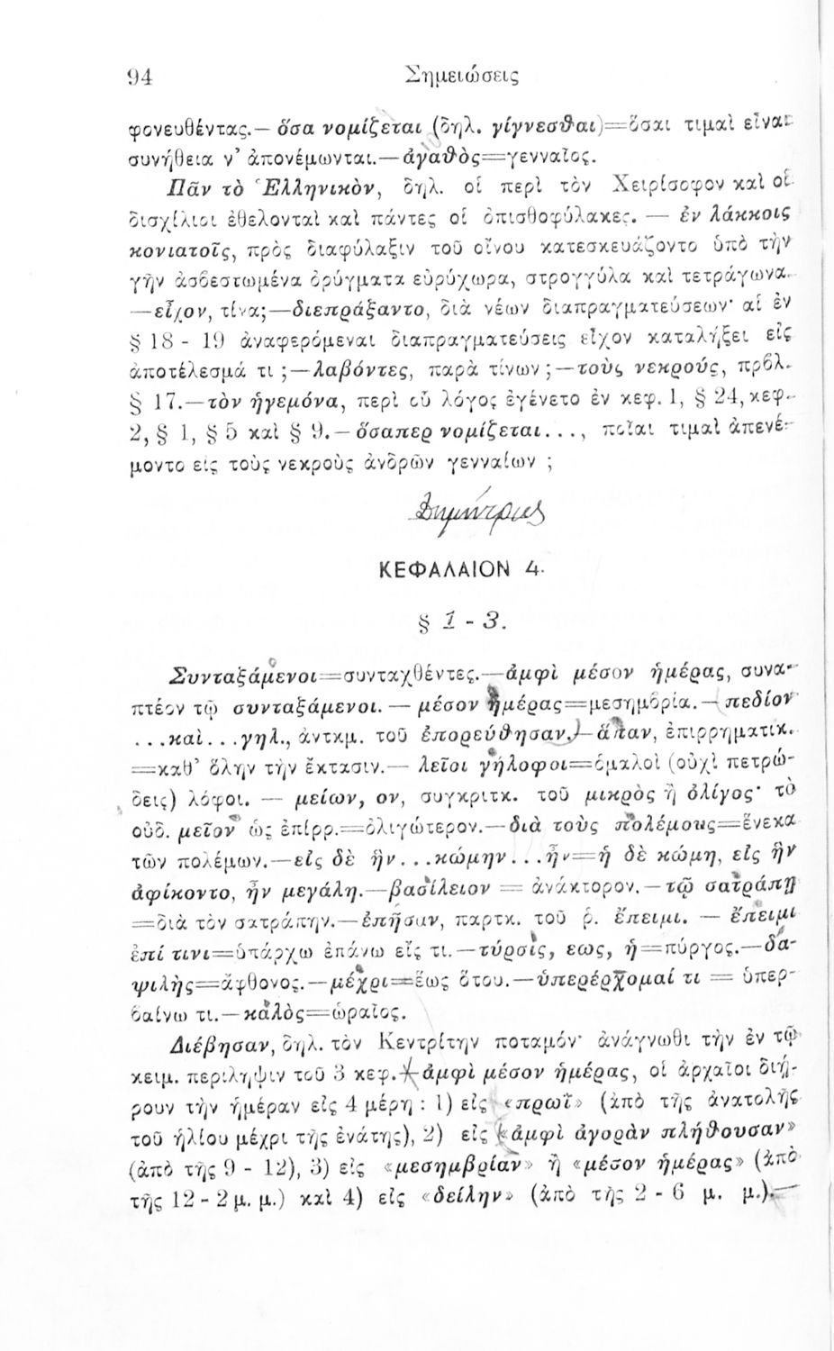 Σχολικό εγχειρίδιο Αρχαίων Ελληνικών Γ' Ελληνικού και Αστικού Σχολείου που περιλαμβάνει το έργο του Ξενοφώντα Κύρου Ανάβασις, εισαγωγικά σχόλια για τη ζωή και το έργο του, ερμηνευτικές και γραμματικές παρατηρήσεις, και πίνακα κυριοτέρων ονομάτων.