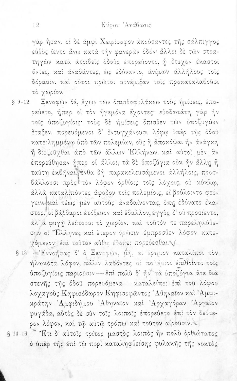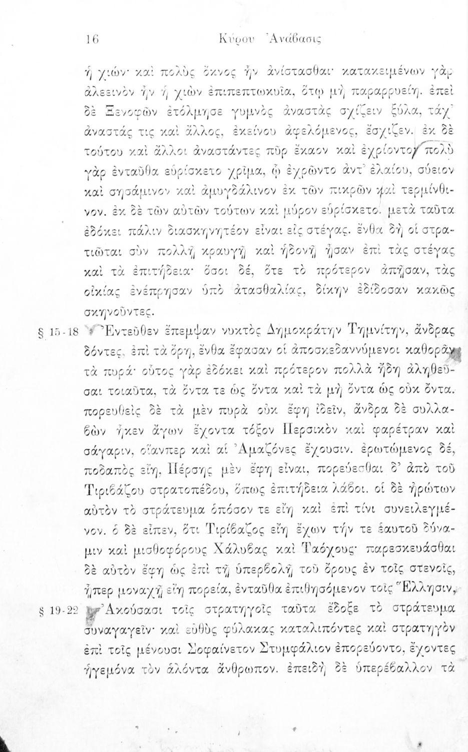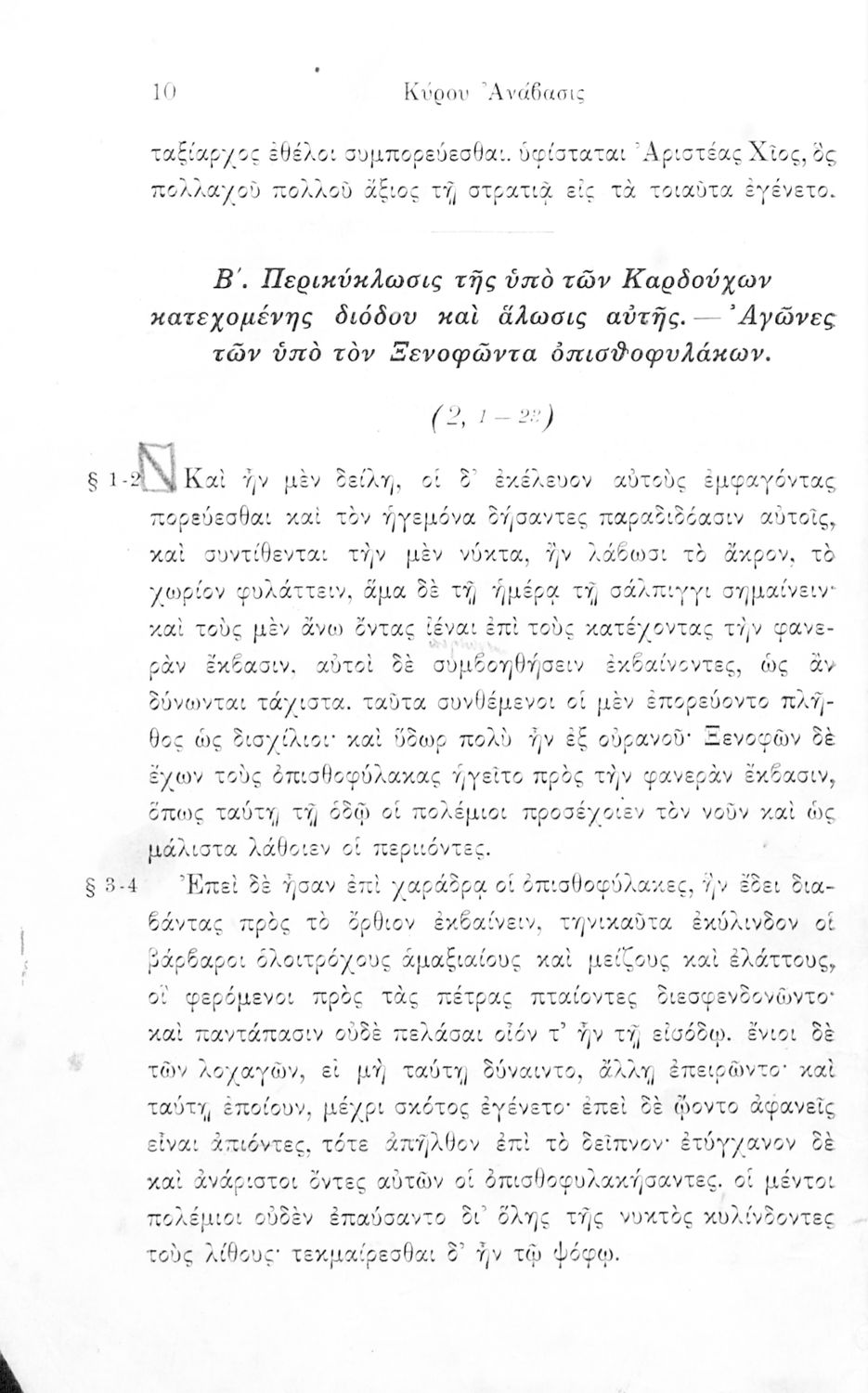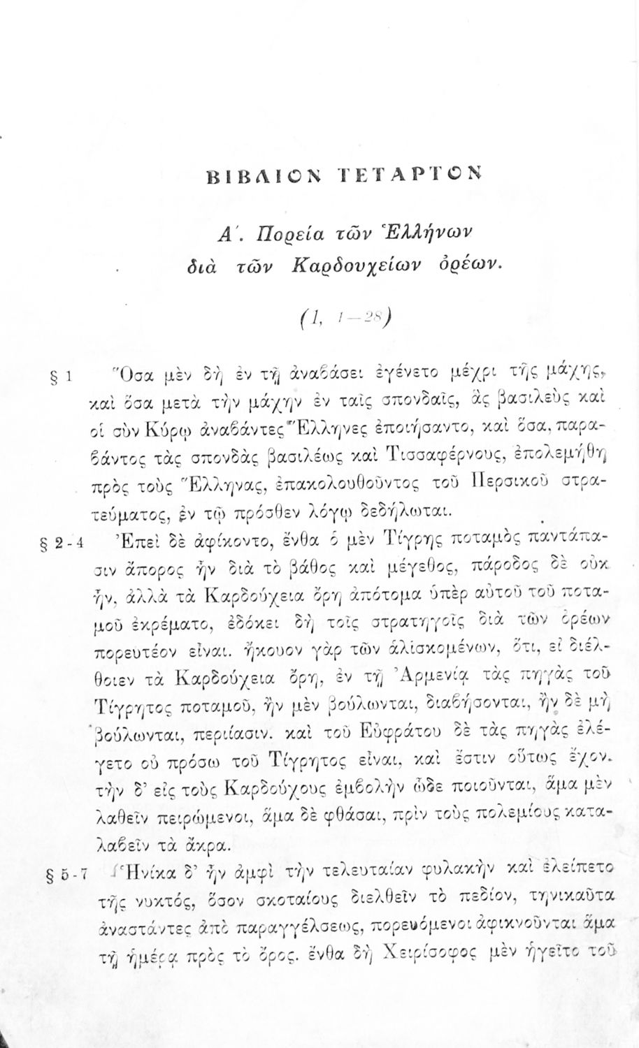 Σχολικό εγχειρίδιο της Γ' Ελληνικού Σχολείου και Αστικών Σχολείων για το μάθημα των Αρχαίων Ελληνικών. Το σύγγραμμα περιλαμβάνει κείμενα κατ΄ επιλογή από τα τέσσερα τελευταία βιβλία του έργου Κύρου Ανάβασις. ...