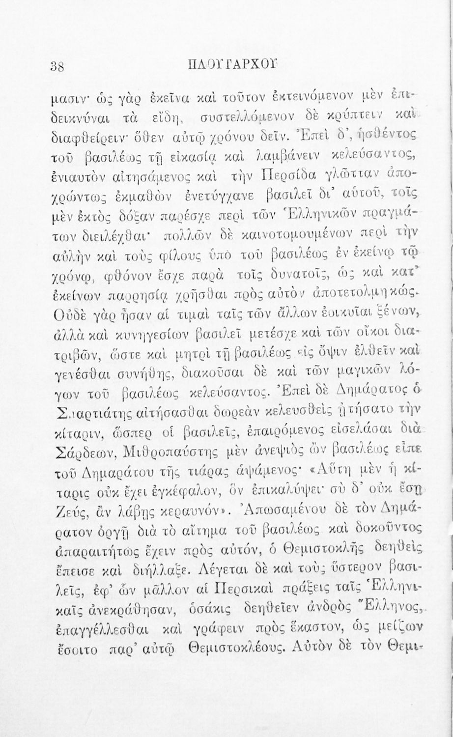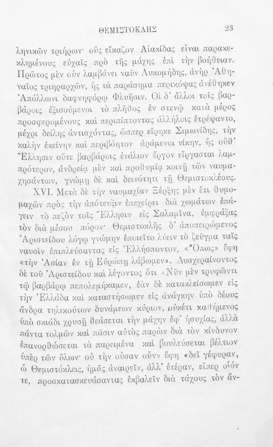 LDR 01351 2200205 4500 035 ## _a02-01978 040 ## _aΕλληνικό Λογοτεχνικό και Ιστορικό Αρχείο 041 ## _ael 100 ## _aΠλούταρχος _aΔημήτριος Ι. Φιλικός (σχόλια) 110 ## _a1921 ΠΛΟ 245 0# _aΠλουτάρχου Θεμιστοκλής μετά σημειώσεων προς χρήσιν των μαθητών της Α΄ τάξεως του Γυμνασίου και των Διδασκαλείων 250 ## _a2η Έκδοση 260 ## _aΑθήνα _bΤυπογραφείο: Α. Ζ Διαλήσμας _c1921 300 ## _a83 _bΣκίτσα (ασπρόμαυρα) 520 ## _aΣχολικό εγχειρίδιο Αρχαίων Ελληνικών Α΄ Γυμνασίου που περιλαμβάνει το έργο του Πλούταρχου Θεμιστοκλής, εισαγωγή στη ζωή και το έργο του, ερμηνευτικά και πραγματολογικά σχόλια, και αλφαβητικό πίνακα των κυριοτέρων ονομάτων. 521 ## _aΑ' Γυμνασίου 522 ## _aΕλλάδα 546 ## _aΚαθαρεύουσα 563 ## _aΣκληρό Εξώφυλλο 650 #4 _aΑθηναίοι _aΝαυμαχία Σαλαμίνας _aΠέρσες