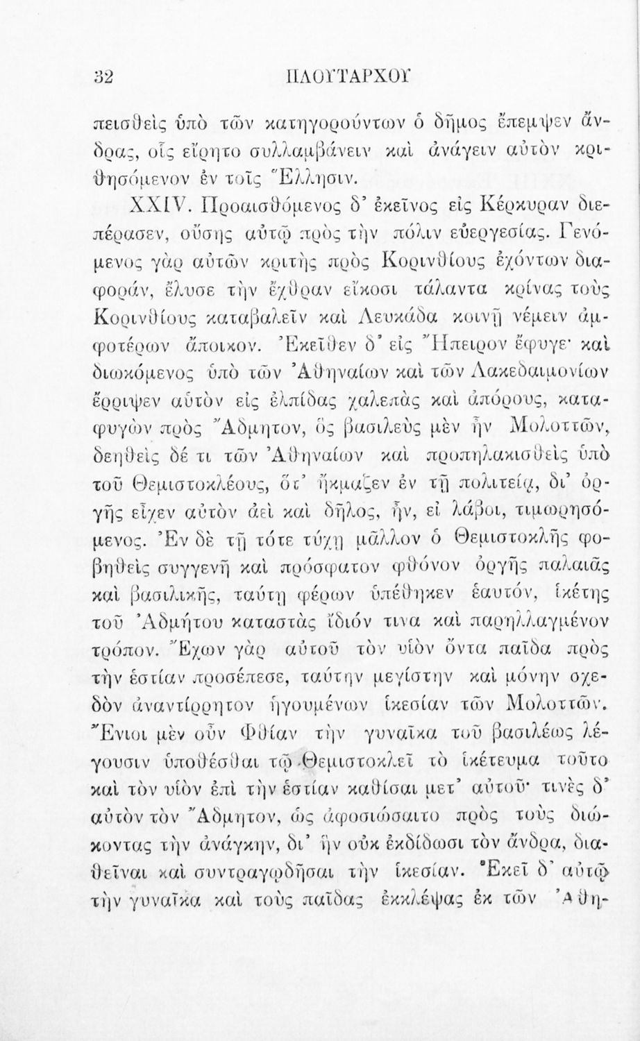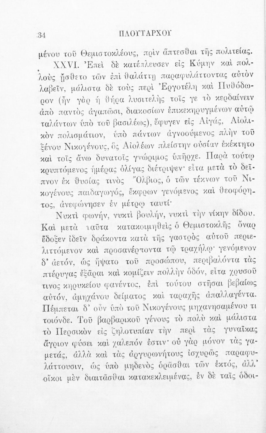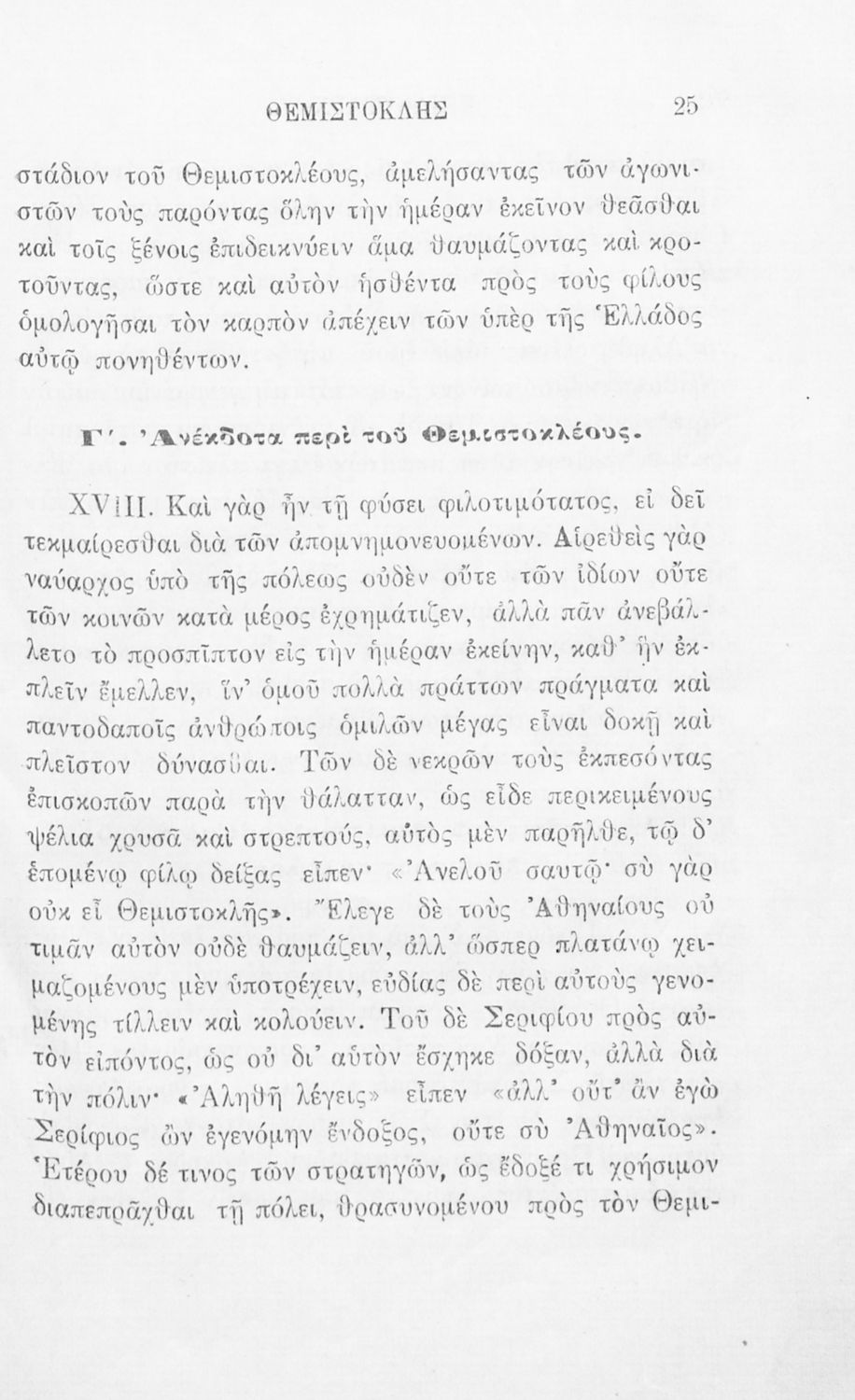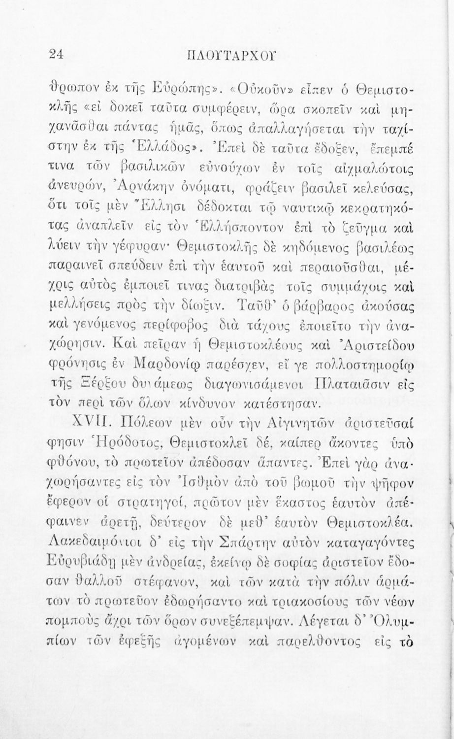 Σχολικό εγχειρίδιο Αρχαίων Ελληνικών Α΄ Γυμνασίου που περιλαμβάνει το έργο του Πλούταρχου Θεμιστοκλής, εισαγωγή στη ζωή και το έργο του, ερμηνευτικά και πραγματολογικά σχόλια, και αλφαβητικό πίνακα των κυριοτέρων ονομάτων.