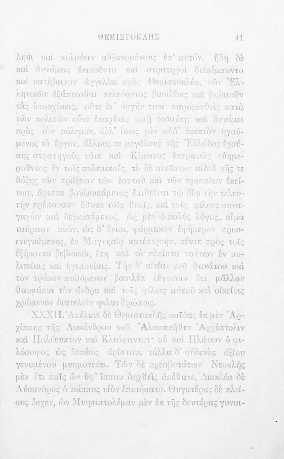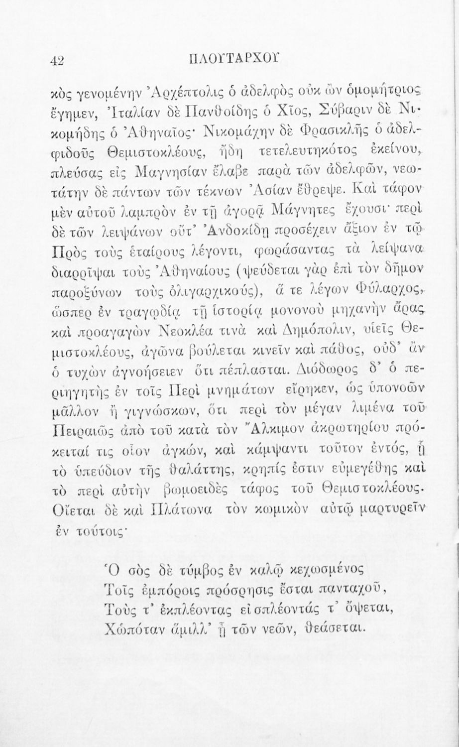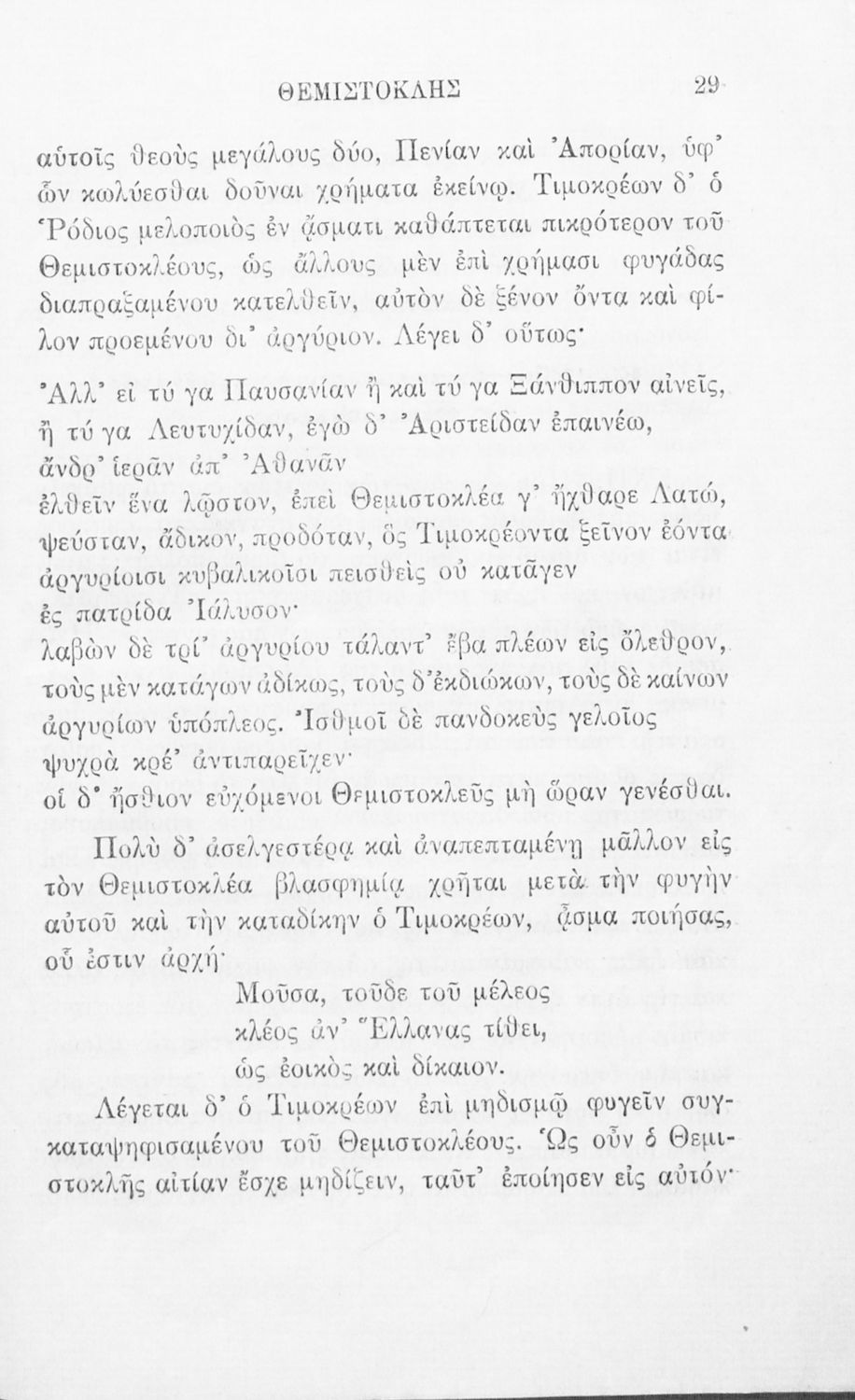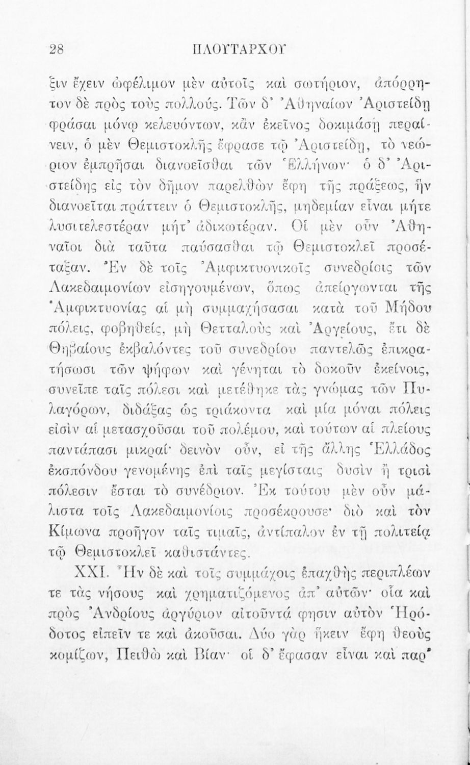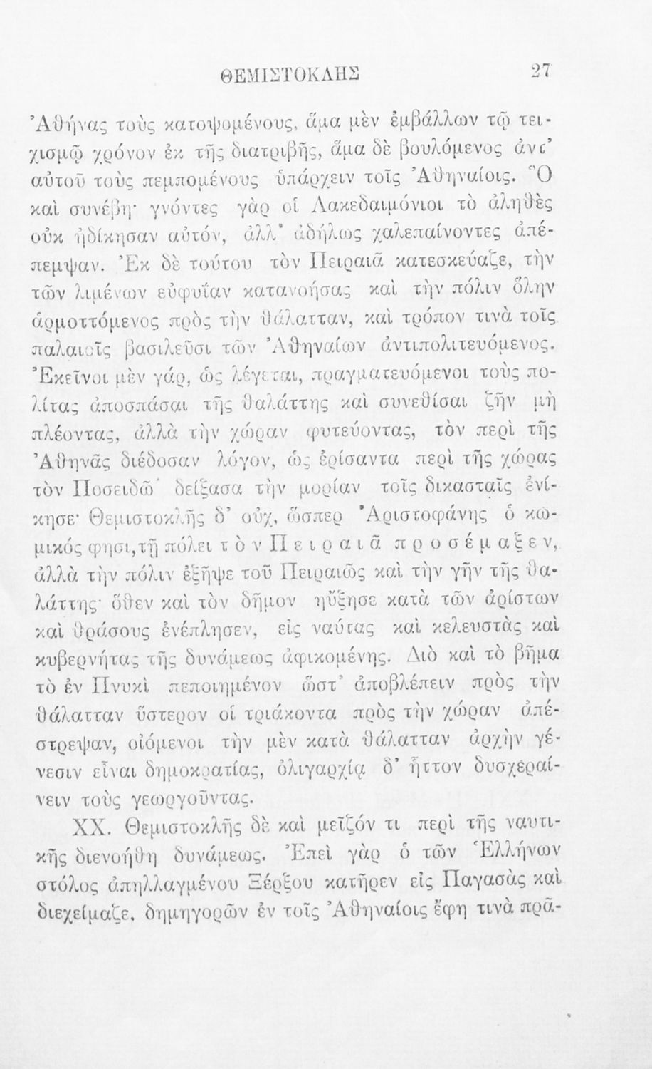 Σχολικό εγχειρίδιο Αρχαίων Ελληνικών Α΄ Γυμνασίου που περιλαμβάνει το έργο του Πλούταρχου Θεμιστοκλής, εισαγωγή στη ζωή και το έργο του, ερμηνευτικά και πραγματολογικά σχόλια, και αλφαβητικό πίνακα των κυριοτέρων ονομάτων.