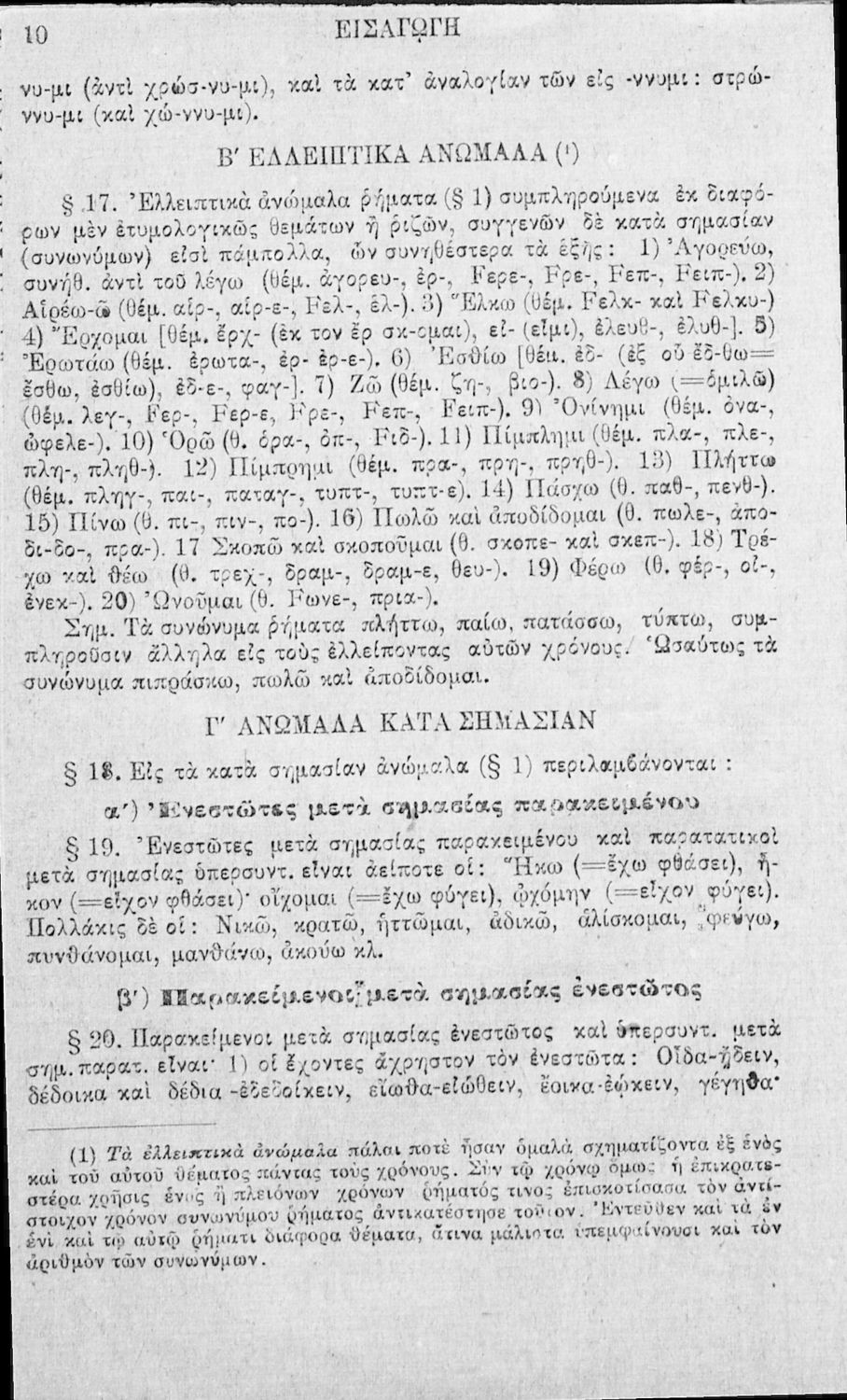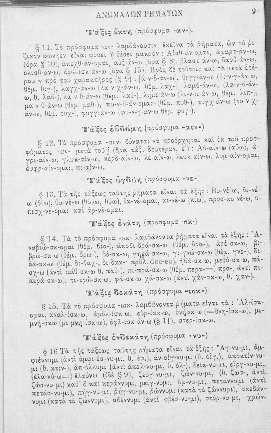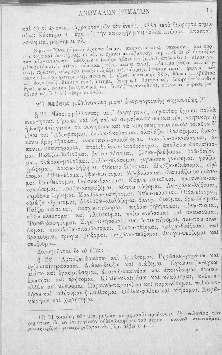Μαθητικό βοήθημα Αρχαίων Ελληνικών για τα Γυμνάσια, Παρθεναγωγεία και Ελληνικά σχολεία το οποίο περιέχει κατάλογο ανωμάλων ρημάτων της Αττικής διαλέκτου.