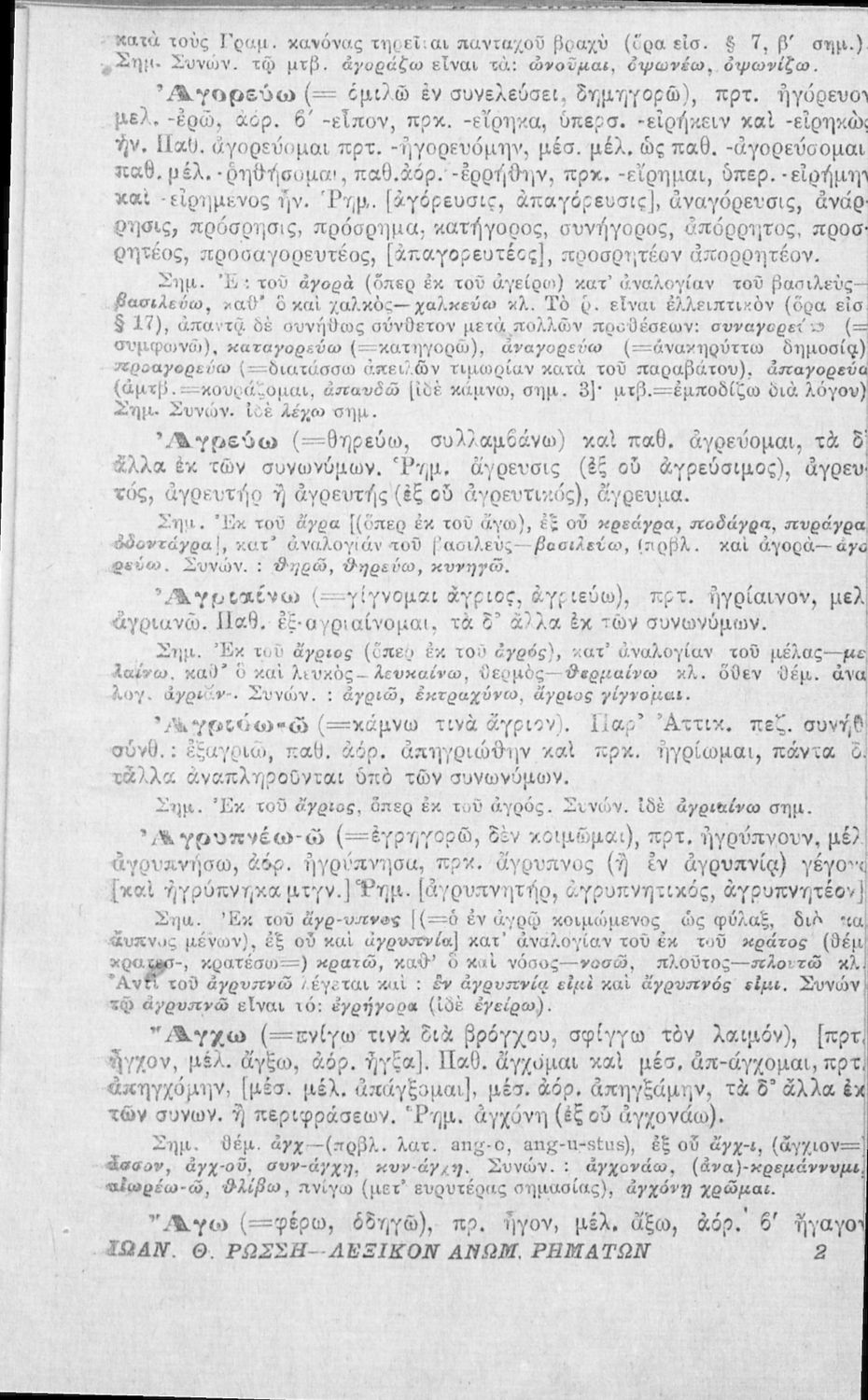 Λεξικόν ανωμάλων ρημάτων της αρχαίας ελληνικής γλώσσης μάλιστα δε της αττικής διαλέκτου μετά ποικίλων και πρωτοτύπων τεχνολογικών σημειώσεων προς χρήσιν των μαθητών των Ελληνικών Σχολείων, Ανωτέρων Παρθεναγωγείων και Γυμνασίων