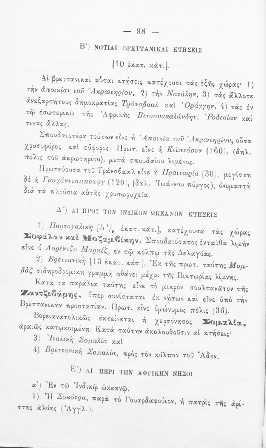 Βαθμίδα εκπαίδευσης: Δευτεροβάθμια Τάξη: Β' Ελληνικού Σχολείου Μάθημα: Γεωγραφία Γλώσσα: Καθαρεύουσα Παρουσίαση περιεχομένου: Σχολικό εγχειρίδιο Γεωγραφίας Β' Ελληνικού Σχολείου που περιλαμβάνει εισαγωγή στη φυσική και μαθηματική γεωγραφία και παρουσιάζει ενδεικτικές χώρες και περιοχές από τις πέντε ηπείρους από γεωμορφολογική, πολιτική και οικονομική σκοπιά. |