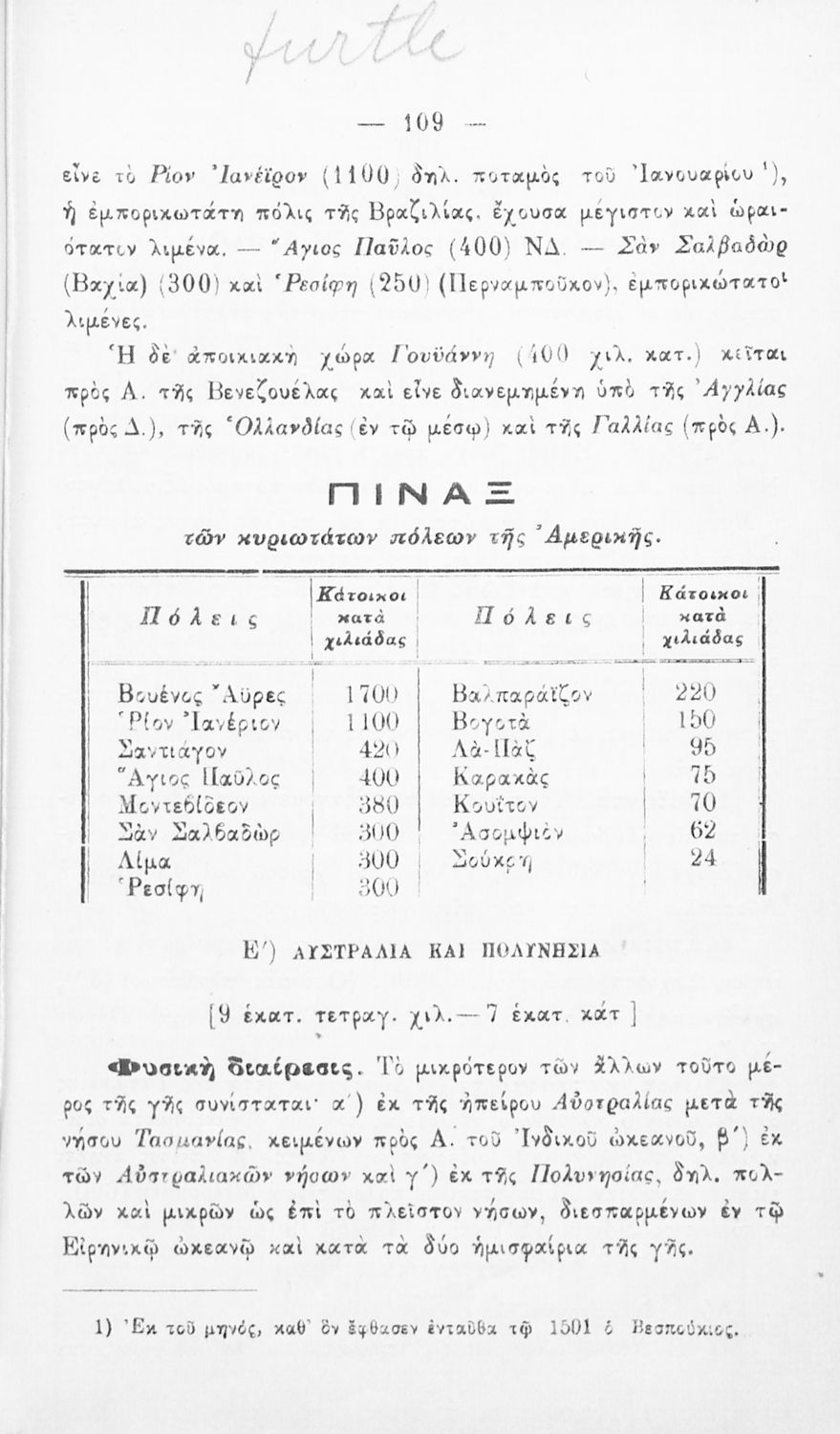 LDR 01452 2200205 4500 035 ## _a02-01983 040 ## _aΕλληνικό Λογοτεχνικό και Ιστορικό Αρχείο 041 ## _ael 100 ## _aΙωάννης Σαρρής 110 ## _a1921 ΣΑΡ 245 0# _aΓεωγραφία προς χρήσιν των μαθητών της Β΄ τάξεως των Ελληνικών Σχολείων η μόνη εγκεκριμένη κατά τον τελευταίον περί διδακτικών βιβλίων νόμον 250 ## _a4η Έκδοση 260 ## _aΑθήνα _bΜιχαήλ Σ. Ζηκάκης _c1921 300 ## _a106 _bΕικόνες (ασπρόμαυρες), Σκίτσα (ασπρόμαυρα) 520 ## _aΣχολικό εγχειρίδιο Γεωγραφίας Β' Ελληνικού Σχολείου που περιλαμβάνει εισαγωγή στη φυσική και μαθηματική γεωγραφία και παρουσιάζει ενδεικτικές χώρες και περιοχές από τις πέντε ηπείρους από γεωμορφολογική, πολιτική και οικονομική σκοπιά. 521 ## _aΒ' Ελληνικού Σχολείου 522 ## _aΕλλάδα 546 ## _aΚαθαρεύουσα 563 ## _aΣκληρό Εξώφυλλο 650 #4 _aΑνθρωπογεωγραφία _aΕμπόριο _aΉπειροι _aΚλίμα _aΠληθυσμός