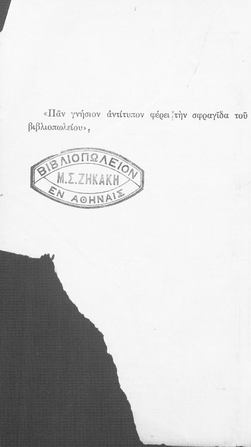 Εκδότης: Μιχαήλ Σ. Ζηκάκης Έτος έκδοσης: 1921 Τόπος έκδοσης: Αθήνα Έκδοση: 4η |