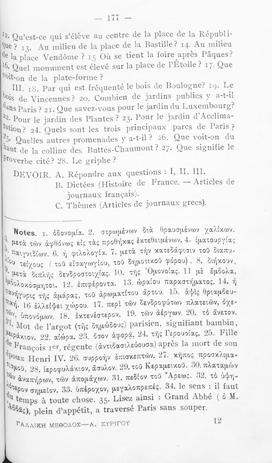 Σχολικό εγχειρίδιο Γαλλικών των Γυμνασίων, Αστικών σχολείων, Παρθεναγωγείων, Διδασκαλείων και Εμπορικών σχολών το οποίο παρουσιάζει τους βασικούς κανόνες γραμματικής μέσα από ασκήσεις και σειρά κειμένων υιοθετώντας της μέθοδο της εποπτικής και πρακτικής διδασκαλίας.