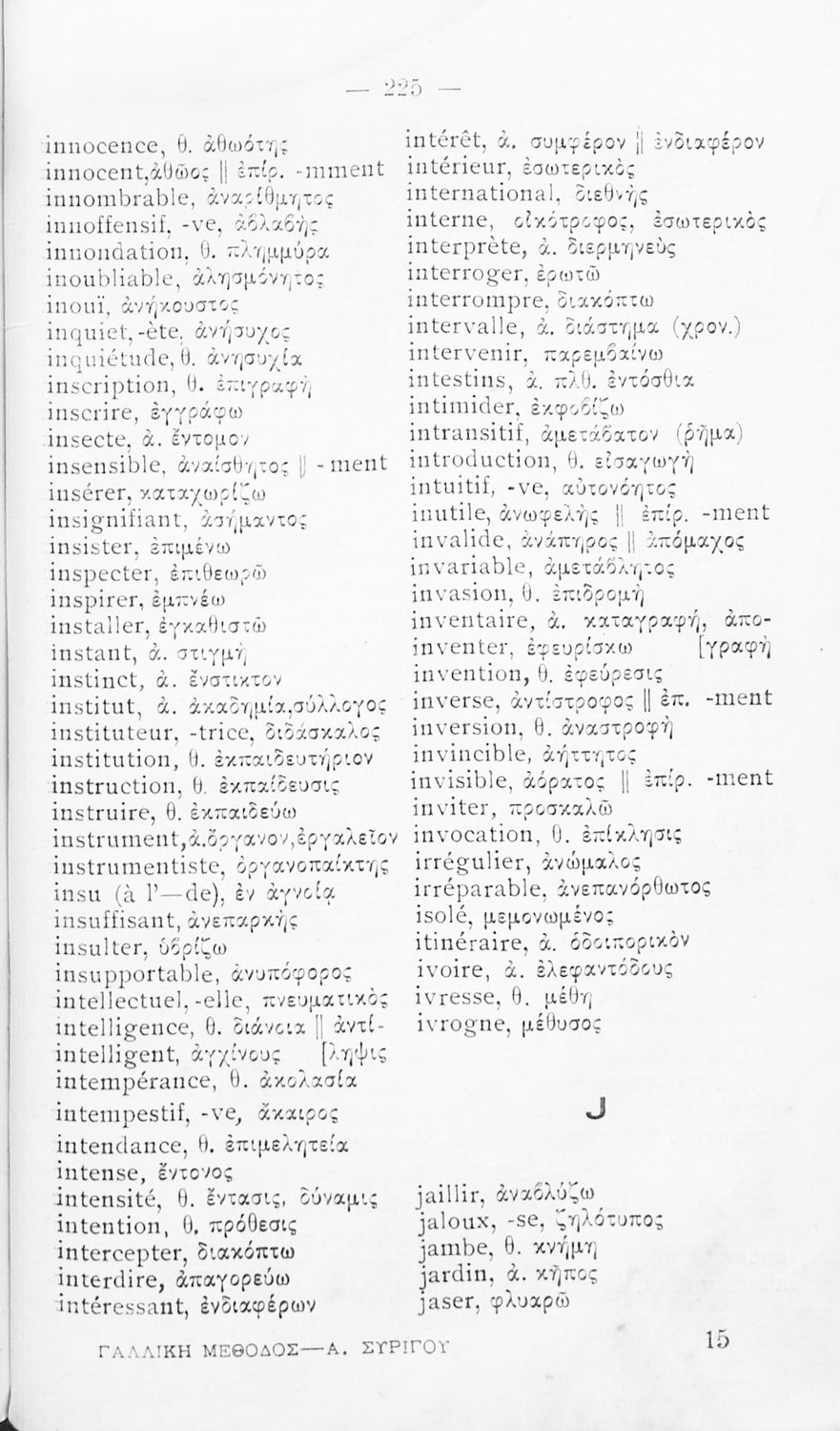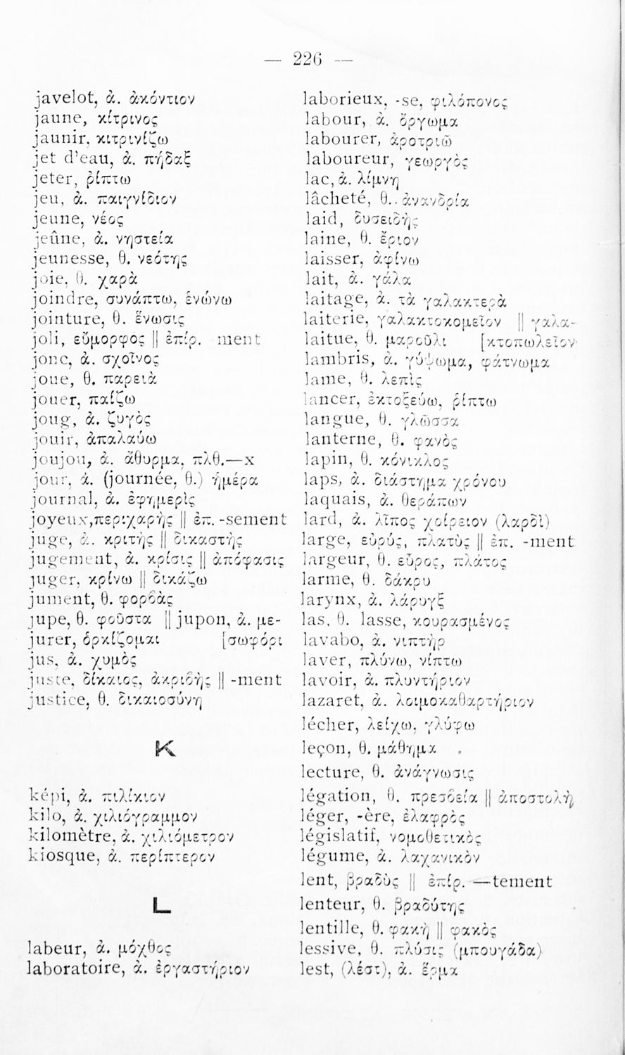 Σχολικό εγχειρίδιο Γαλλικών των Γυμνασίων, Αστικών σχολείων, Παρθεναγωγείων, Διδασκαλείων και Εμπορικών σχολών το οποίο παρουσιάζει τους βασικούς κανόνες γραμματικής μέσα από ασκήσεις και σειρά κειμένων υιοθετώντας της μέθοδο της εποπτικής και πρακτικής διδασκαλίας.
