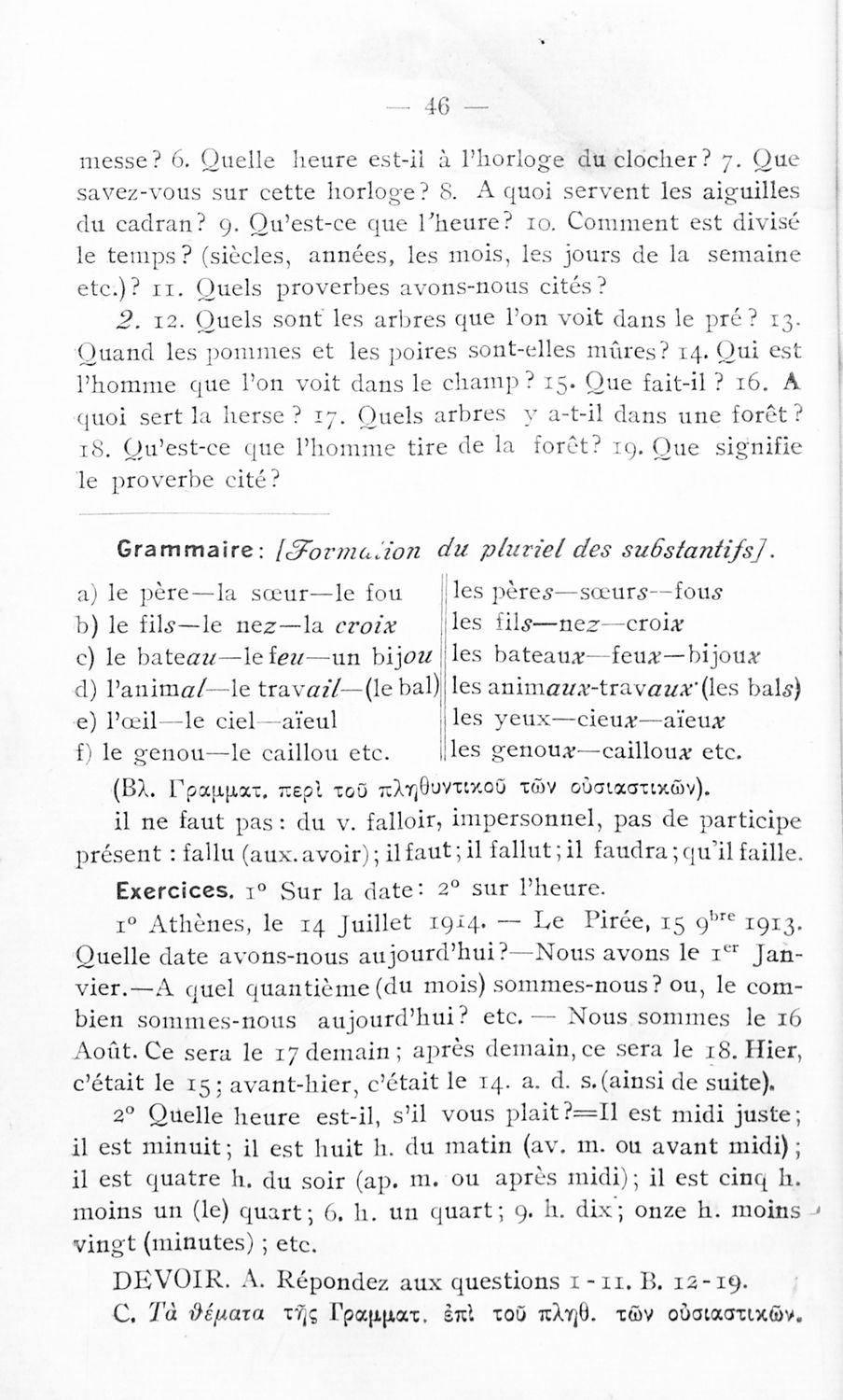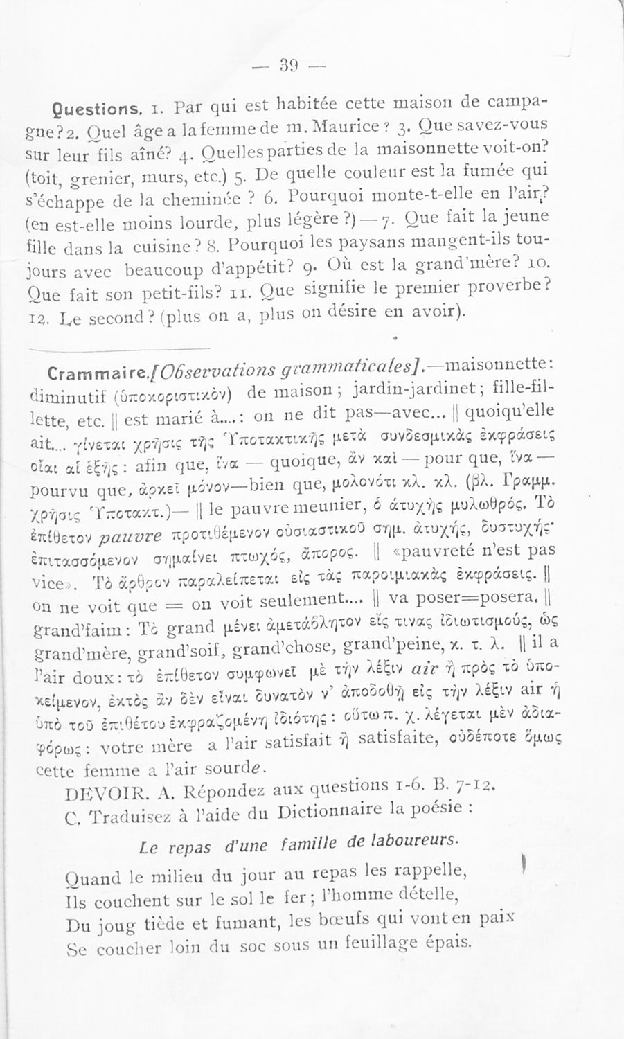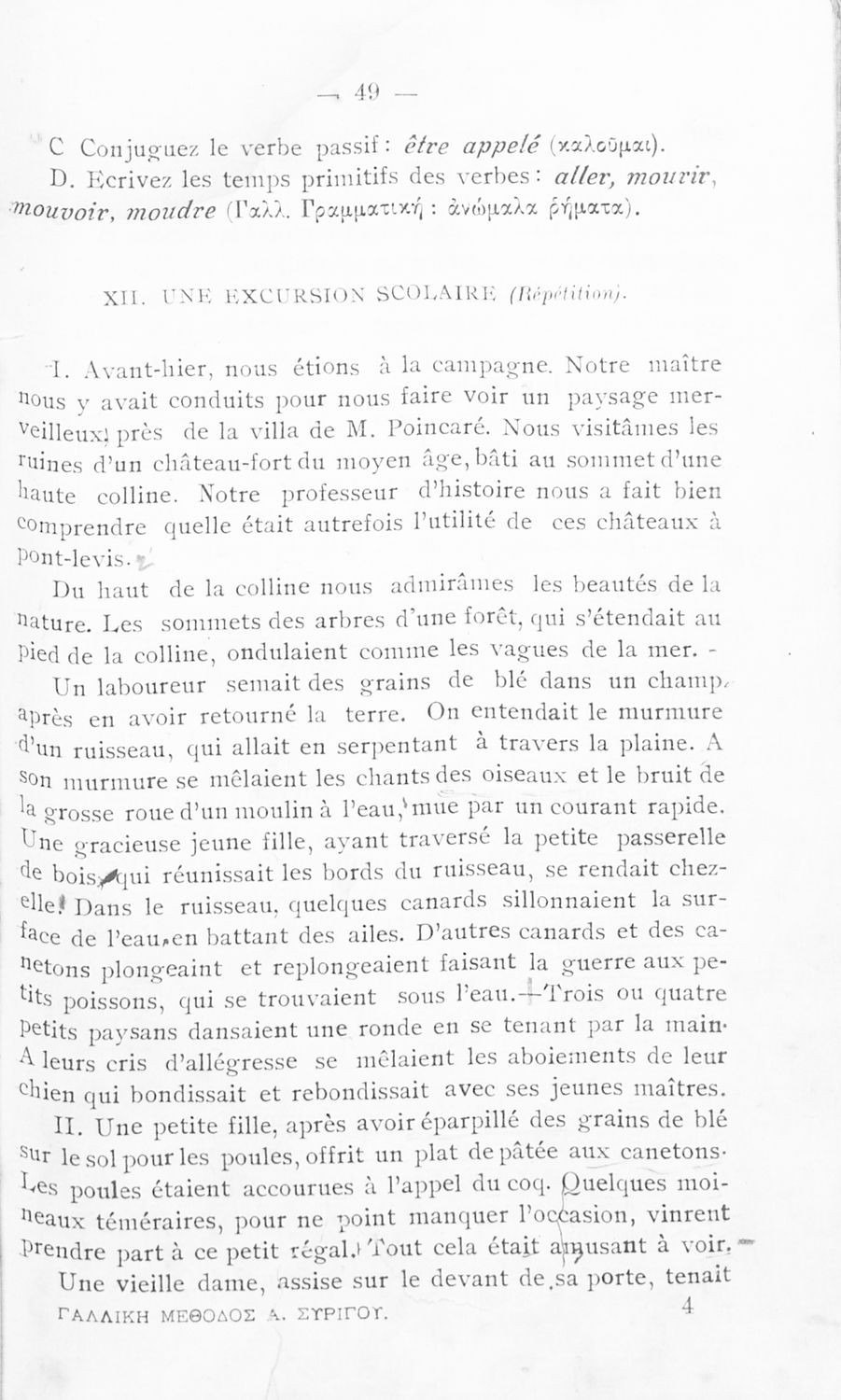 Σχολικό εγχειρίδιο Γαλλικών των Γυμνασίων, Αστικών Σχολείων θηλέων και Διδασκαλείων Δημοτικής Εκπαίδευσης. Κείμενα, ποιήματα, από εποχές και τον κοινωνικό και οικογενειακό βίο, τα οποία συνοδεύονται ασκήσεις ...