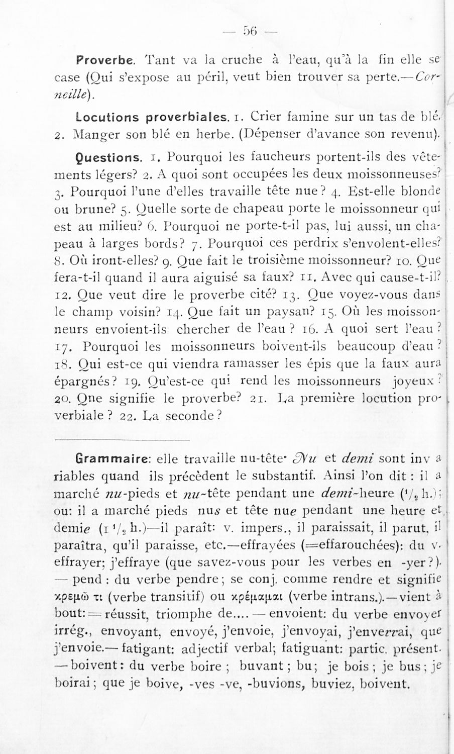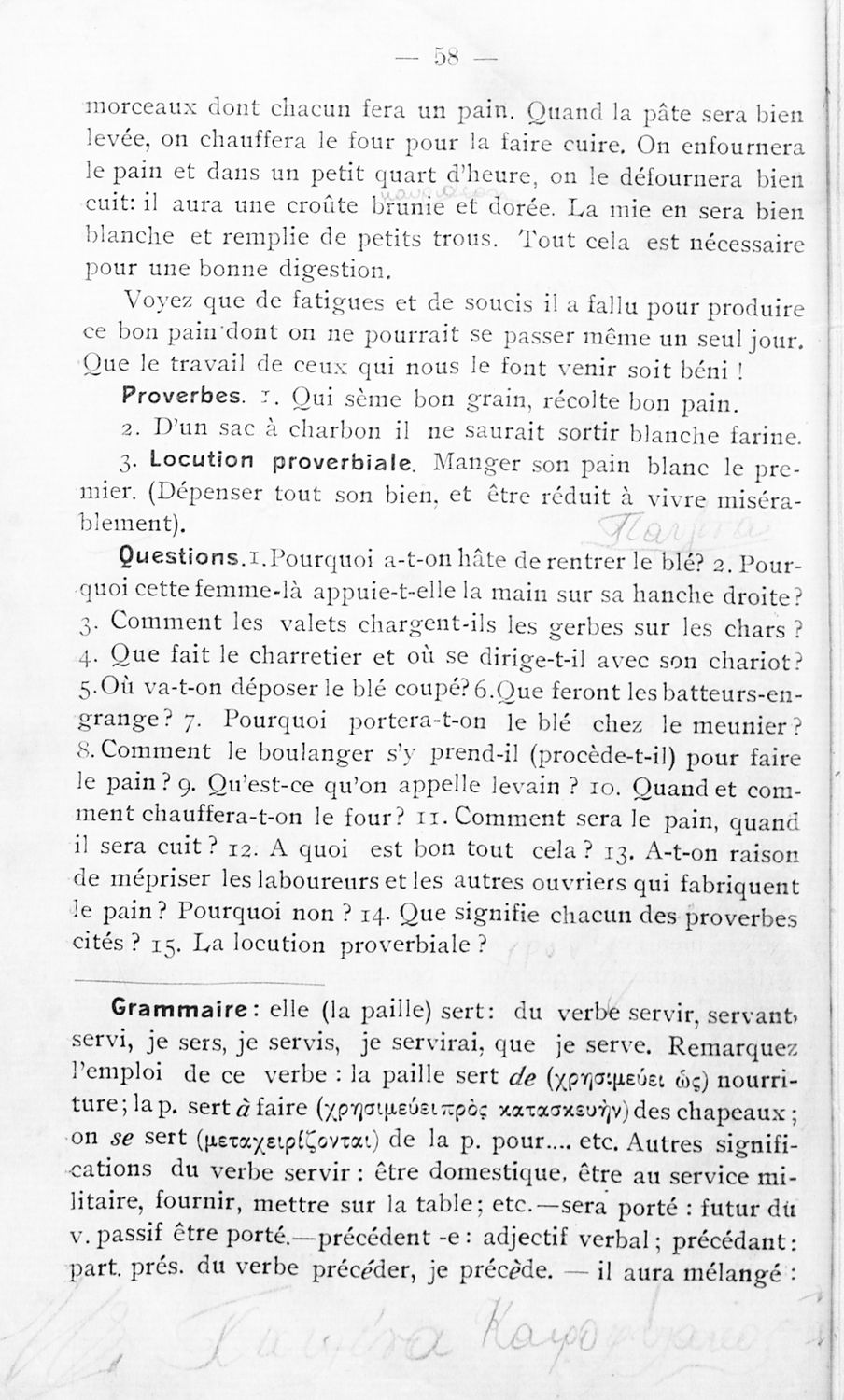 Σχολικό εγχειρίδιο Γαλλικών των Γυμνασίων, Αστικών σχολείων, Παρθεναγωγείων, Διδασκαλείων και Εμπορικών σχολών το οποίο παρουσιάζει τους βασικούς κανόνες γραμματικής μέσα από ασκήσεις και σειρά κειμένων υιοθετώντας της μέθοδο της εποπτικής και πρακτικής διδασκαλίας.