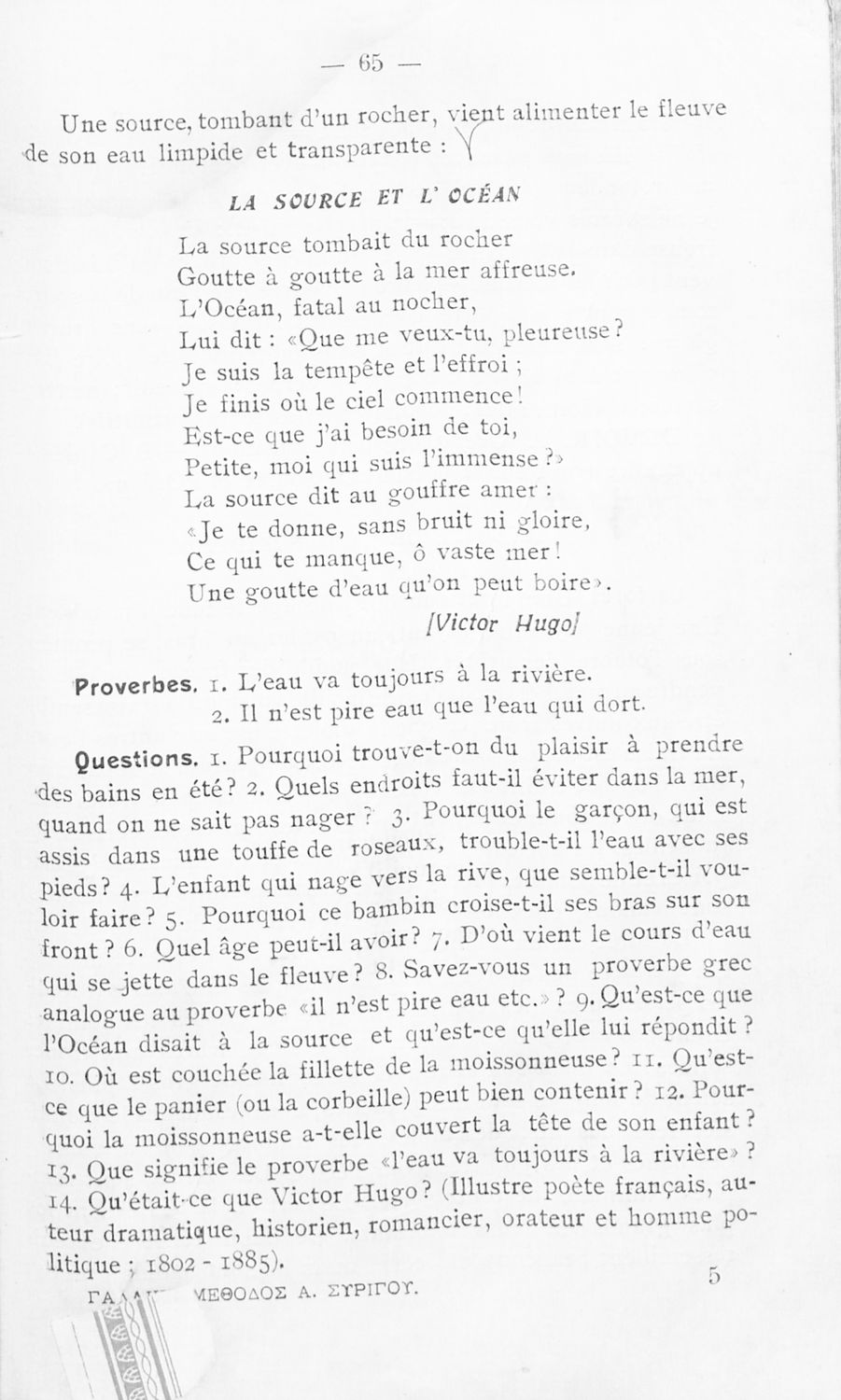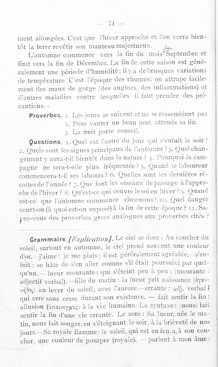 Σχολικό εγχειρίδιο Γαλλικών των Γυμνασίων, Αστικών Σχολείων θηλέων και Διδασκαλείων Δημοτικής Εκπαίδευσης. Κείμενα, ποιήματα, από εποχές και τον κοινωνικό και οικογενειακό βίο, τα οποία συνοδεύονται ασκήσεις ...
