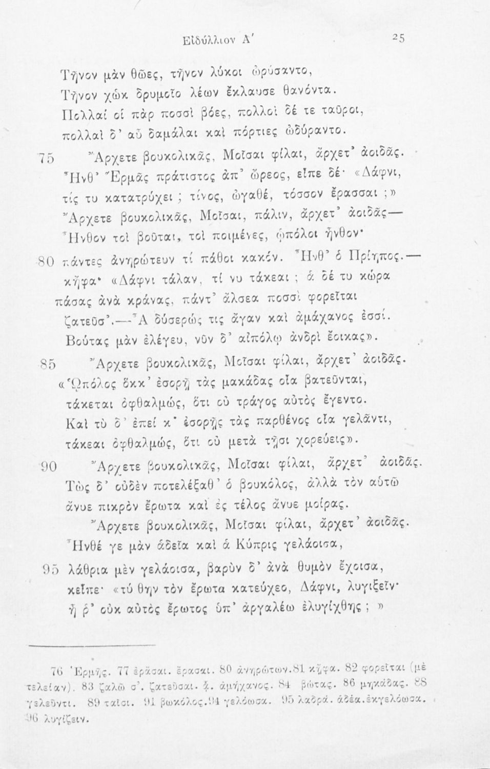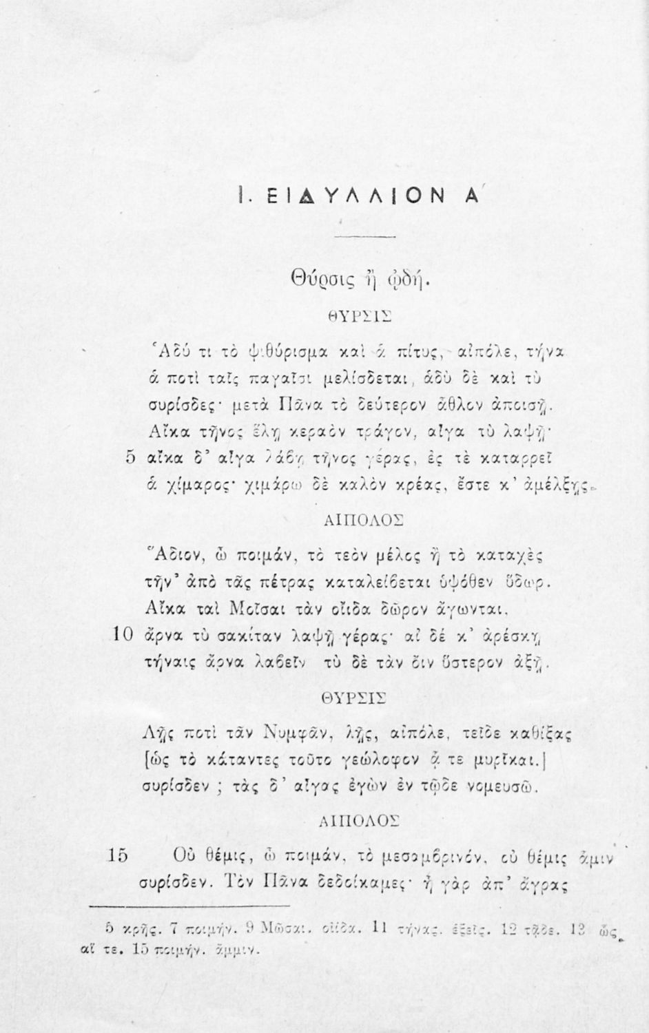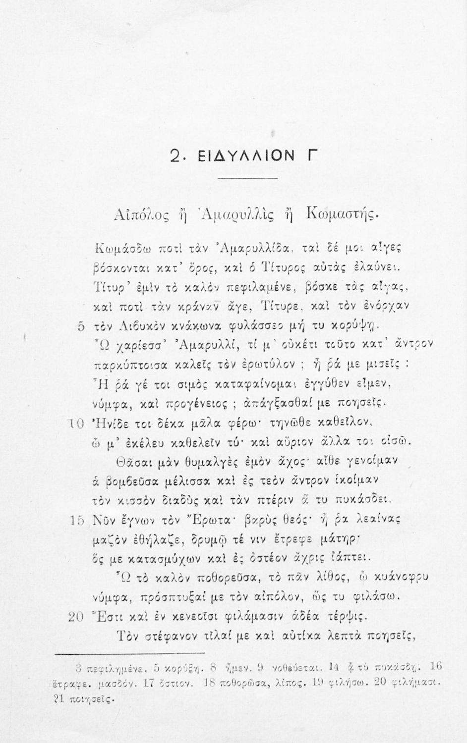 Σχολικό εγχειρίδιο Αρχαίων Ελληνικών Γυμνασίου που περιλαμβάνει εισαγωγή στη βουκολική ποίηση και τη ζωή και το έργο του Θεόκριτου, τα Βουκολικά Ειδύλλια και ερμηνευτικές παρατηρήσεις.