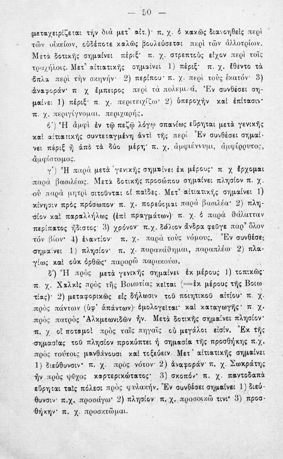 Σχολικό εγχειρίδιο Αρχαίων Ελληνικών για τα Ελληνικά Σχολεία και Παρθεναγωγεία που εστιάζει στα μέρη του λόγου και στην σύνταξή τους.