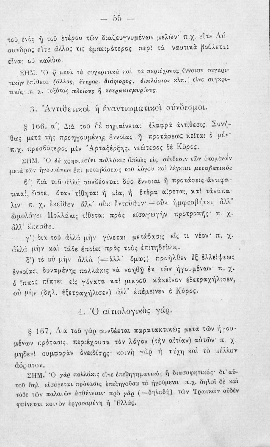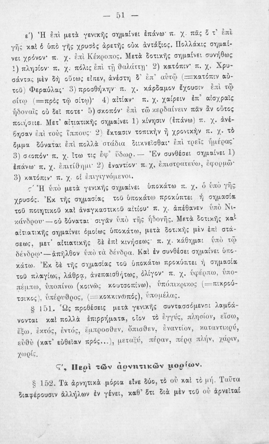 Σχολικό εγχειρίδιο Αρχαίων Ελληνικών για τα Ελληνικά Σχολεία και τα Ανώτερα Παρθεναγωγεία που εξετάζει τα μέρη του λόγου και την σύνταξή τους.
