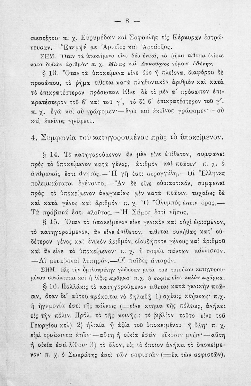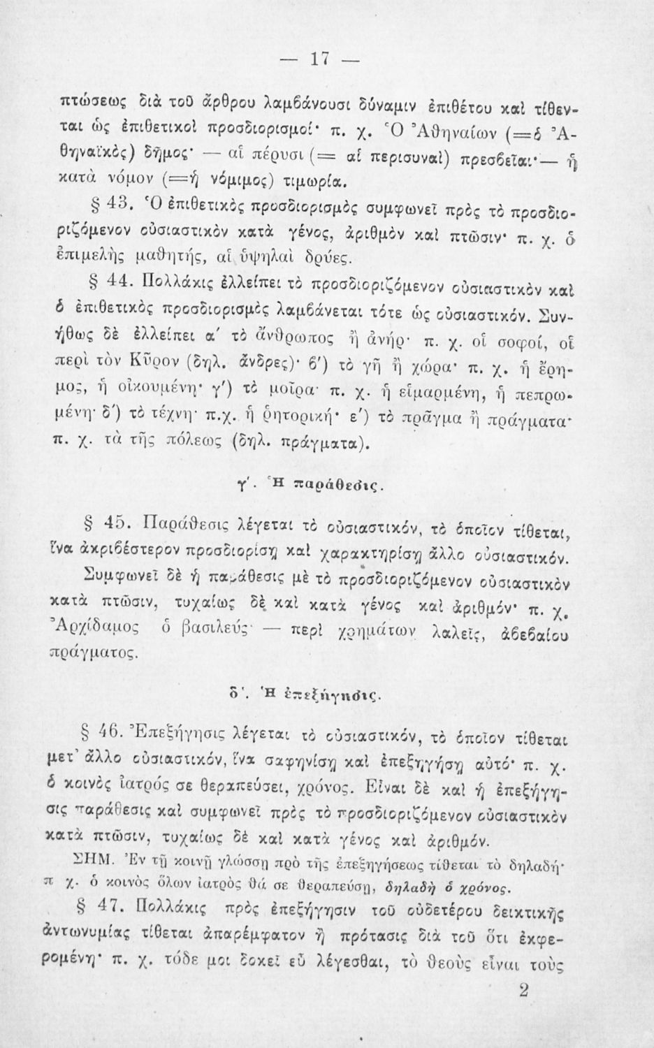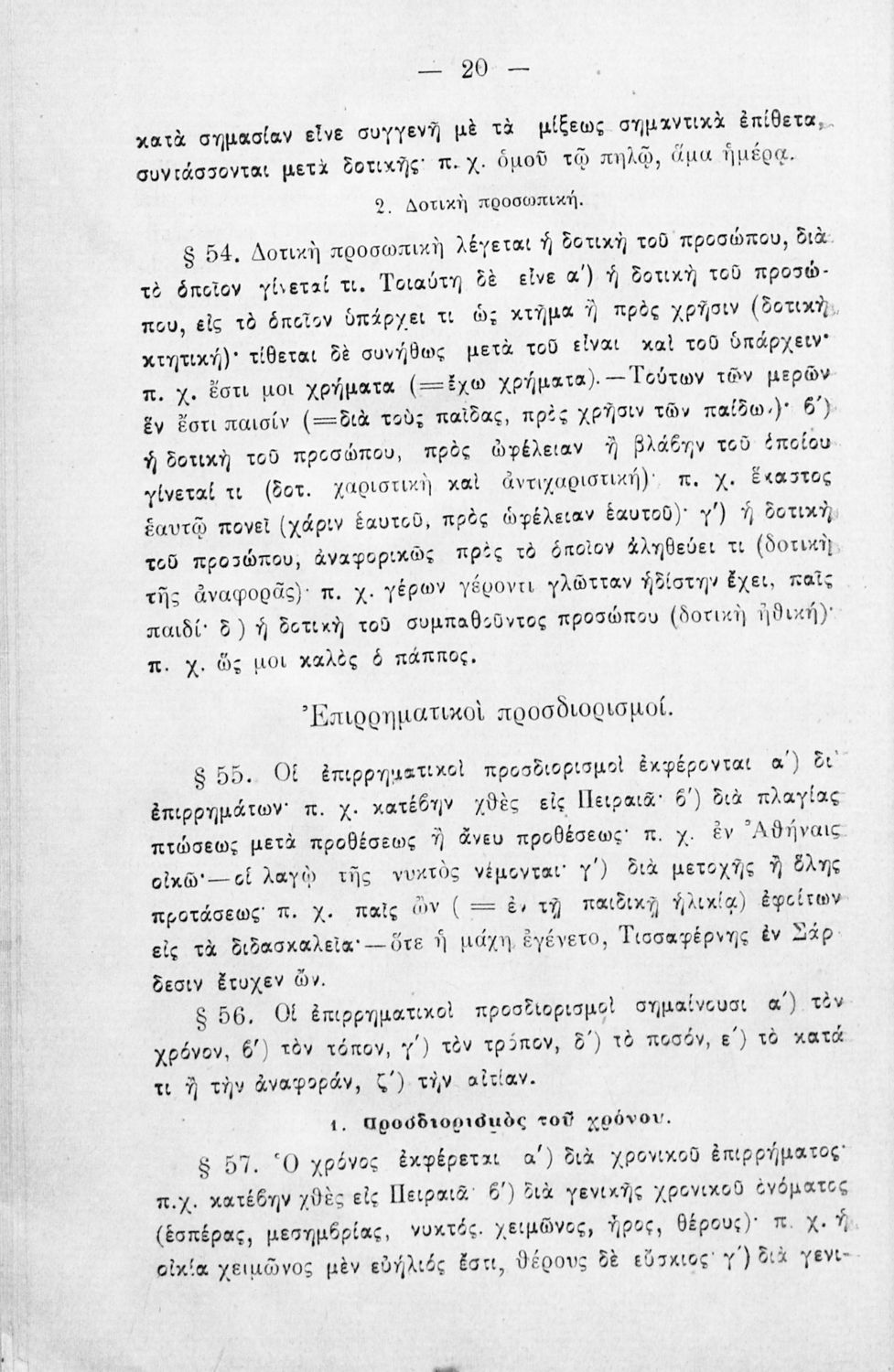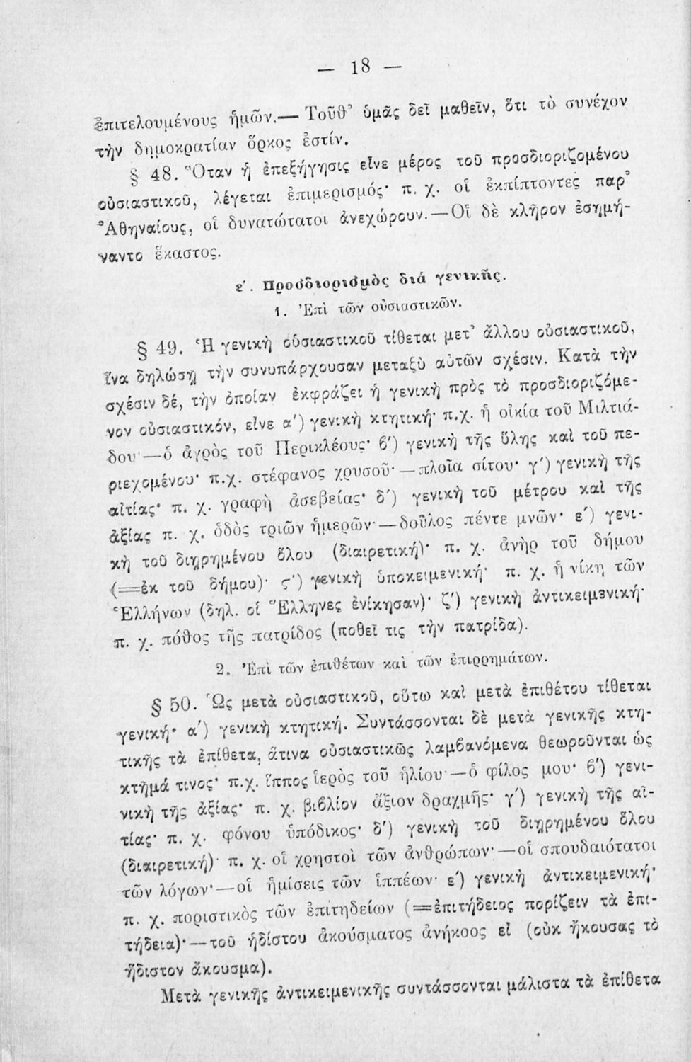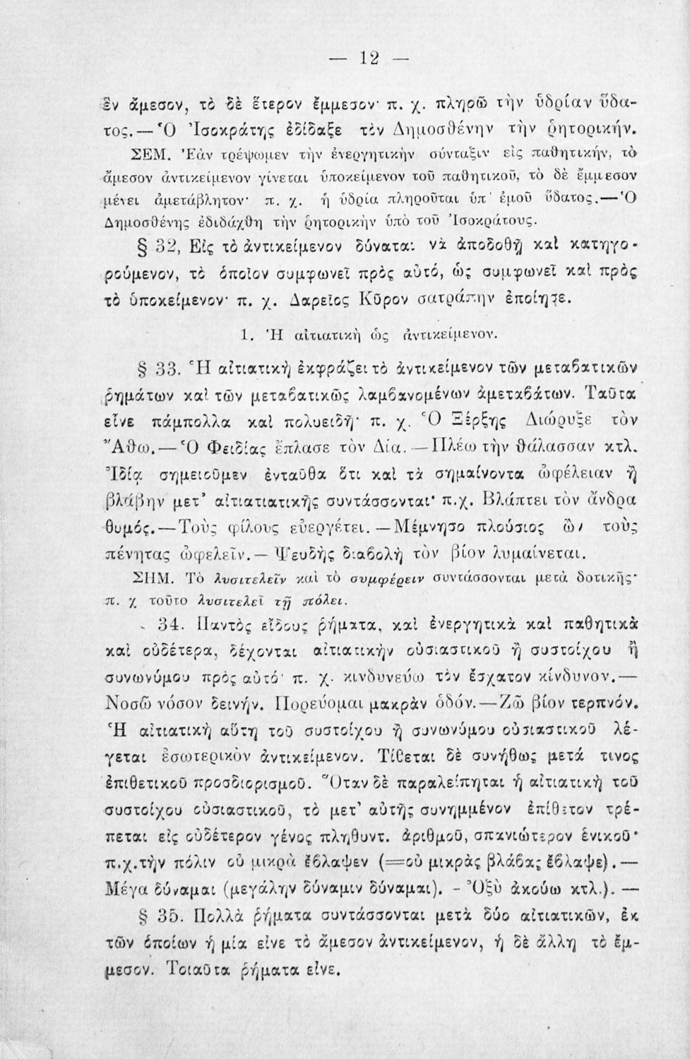 Βαθμίδα εκπαίδευσης: Δευτεροβάθμια Τάξη: Γυμνάσιο Μάθημα: Αρχαία Ελληνικά Γλώσσα: Καθαρεύουσα Παρουσίαση περιεχομένου: Σχολικό εγχειρίδιο Αρχαίων Ελληνικών που εστιάζει στα μέρη του λόγου και στην σύνταξή τους. |