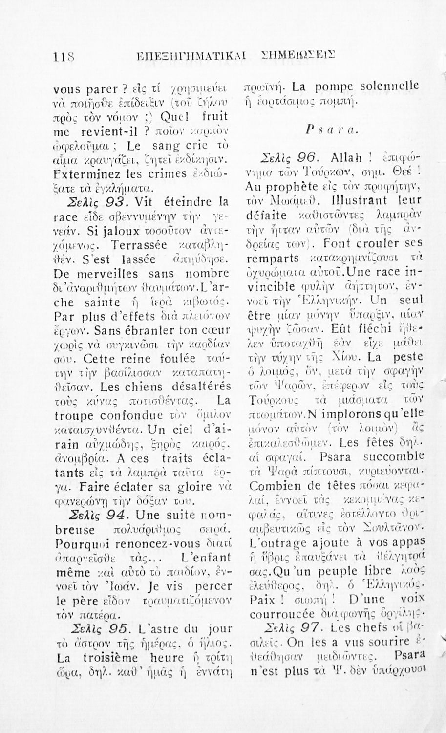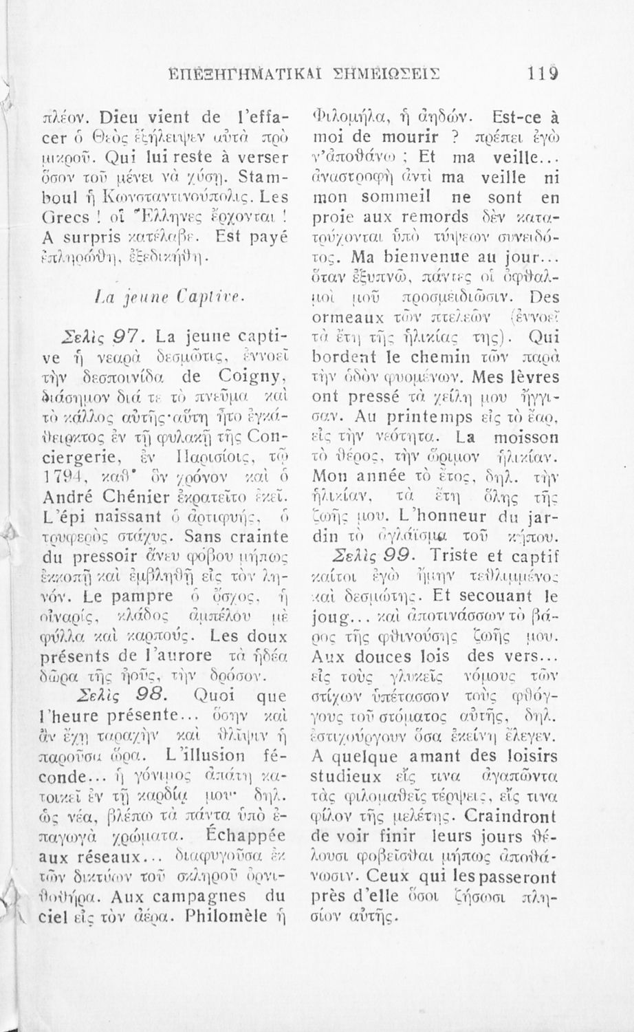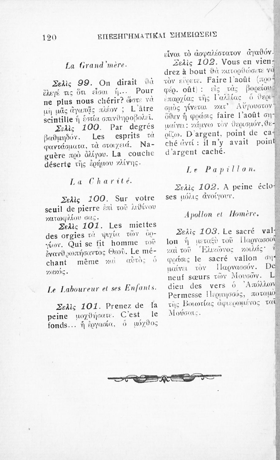 Σχολικό εγχειρίδιο Γαλλικής γλώσσας των τάξεων της Γ΄ Γυμνάσιου, Β΄ Διδασκαλείου Θηλέων και Α' Διδασκαλείου Αρρένων που περιέχει σειρά ποιημάτων και πεζών Γάλλων συγγραφέων, σύντομα βιογραφικά σημειώματα, ερμηνευτικές και γλωσσικές σημειώσεις και λεξιλόγιο.
