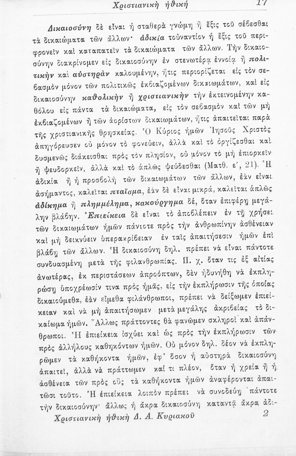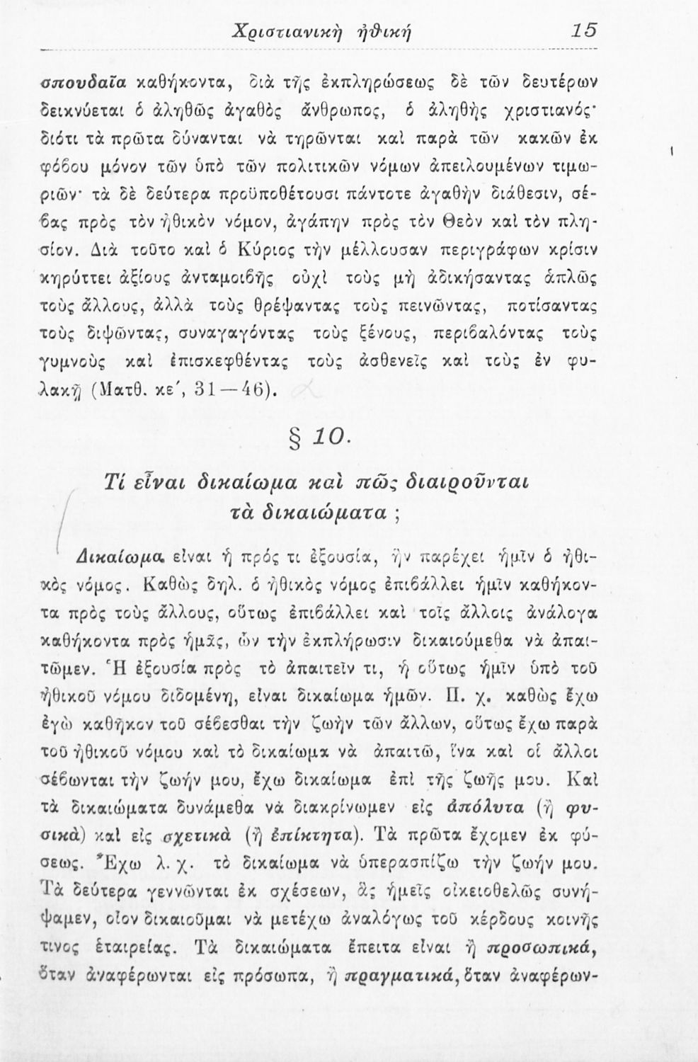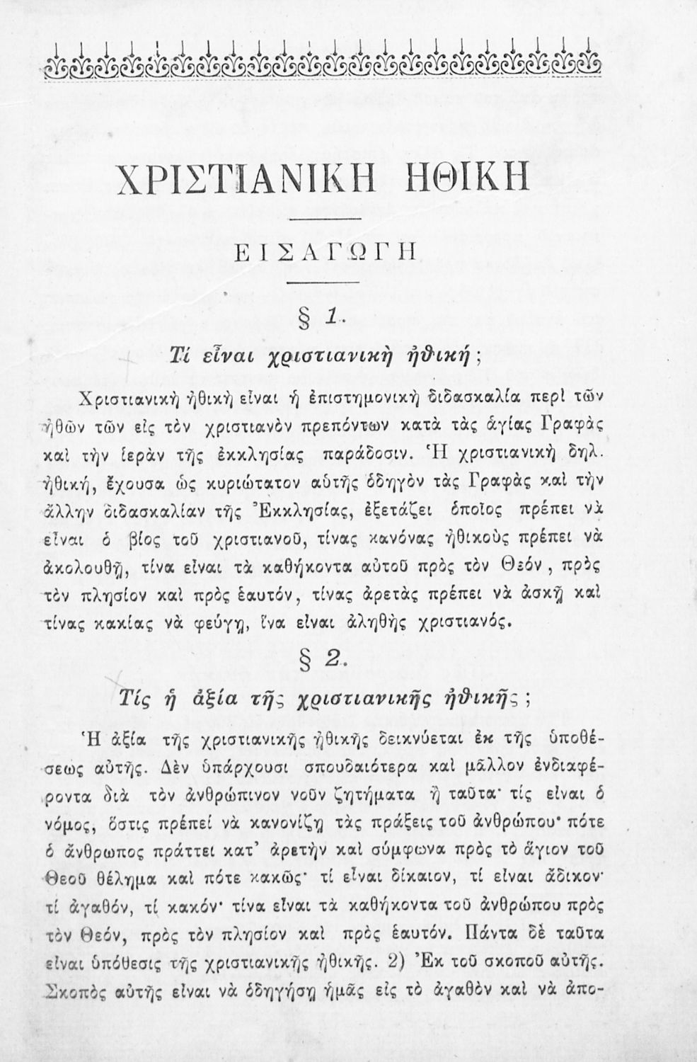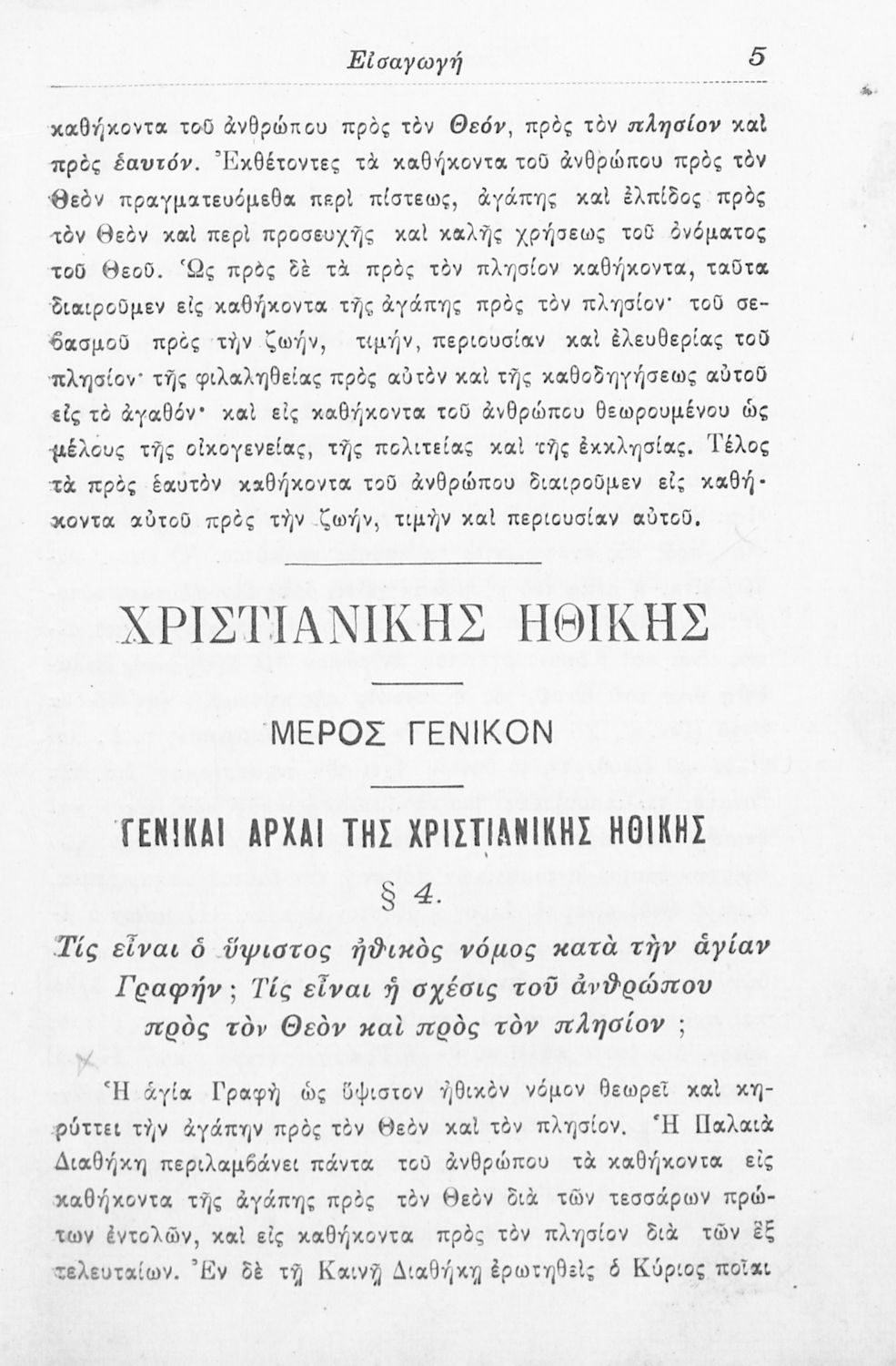 Βαθμίδα εκπαίδευσης: Δευτεροβάθμια Τάξη: Γυμνάσιο Μάθημα: Θρησκευτικά Γλώσσα: Καθαρεύουσα Παρουσίαση περιεχομένου: Σχολικό εγχειρίδιο Θρησκευτικών για τα Γυμνάσια που εστιάζει στη χριστιανική ηθική και αναλύει τα καθήκοντα του ανθρώπου προς τον Θεό, τους άλλους ανθρώπους και τον εαυτό του. |