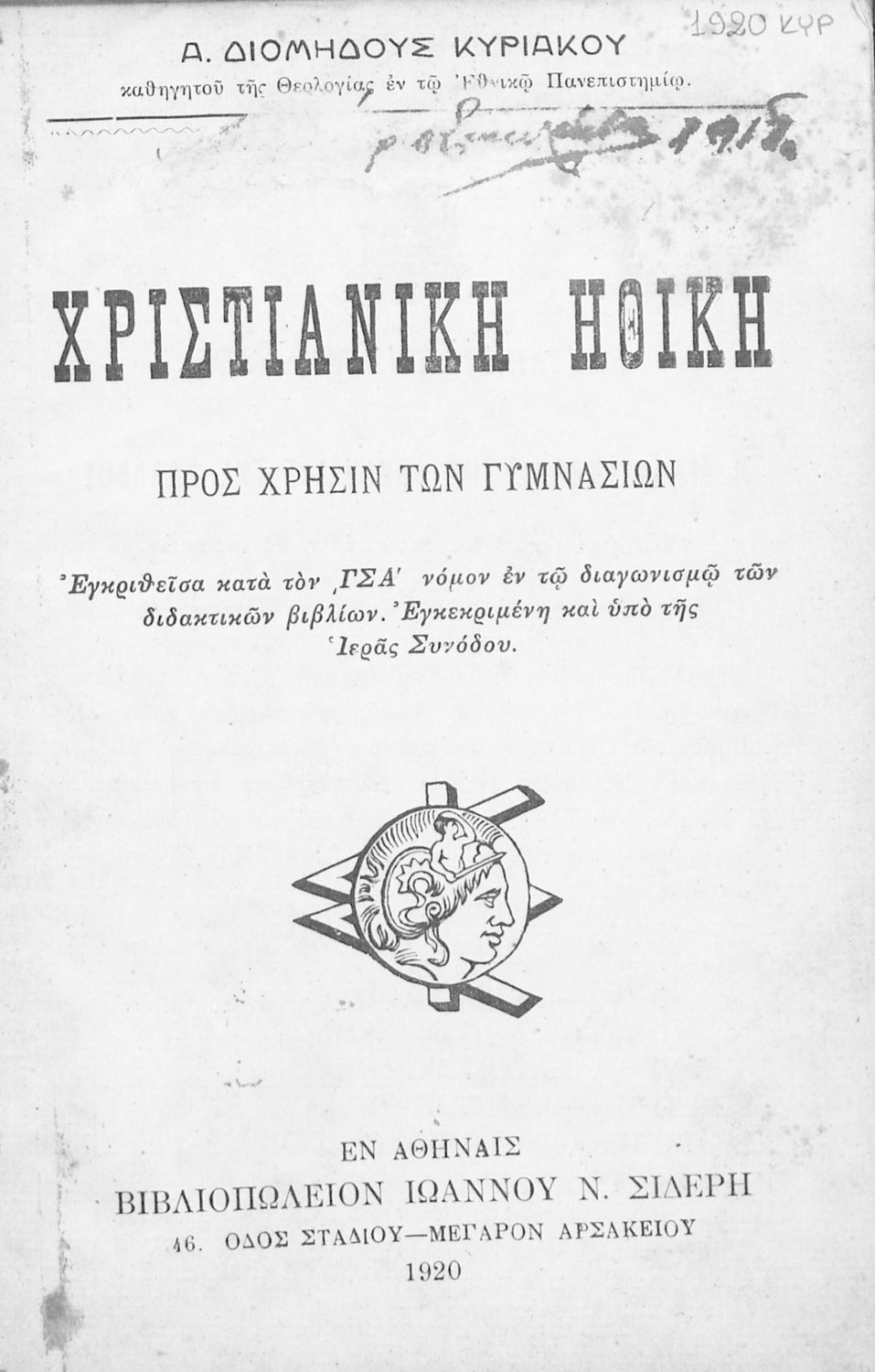 Εκδότης: Ιωάννης Ν. Σιδέρης Έτος έκδοσης: 1920 Τόπος έκδοσης: Αθήνα |