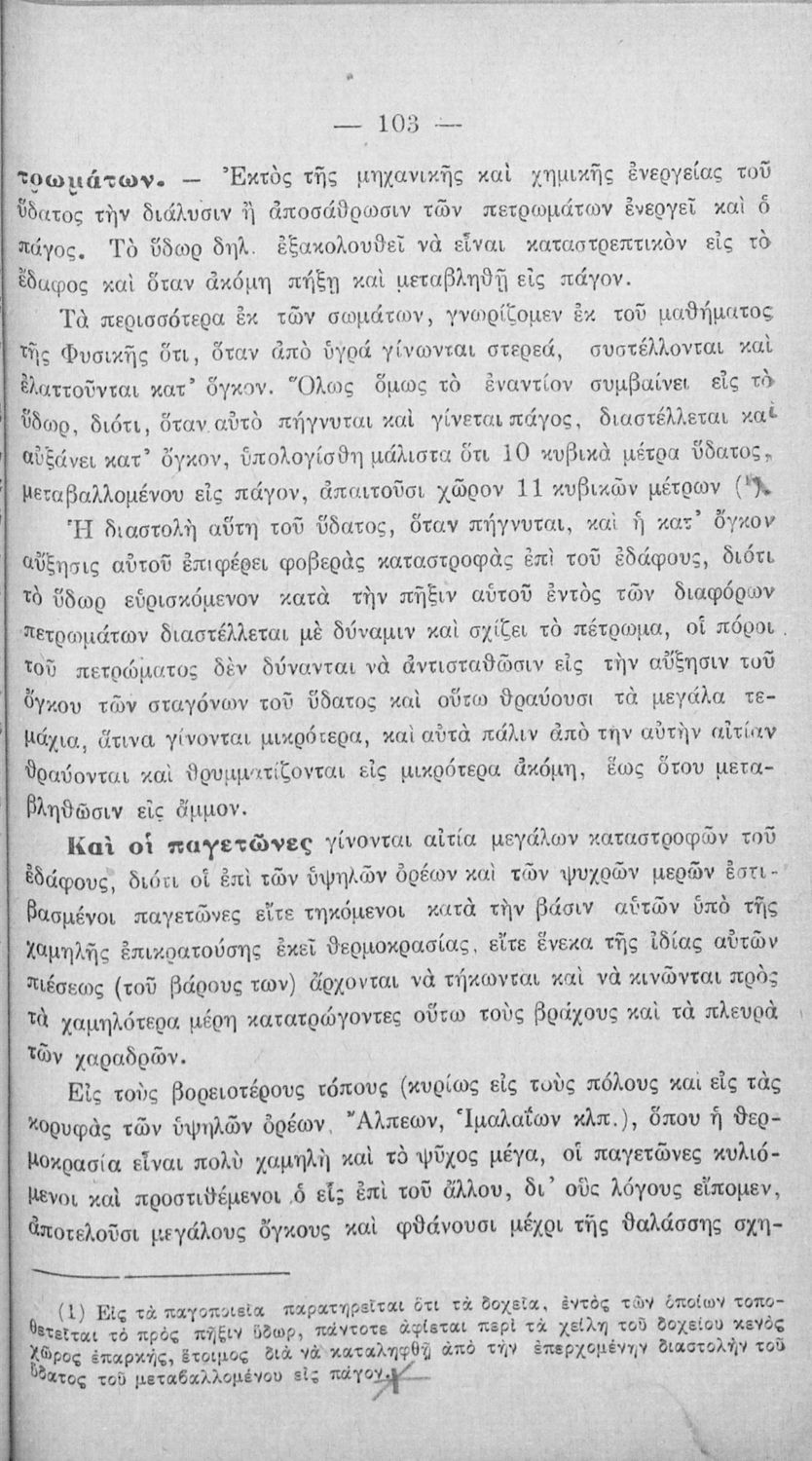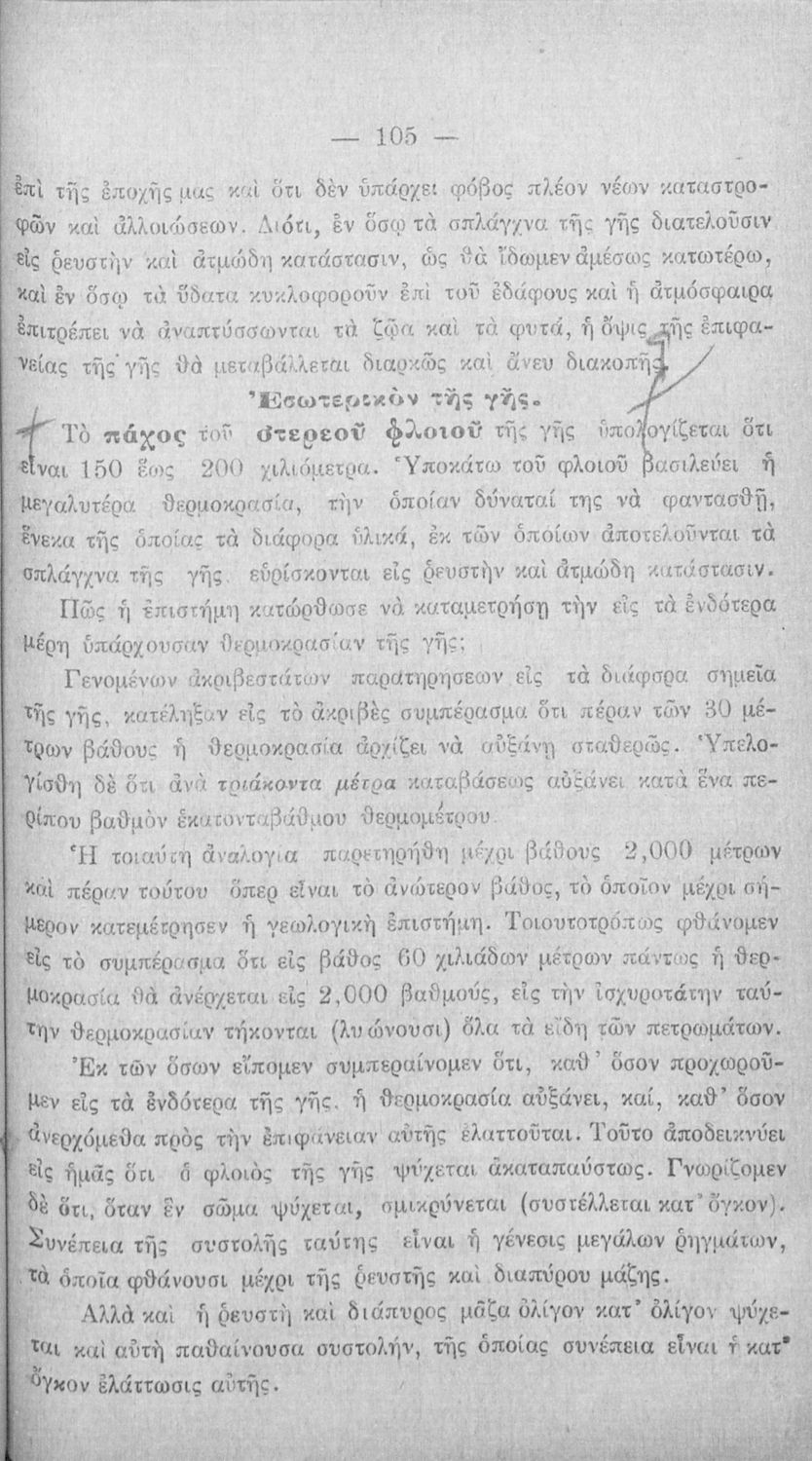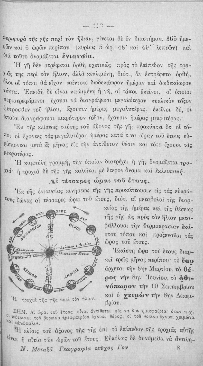 Σχολικό εγχειρίδιο Γεωγραφίας για τις Ε΄ και ΣΤ΄ Δημοτικού που περιλαμβάνει στοιχεία μαθηματικής και φυσικής γεωγραφίας, γεωλογίας και κοσμογραφίας, και εξετάζει την Ελλάδα και ενδεικτικές χώρες από τις πέντε ηπείρους. Περιέχει και αναφορά στις "αλύτρωτες ελληνικές χώρες" στις οποίες περιλαμβάνει την Σερβική και Βουλγαρική Μακεδονία, τη Βόρεια Ήπειρο, τη Θράκη, τη Μικρά Ασία και την Κύπρο.