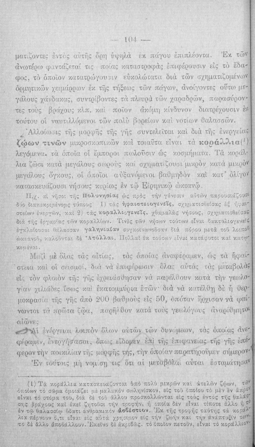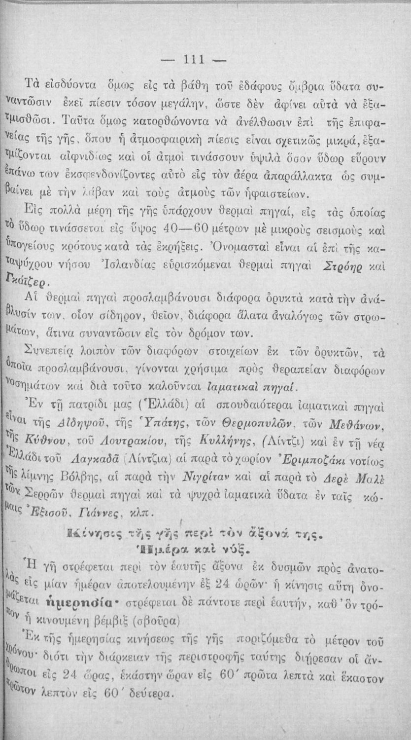Σχολικό εγχειρίδιο Γεωγραφίας για τα Παρθεναγωγεία και τα Ελληνικά Σχολεία που περιλαμβάνει εισαγωγή στη φυσική, μαθηματική και πολιτική γεωγραφία και εξετάζει την Ελλάδα και ενδεικτικές χώρες και περιοχές από