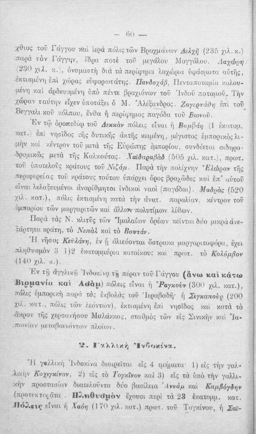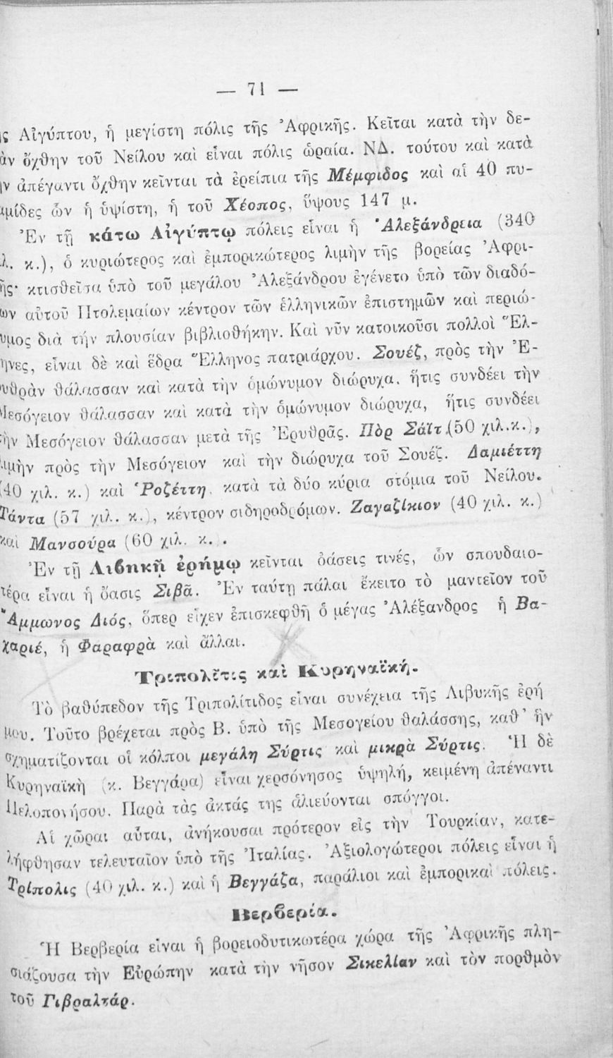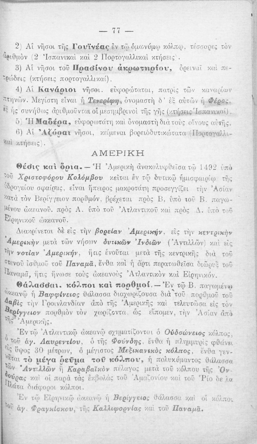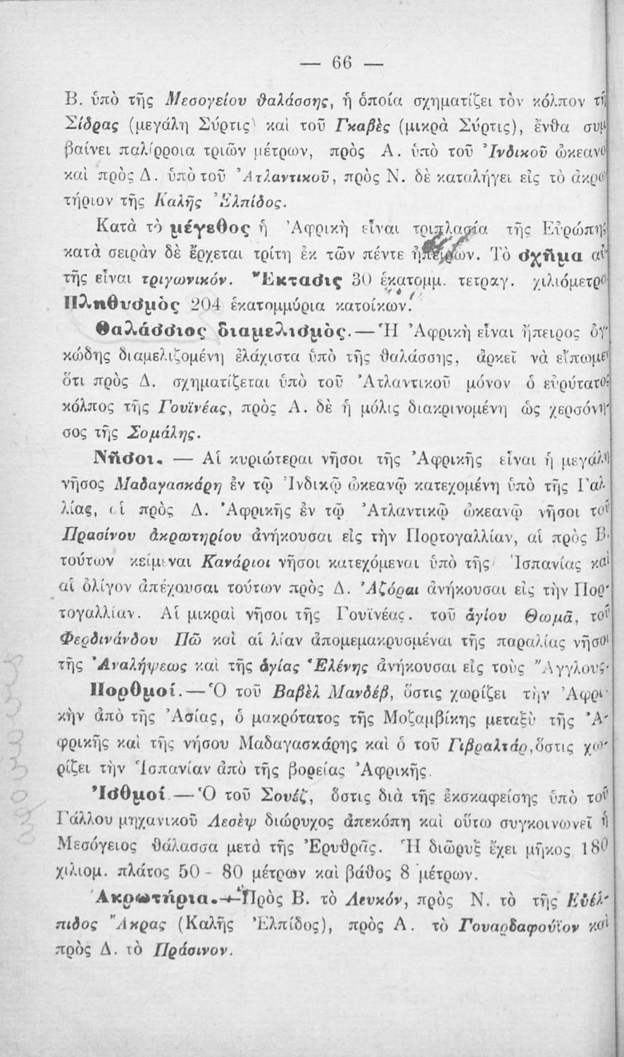 Σχολικό εγχειρίδιο Γεωγραφίας για τα Παρθεναγωγεία και τα Ελληνικά Σχολεία που περιλαμβάνει εισαγωγή στη φυσική, μαθηματική και πολιτική γεωγραφία και εξετάζει την Ελλάδα και ενδεικτικές χώρες και περιοχές από