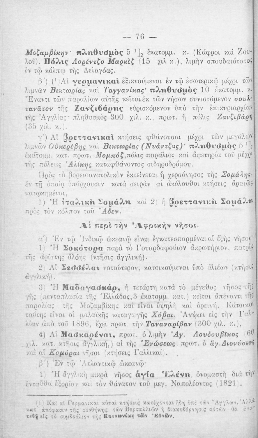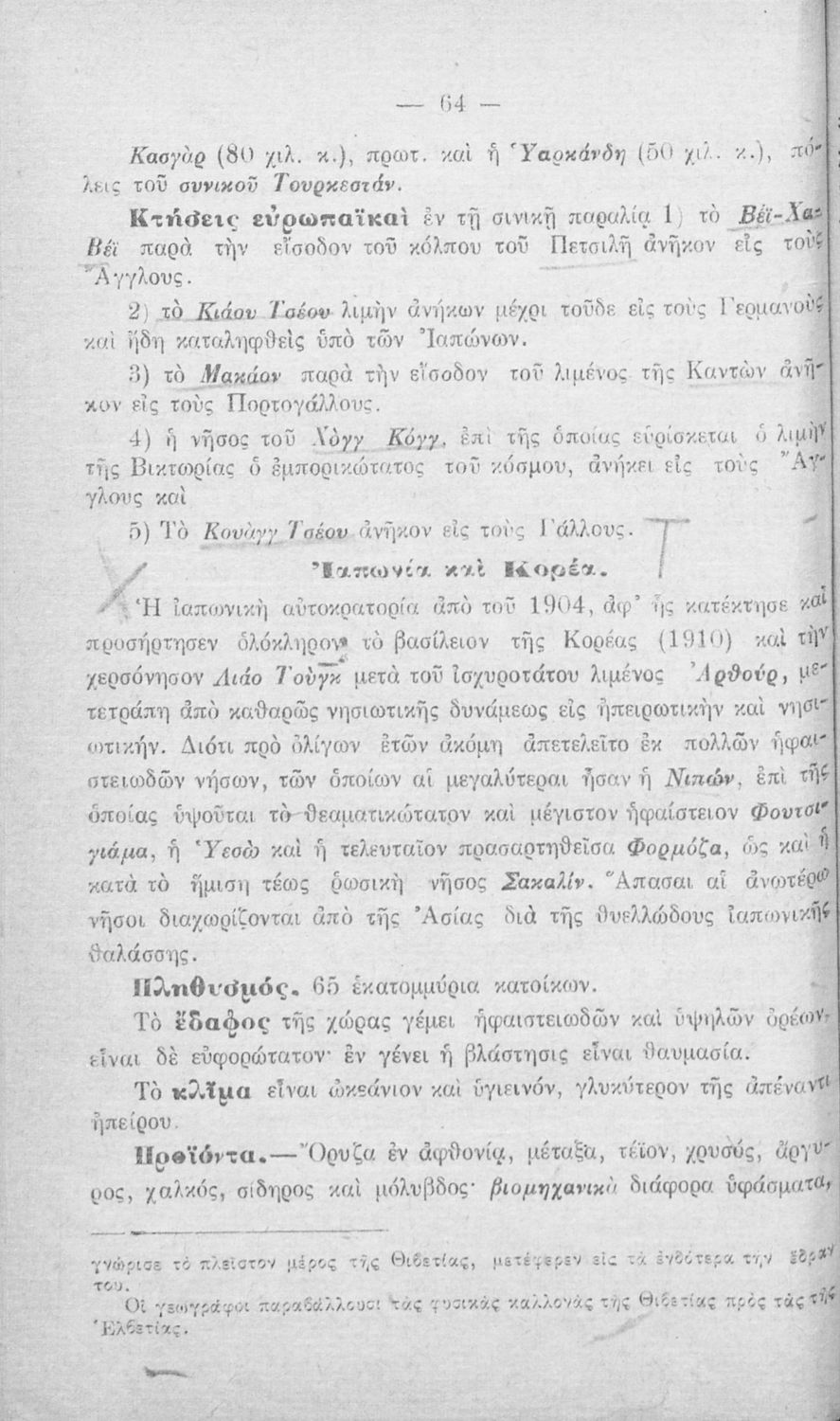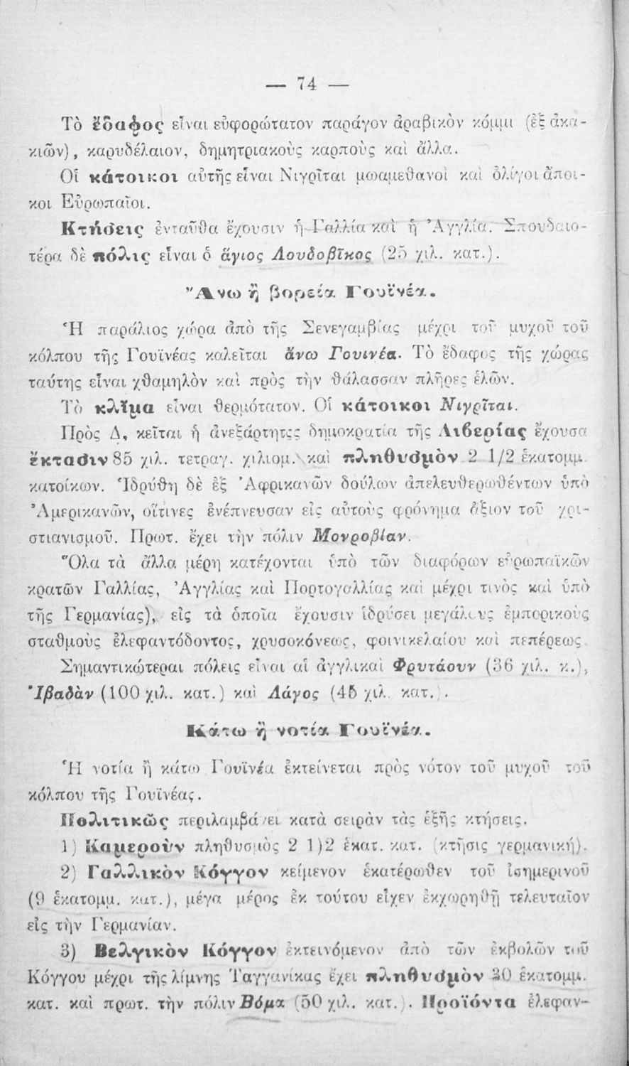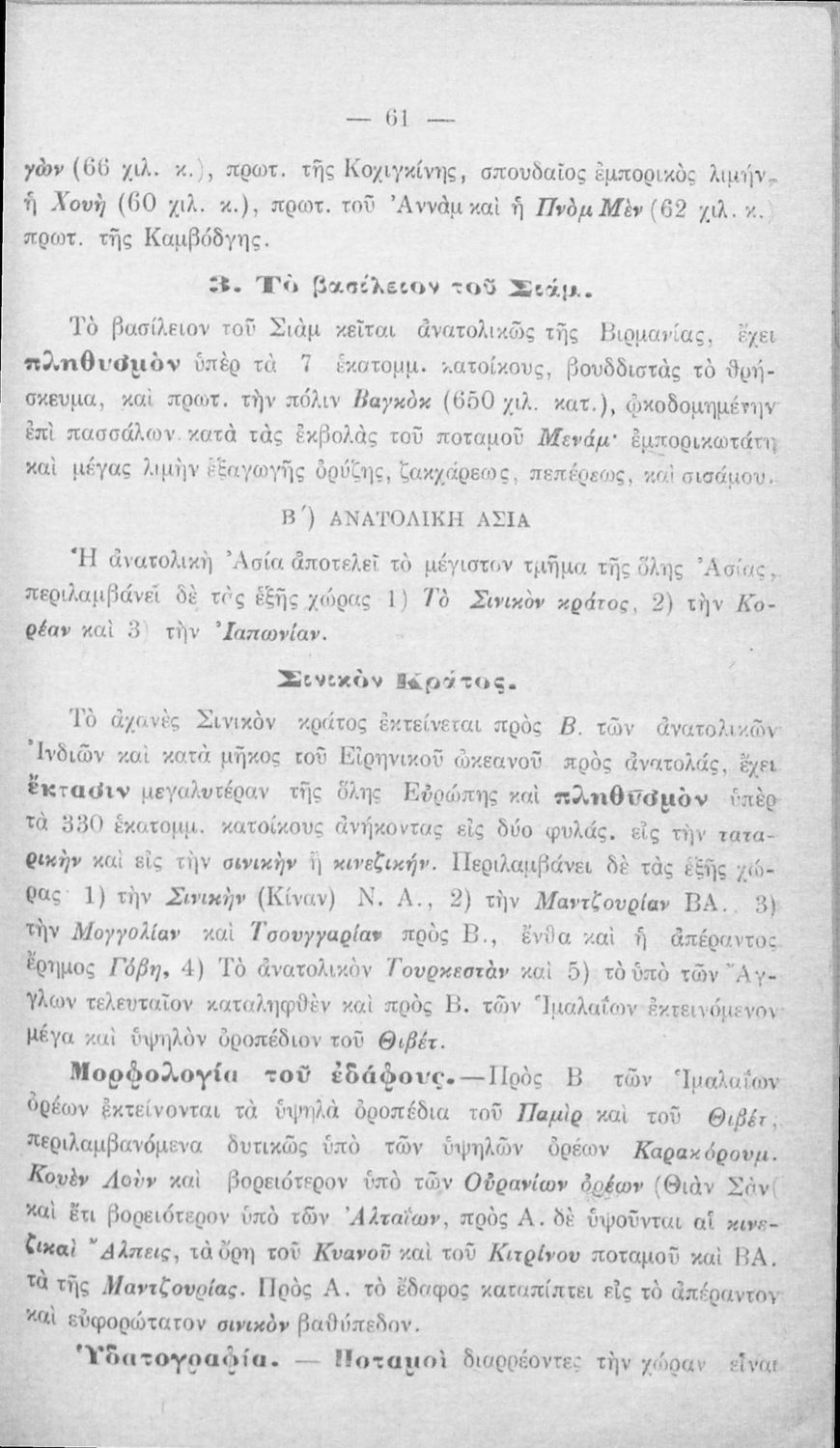 Σχολικό εγχειρίδιο Γεωγραφίας για τα Παρθεναγωγεία και τα Ελληνικά Σχολεία που περιλαμβάνει εισαγωγή στη φυσική, μαθηματική και πολιτική γεωγραφία και εξετάζει την Ελλάδα και ενδεικτικές χώρες και περιοχές από