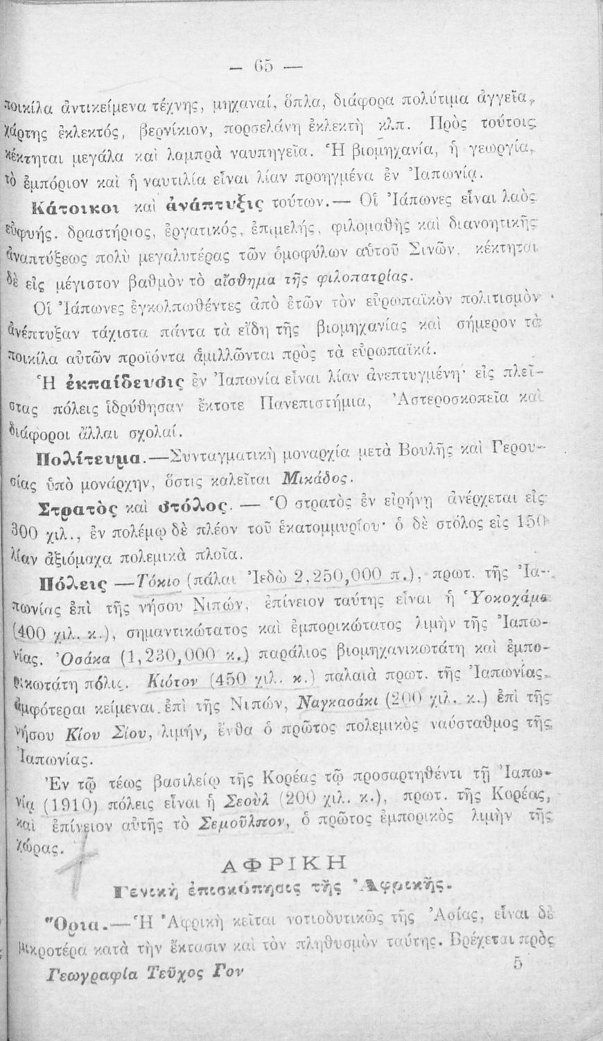 Γεωγραφία, Φυσική και Πολιτική εγκεκριμένη κατά τον ΒΤΓ΄ νόμον, Τεύχος Γ΄, προς χρήσιν των μαθητών της Ε΄ και ΣΤ΄ τάξεως των πλήρων Δημοτικών σχολείων αμφοτέρων των φύλων, συνταχθείσα κατά το νέον αναλυτικόν πρόγραμμα του Υπουργείου των Εκκλησιαστικών και της Δημοσίας Εκπαιδεύσεως