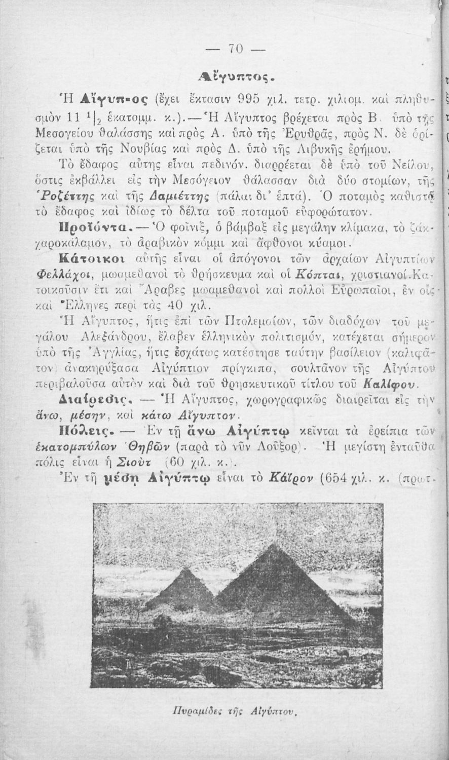 Σχολικό εγχειρίδιο Γεωγραφίας για τις Ε΄ και ΣΤ΄ Δημοτικού που περιλαμβάνει στοιχεία μαθηματικής και φυσικής γεωγραφίας, γεωλογίας και κοσμογραφίας, και εξετάζει την Ελλάδα και ενδεικτικές χώρες από τις πέντε ηπείρους. Περιέχει και αναφορά στις "αλύτρωτες ελληνικές χώρες" στις οποίες περιλαμβάνει την Σερβική και Βουλγαρική Μακεδονία, τη Βόρεια Ήπειρο, τη Θράκη, τη Μικρά Ασία και την Κύπρο.