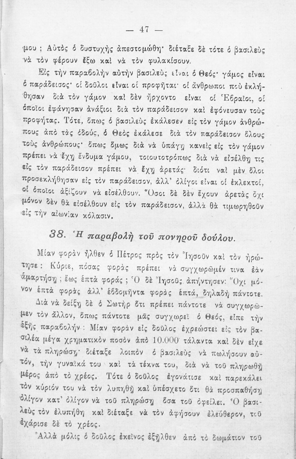 Σχολικό εγχειρίδιο Θρησκευτικών για τα Ελληνικά σχολεία και Παρθεναγωγεία που συνιστά μία εξιστόρηση της Καινής Διαθήκης από τη γέννηση της Θεοτόκου ως την ανάληψη του Χριστού και τη δράση των Αποστόλων.