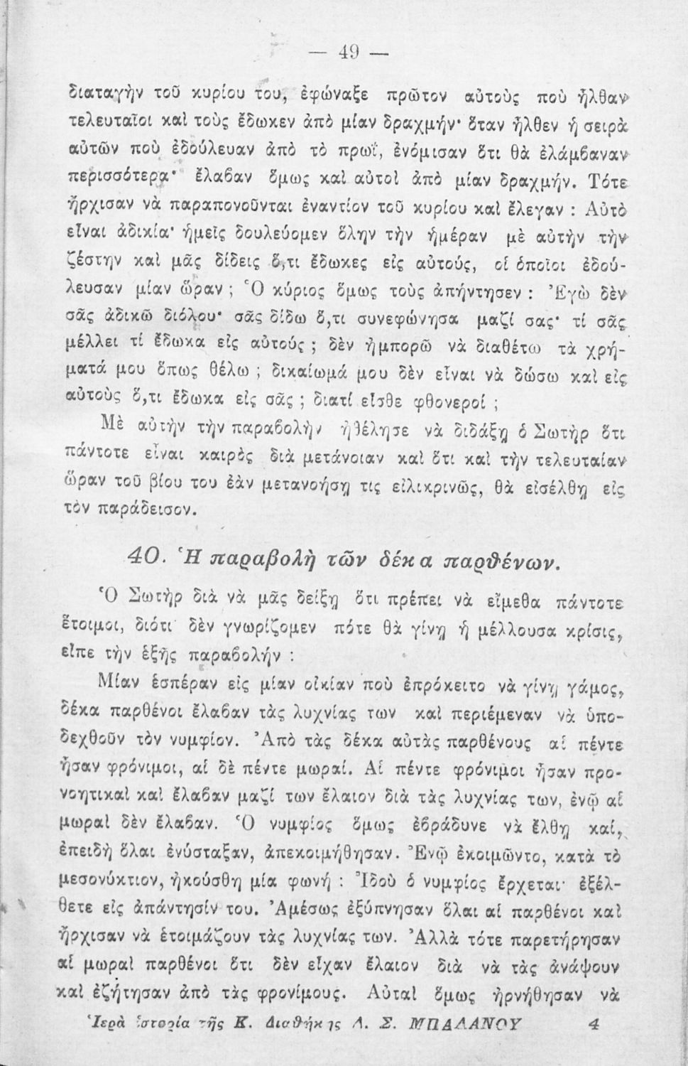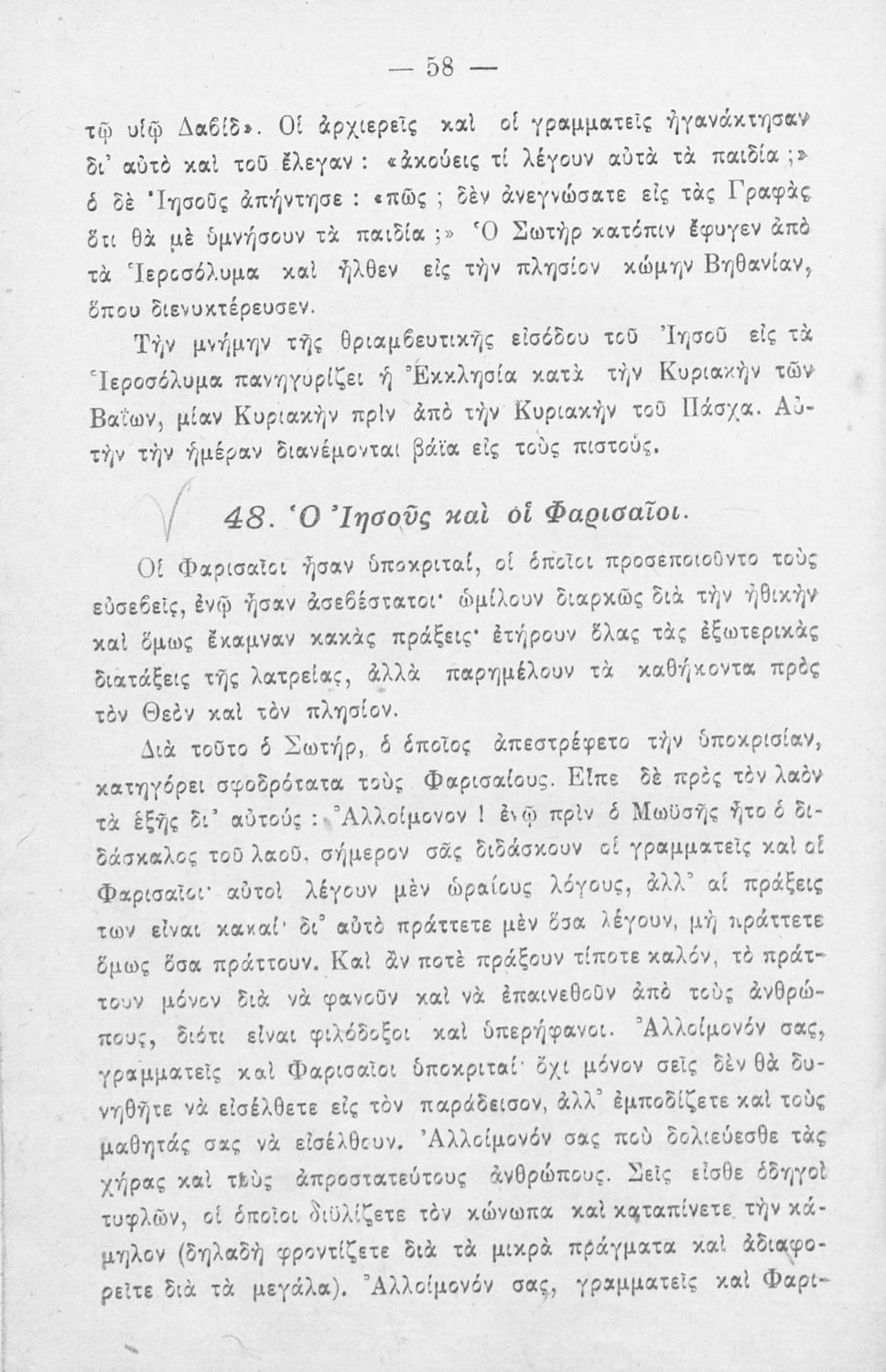 Σχολικό εγχειρίδιο Θρησκευτικών για τα Ελληνικά Σχολεία και τα Παρθεναγωγεία που αποτελεί μια εξιστόρηση της Καινής Διαθήκης από την γέννηση του Ιησού Χριστού ως το έργο των Αποστόλων